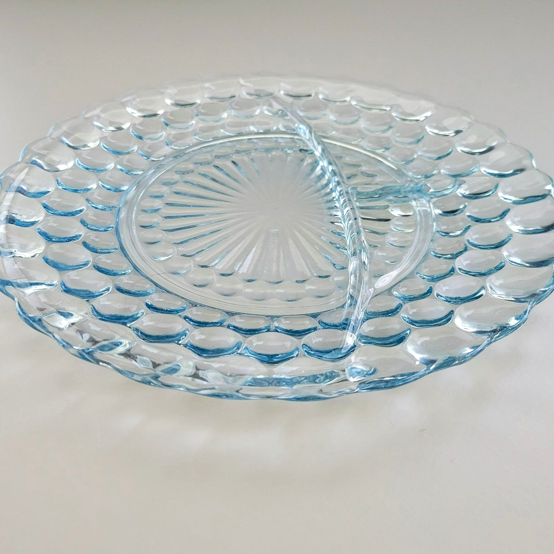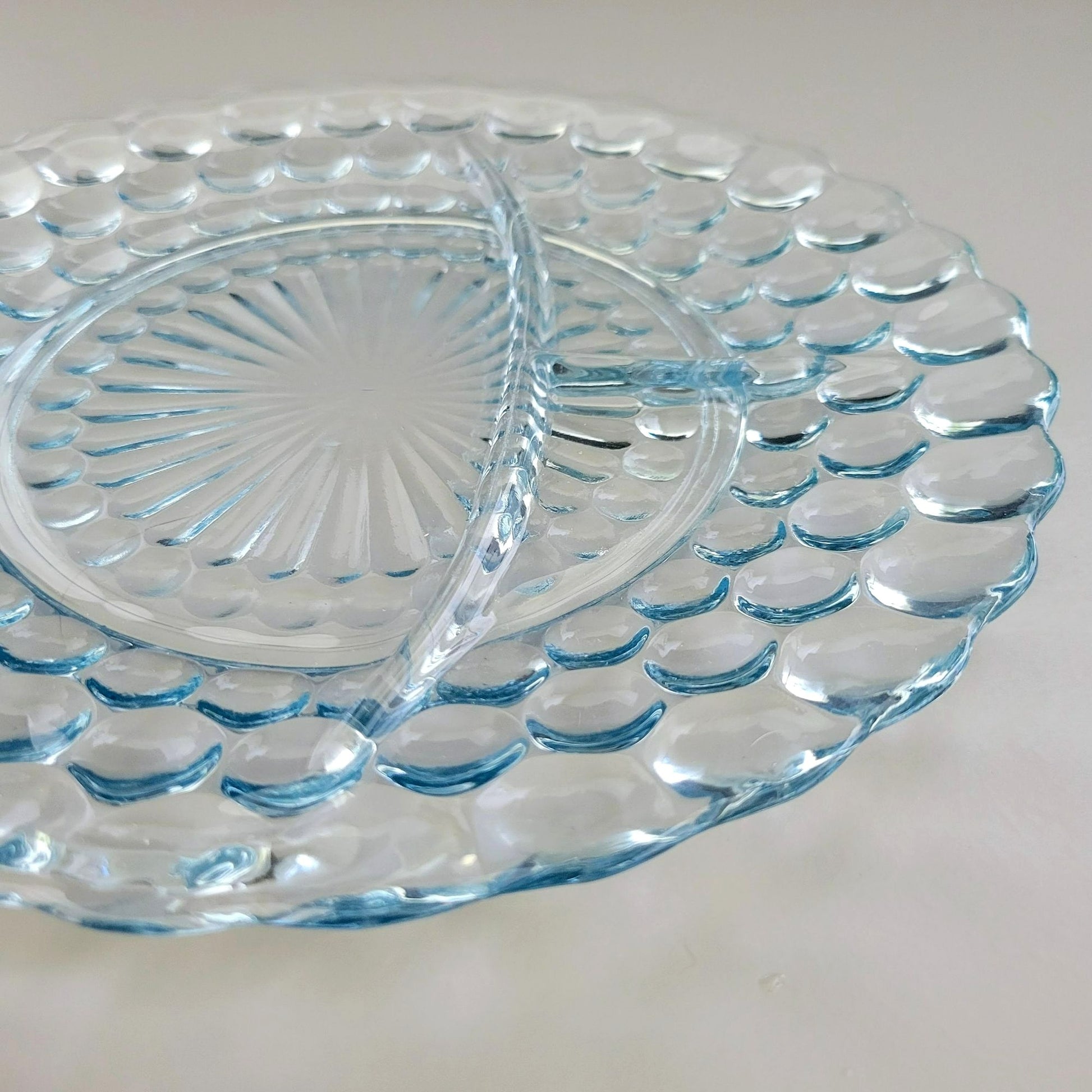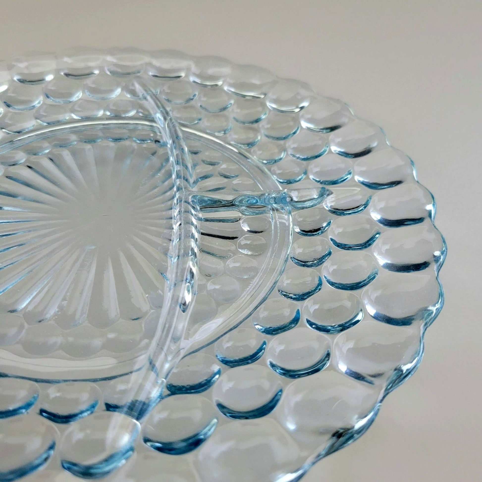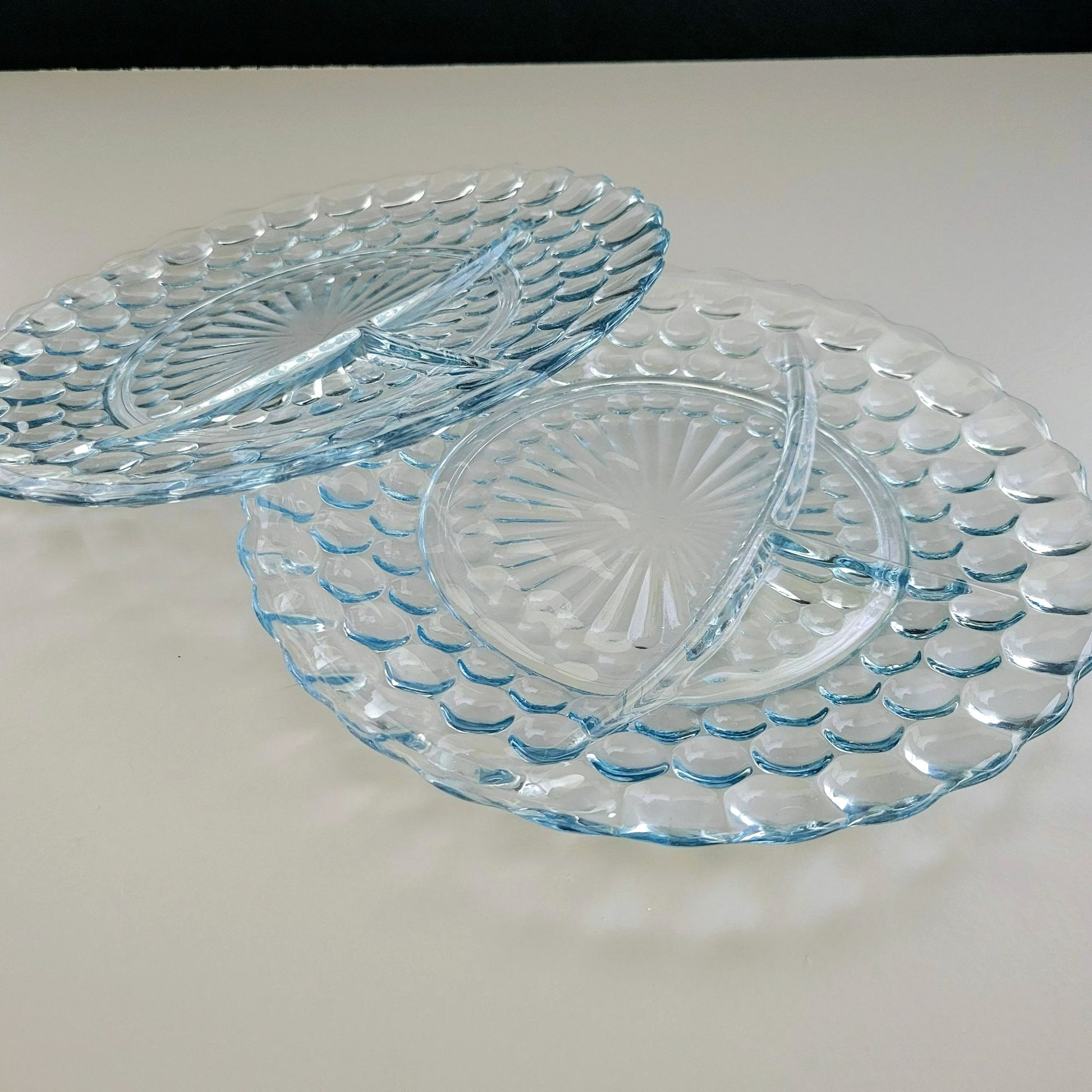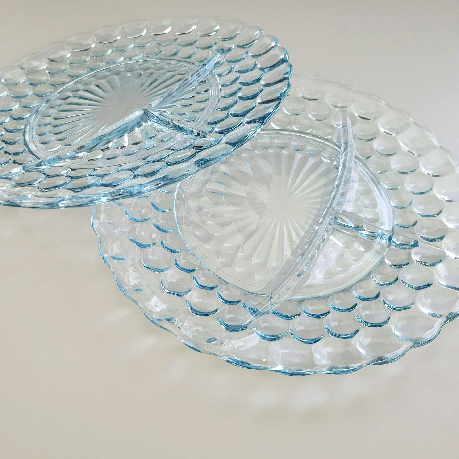 Anchor Hocking Bubble Blue Grill Plate Set of 2, c.1942-48 USA