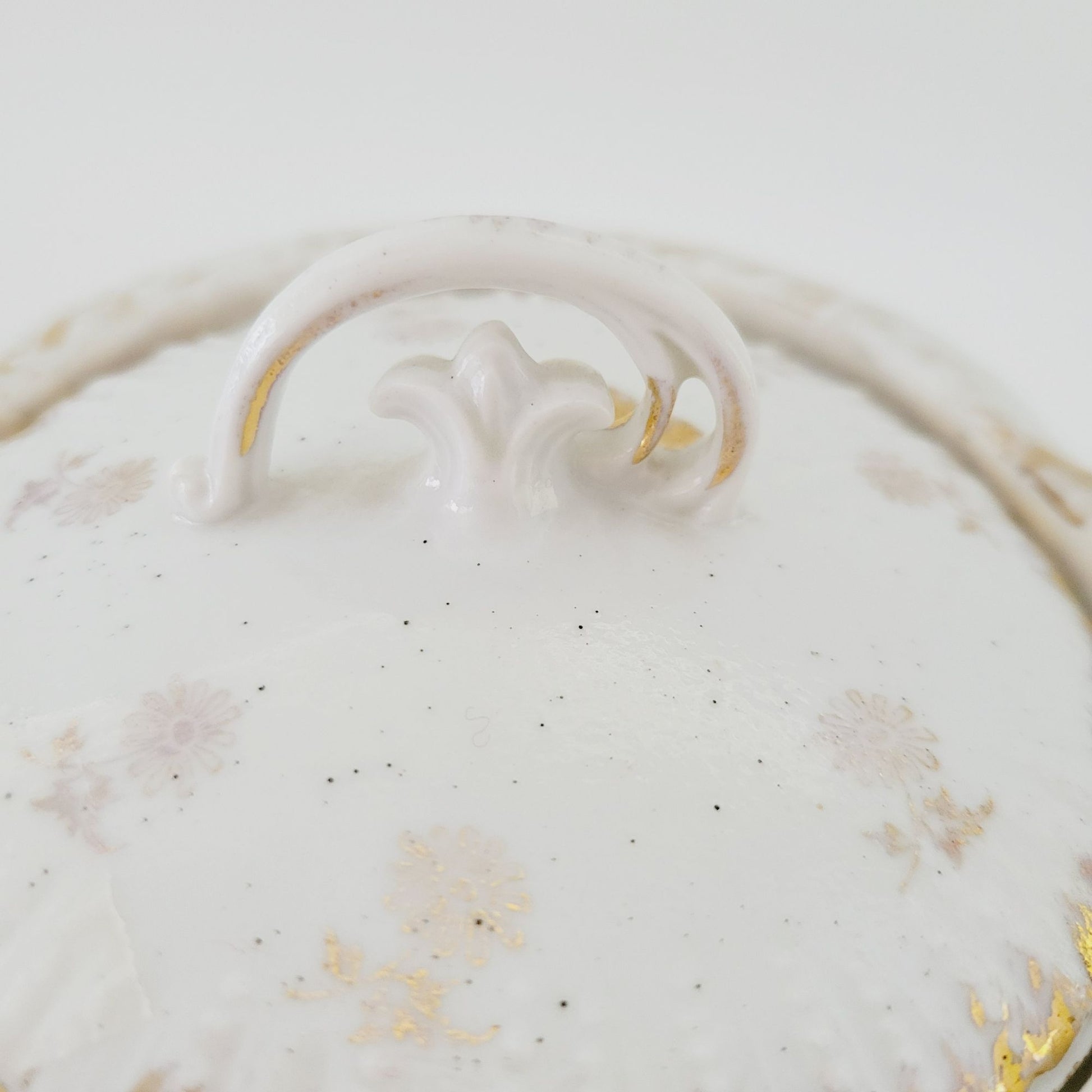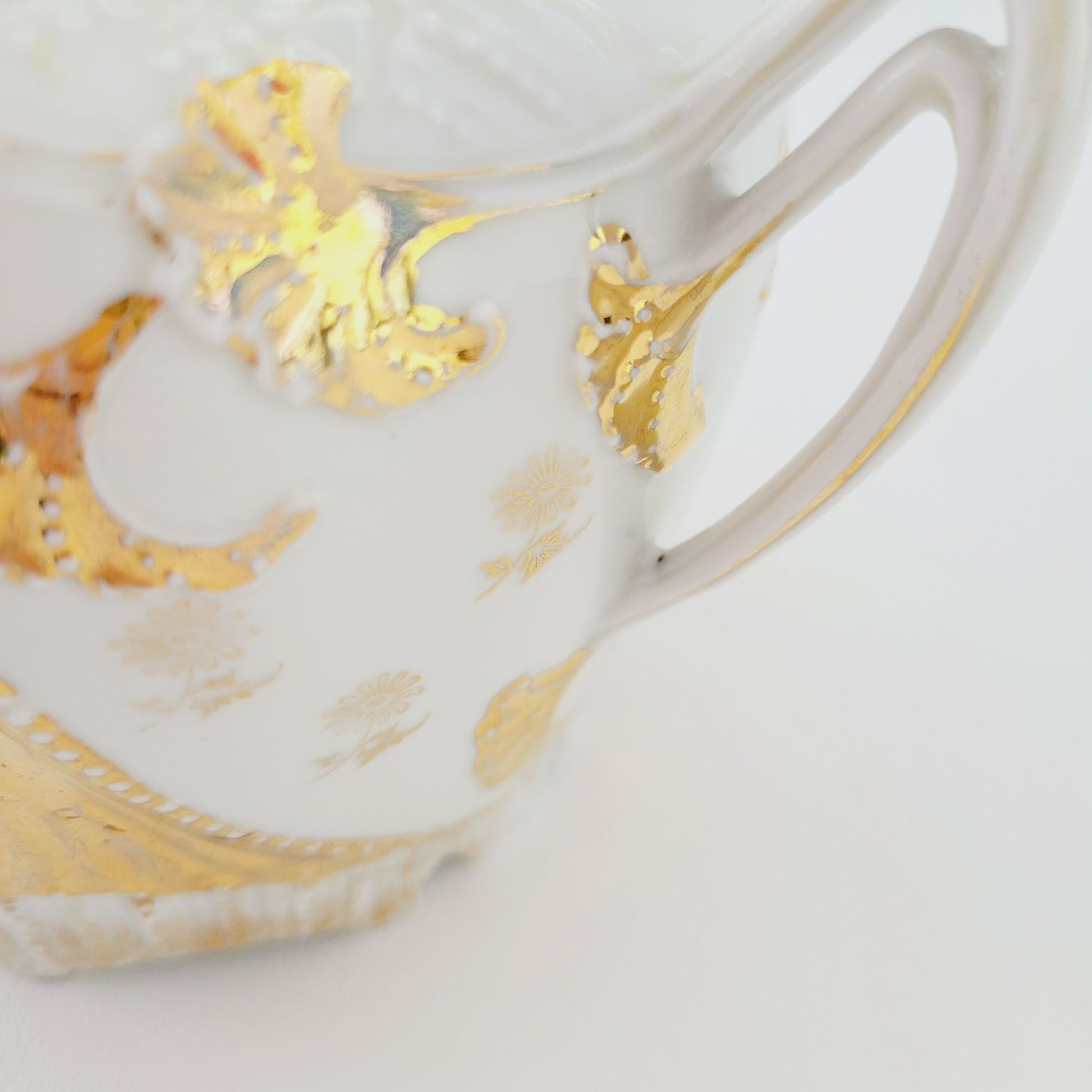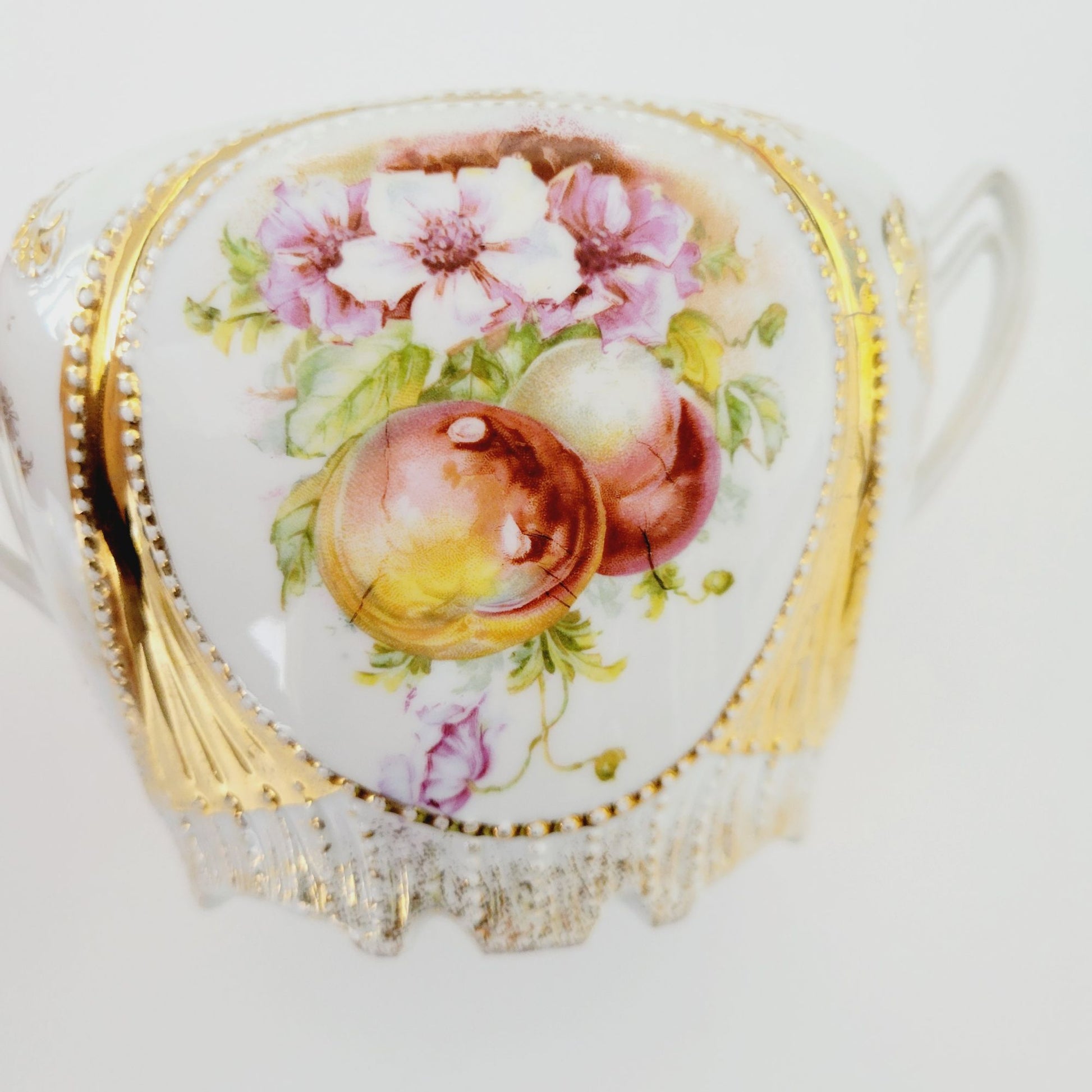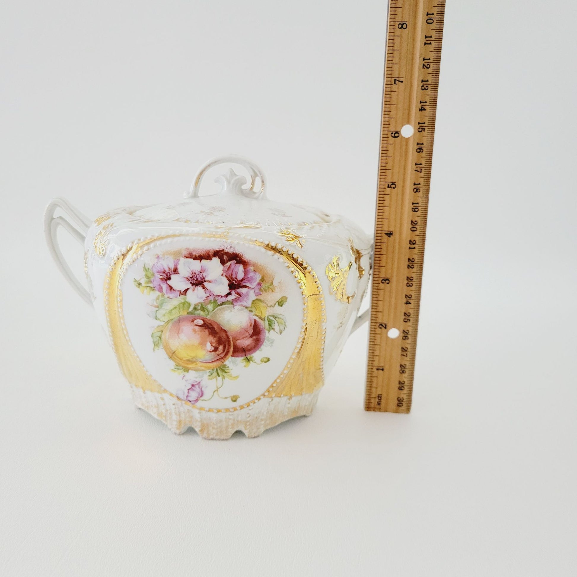 Antique German White & Gold Floral & Fruit Cookie Jar with Embossed Design