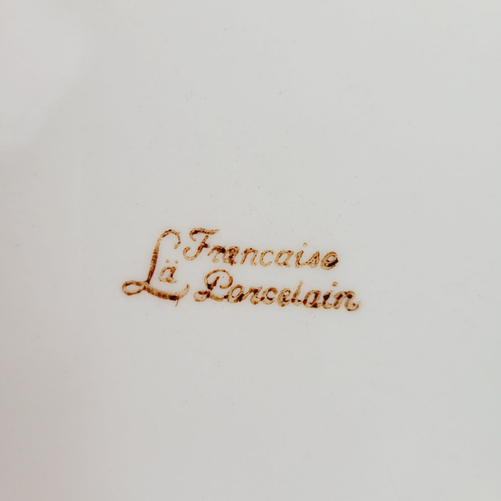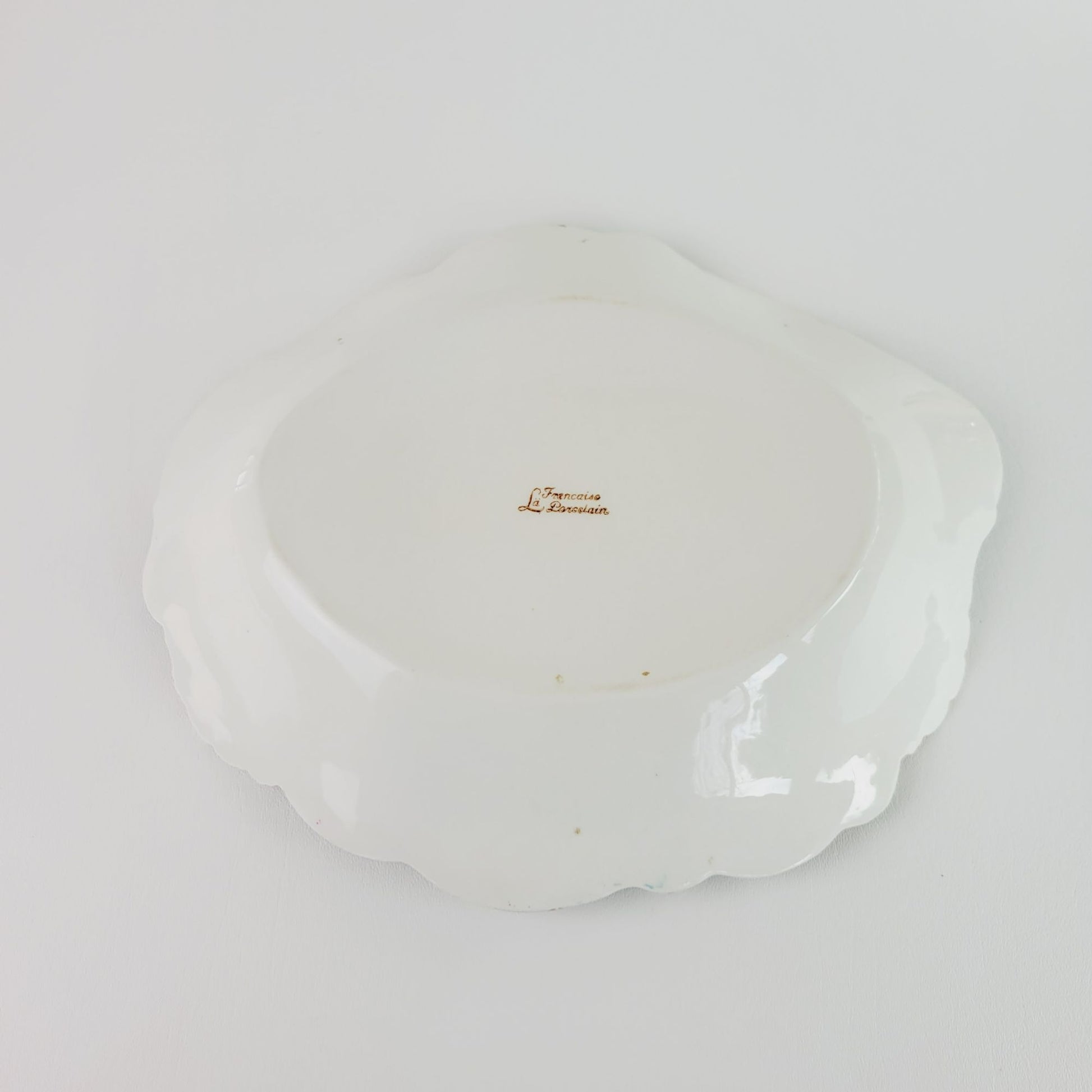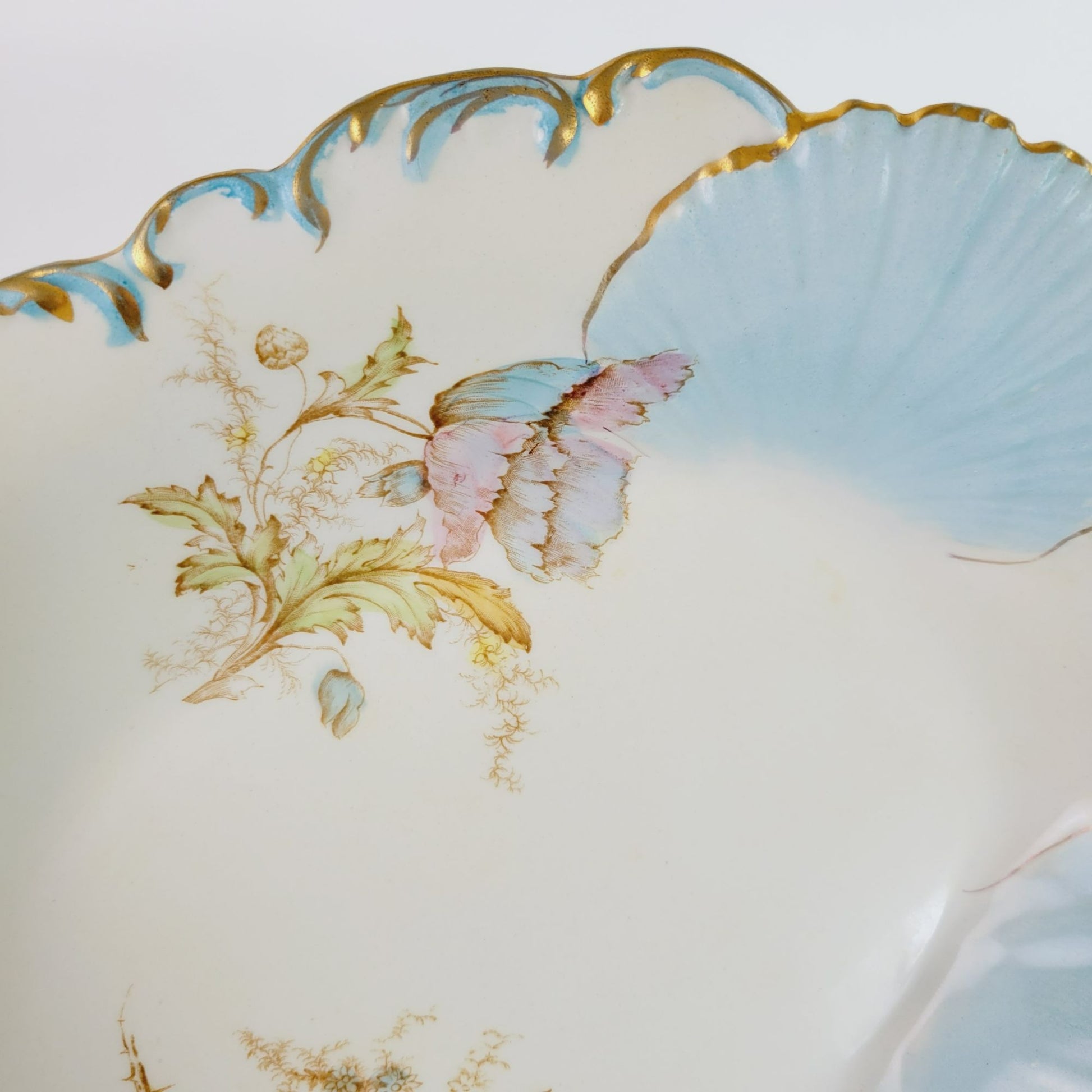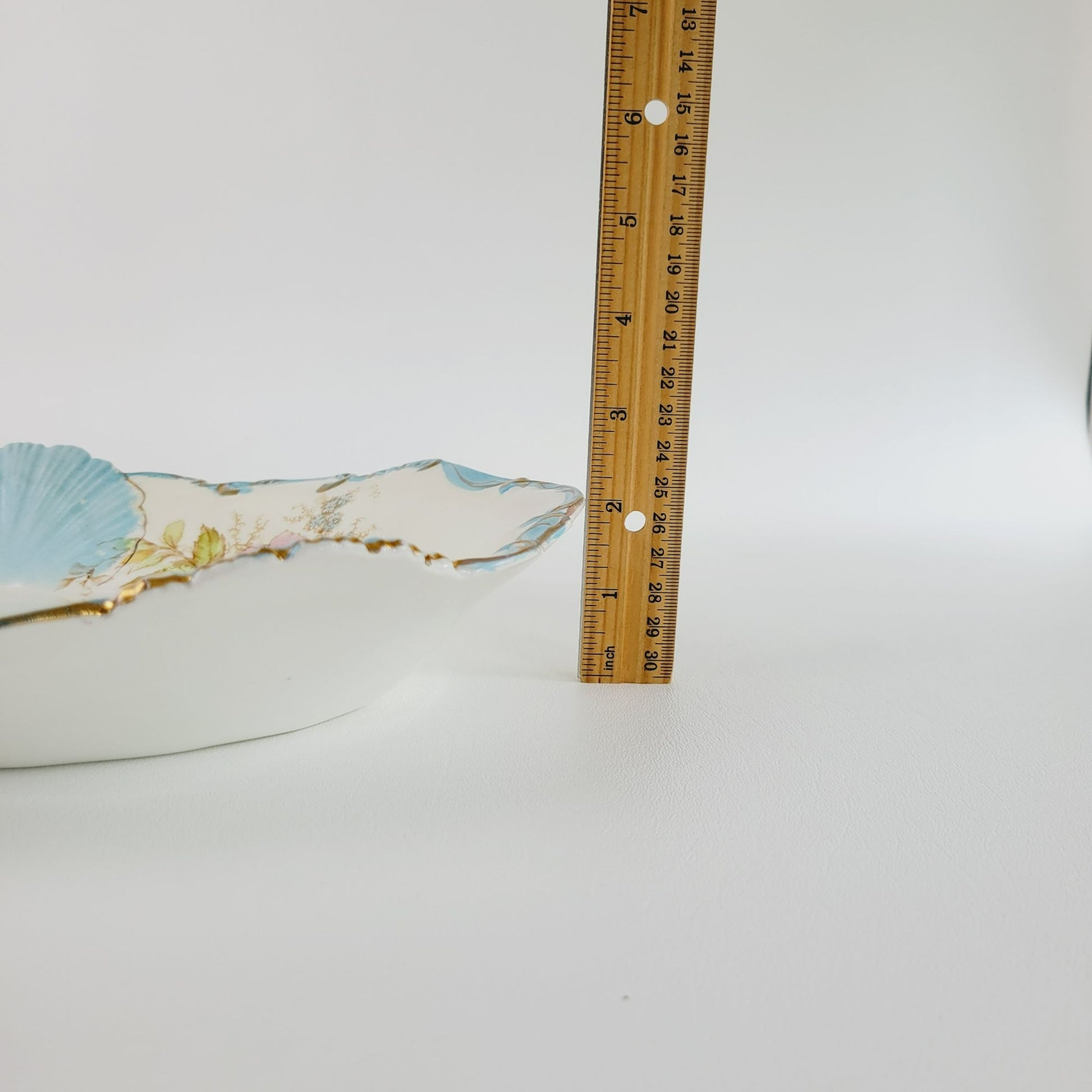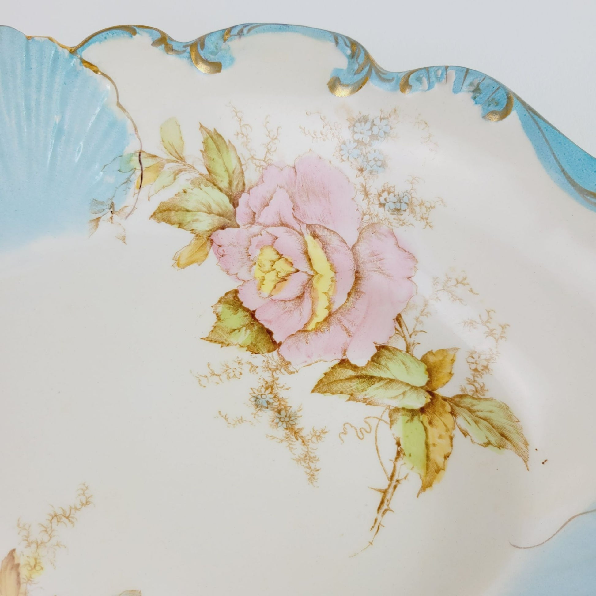 Antique French China Porcelain Bowl: Blue Shell & Pink Floral, Gold Trim, c.1900-16 La Francaise by French China Co