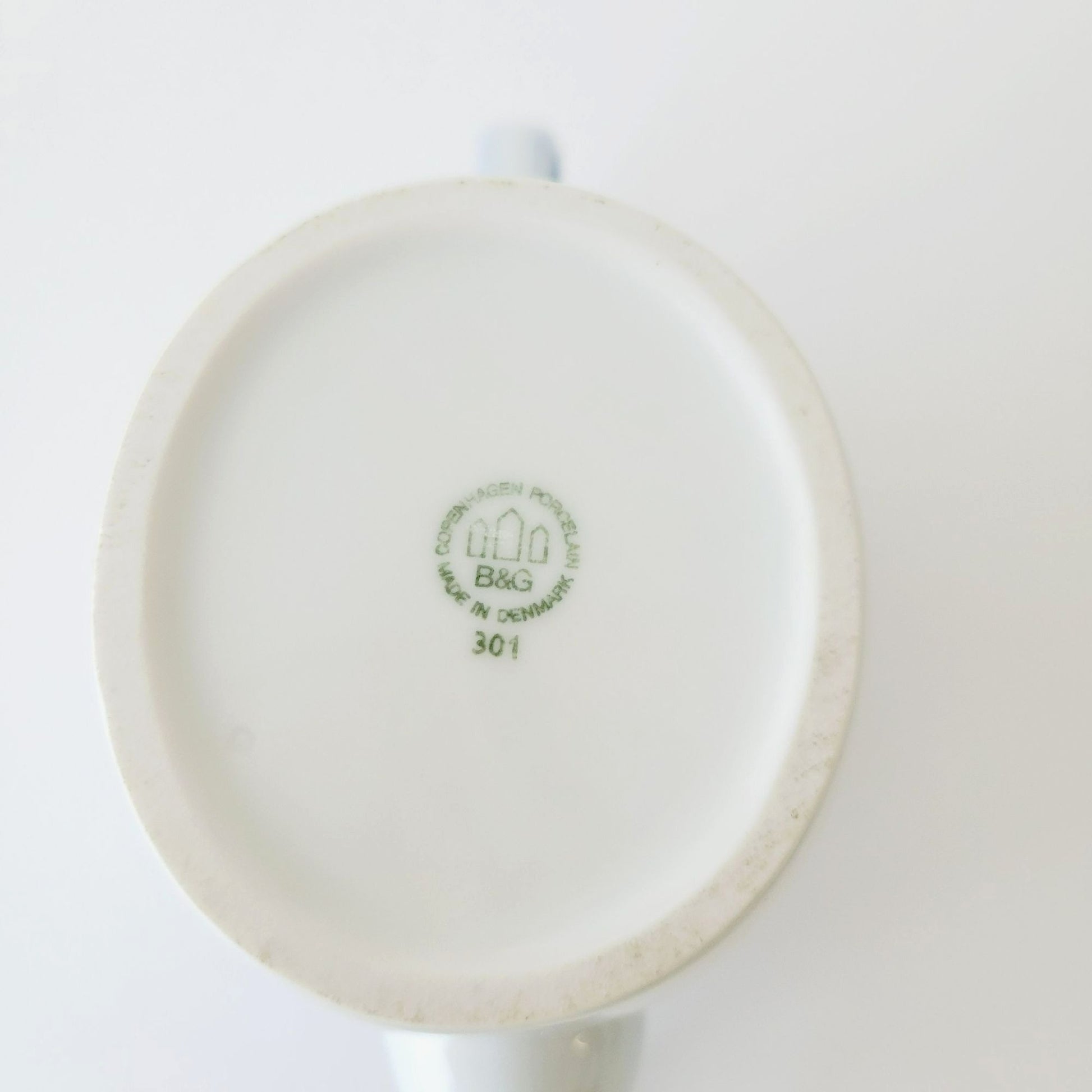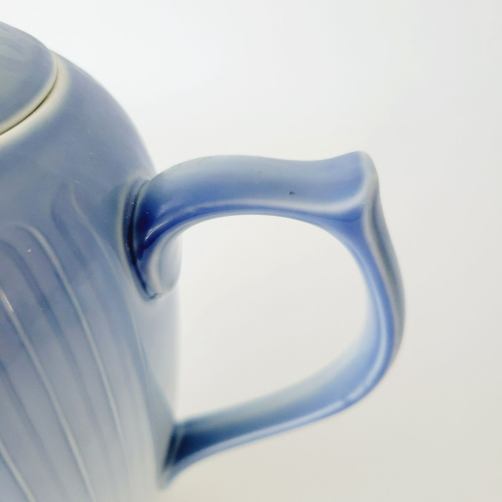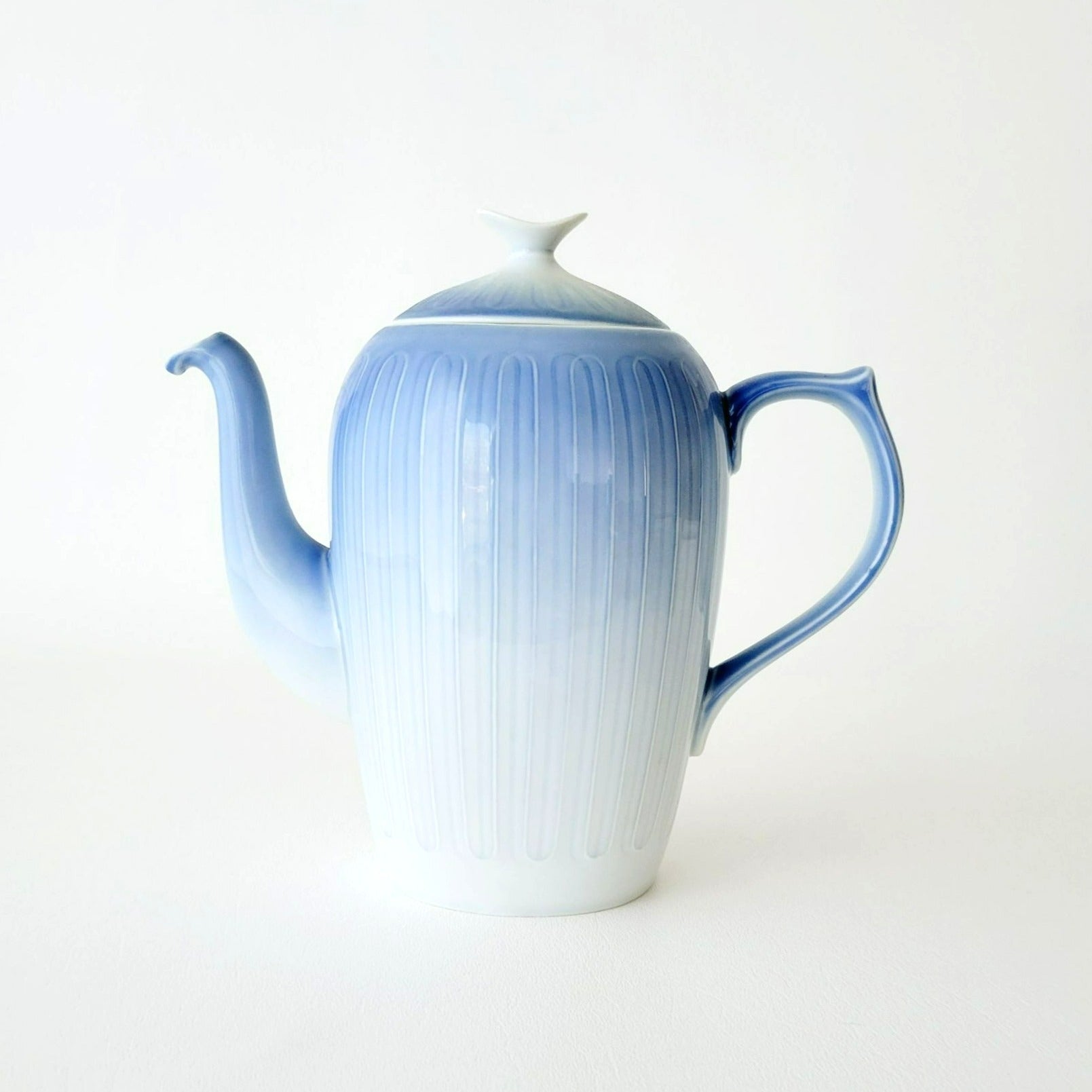 Vintage Bing & Grondahl Ballerina Coffee Pot, a beautiful piece of Danish craftsmanship. Blue Ombre porcelain with a ribbed design, perfect for bringing hygge to your home.
