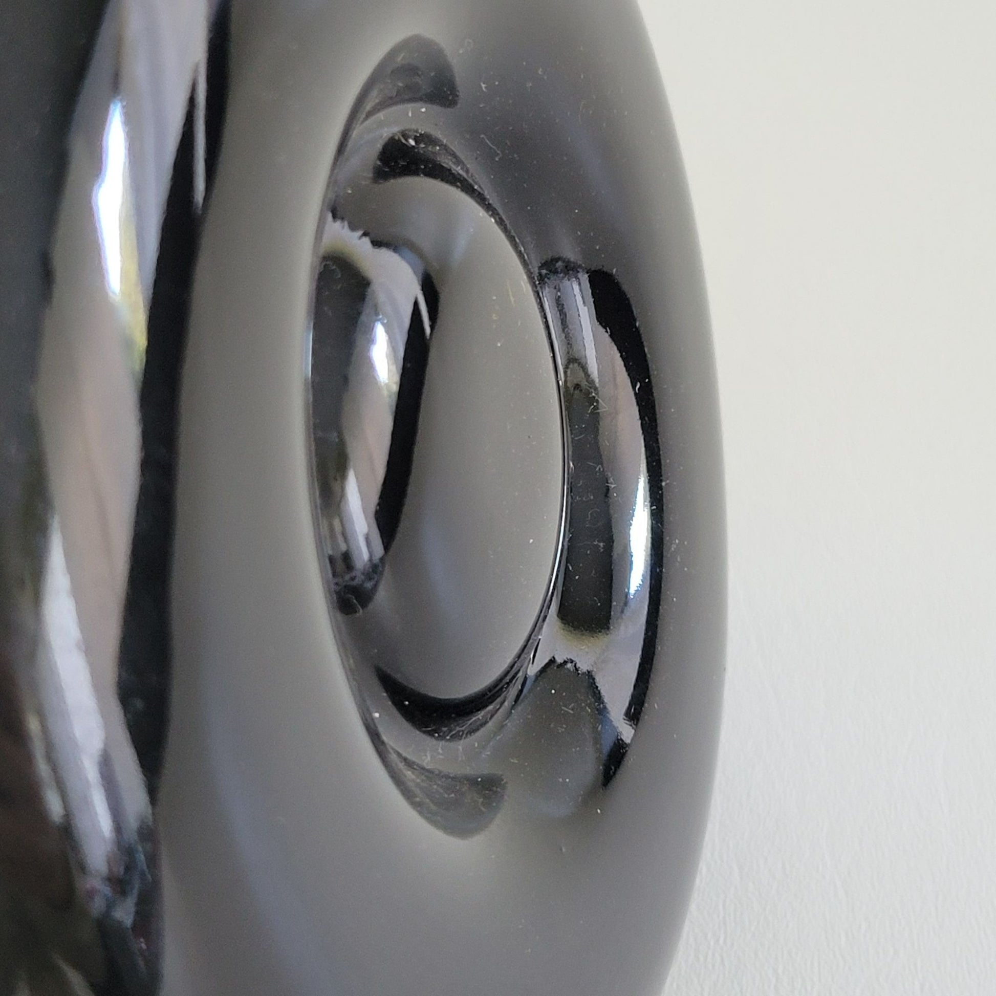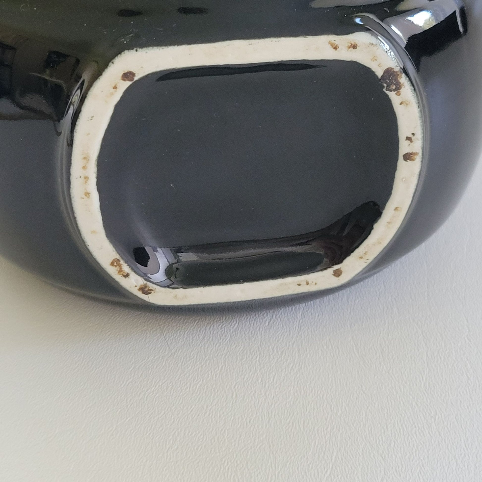 This vintage black Art Deco ceramic pitcher features an elegant embossed circle design, perfect for adding a touch of mid-century modern style to any drinkware collection or décor setting.