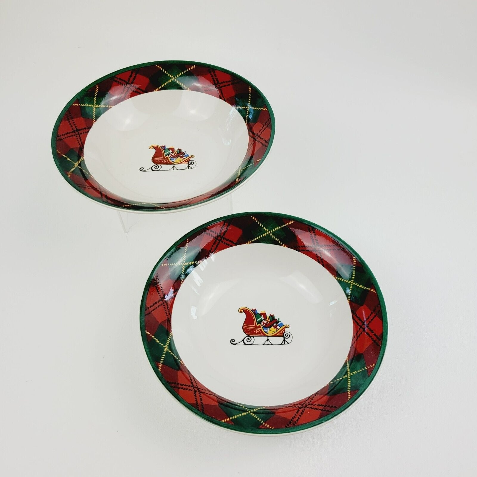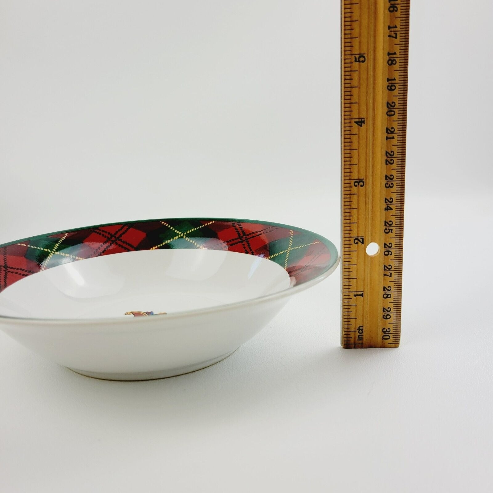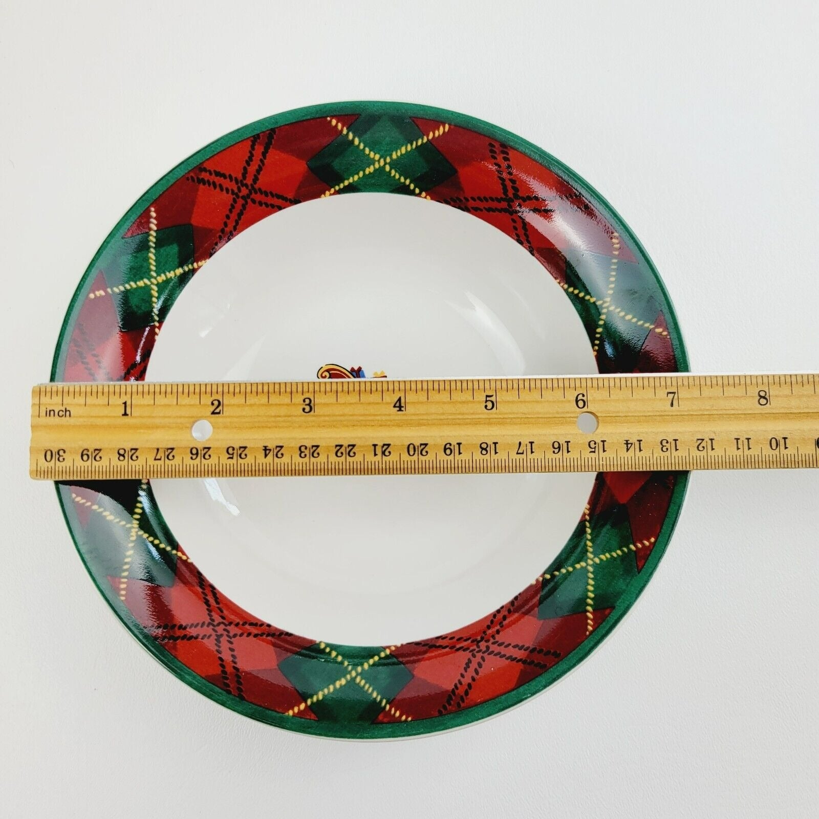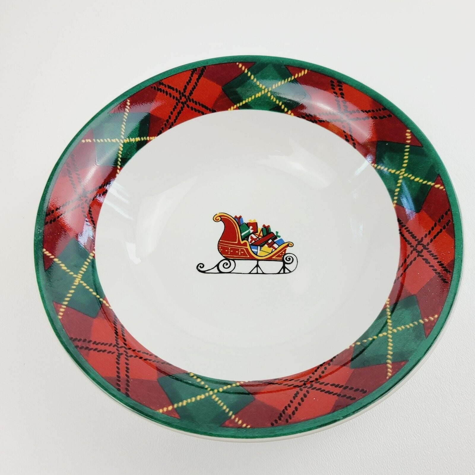 This vintage 1995 Block Father Christmas Cereal Bowls will add a touch of holiday cheer to your home. Made of ceramic, it features a festive red and green design.