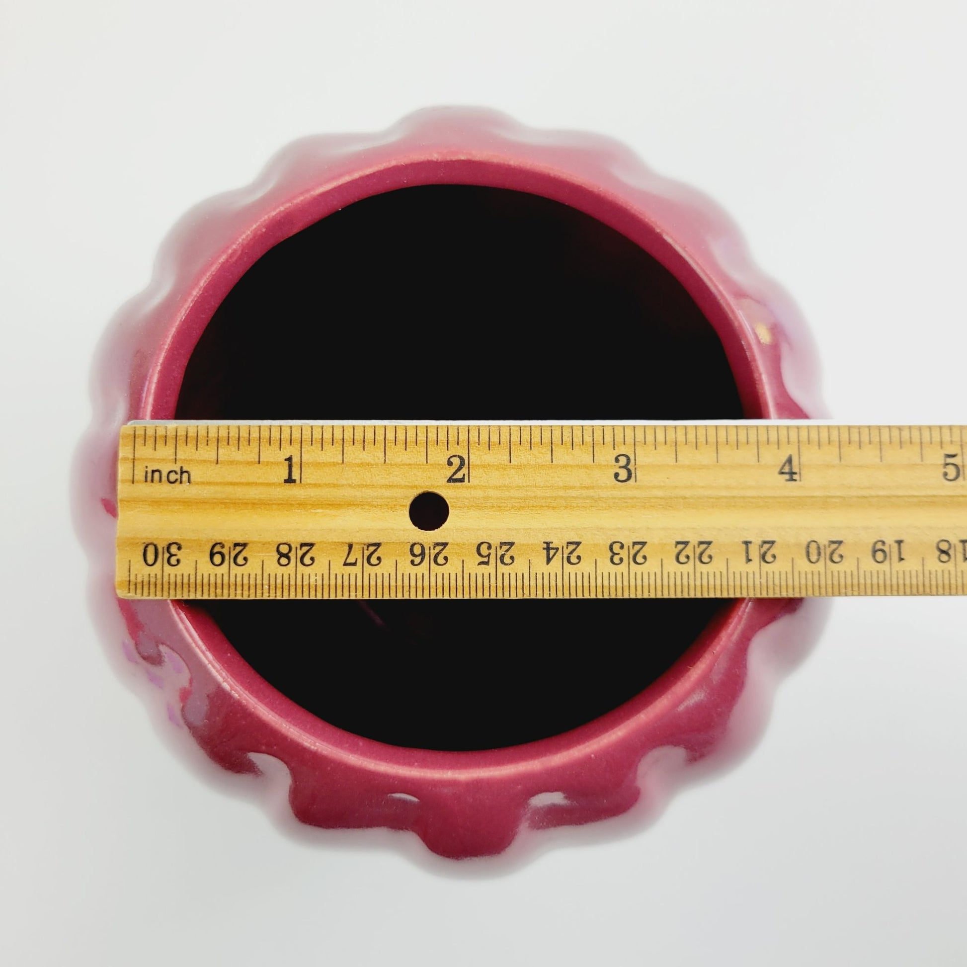 Burgundy Red Ribbed Ceramic Flower 7.5" Vase
