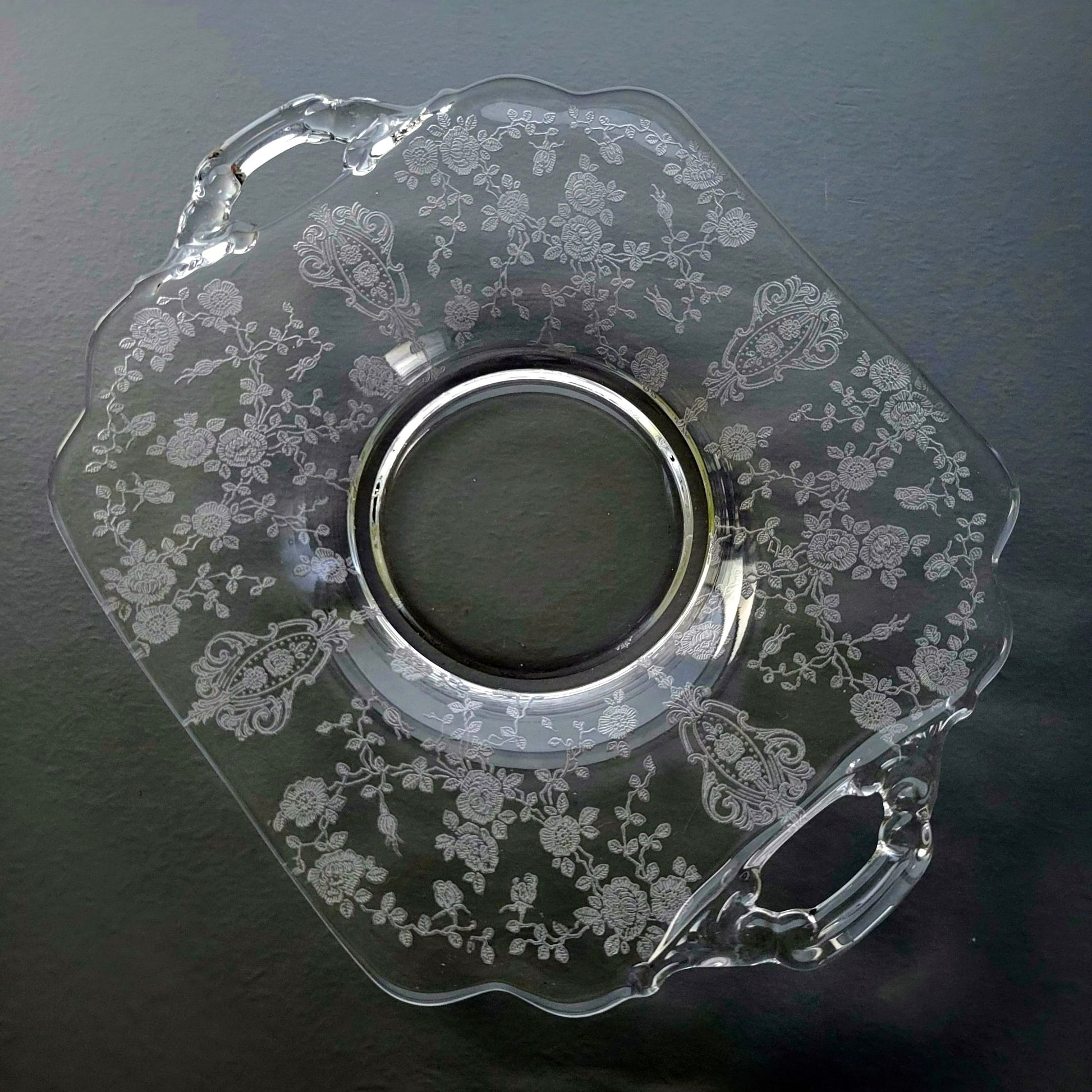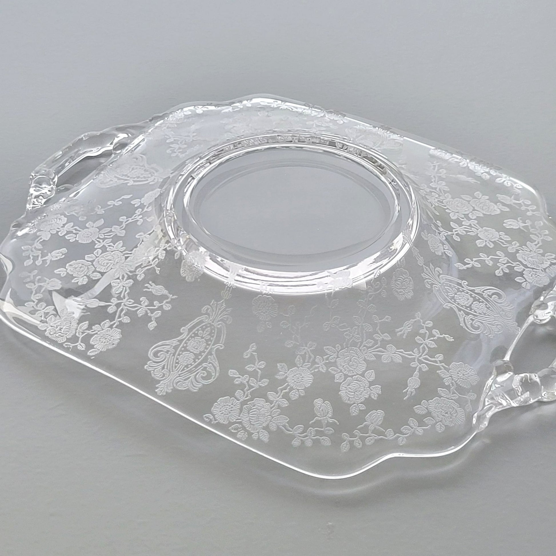 Cambridge Glass "Rose Point Clear" Handled Bon Bon Plate, c.1934-58 USA