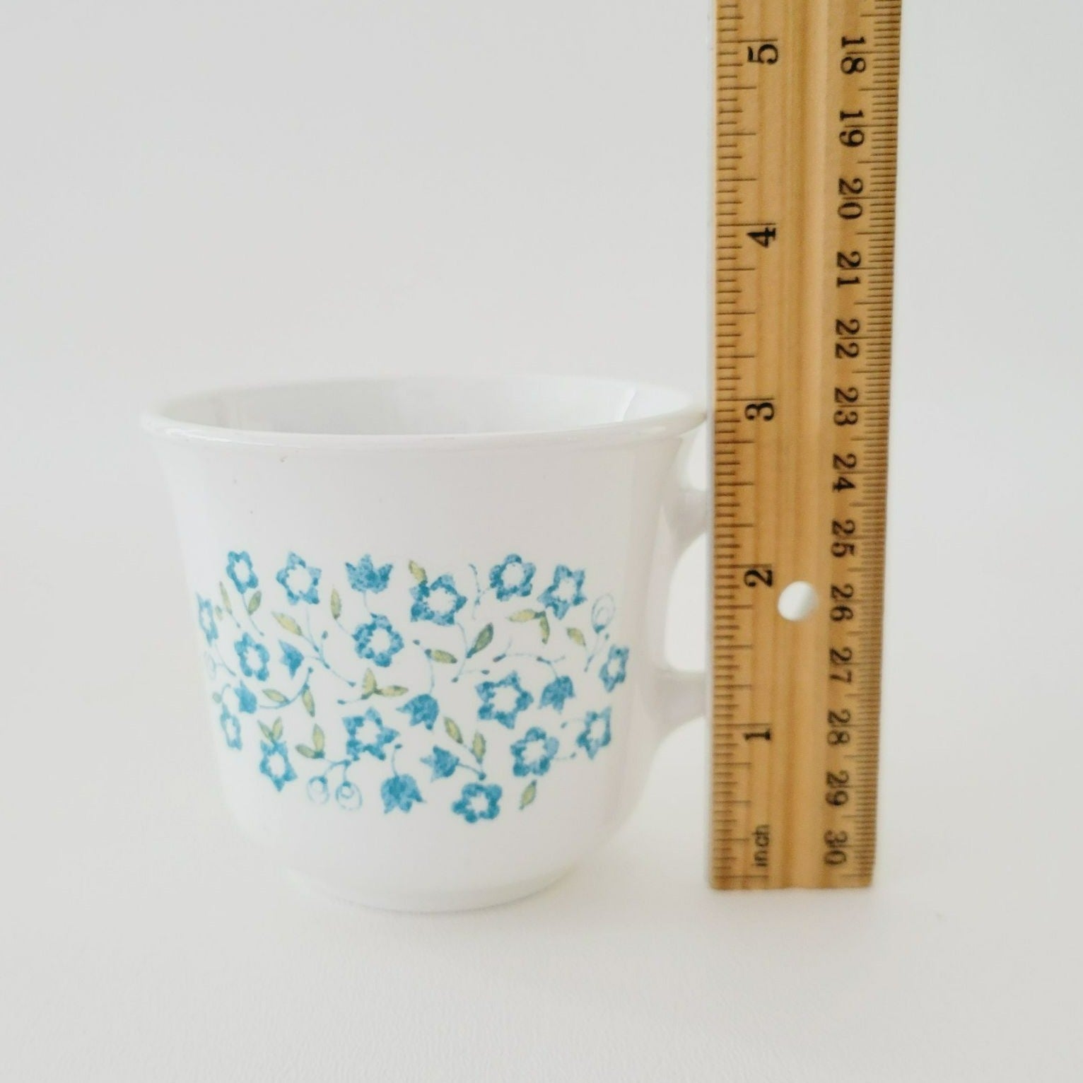 These Corelle Blue Heather Cups, featuring a charming vintage design of blue floral and green leaves, adds a touch of floral flare to your dinnerware collection. Made from tempered glass, these 7fl. oz. cups are both stylish and durable.