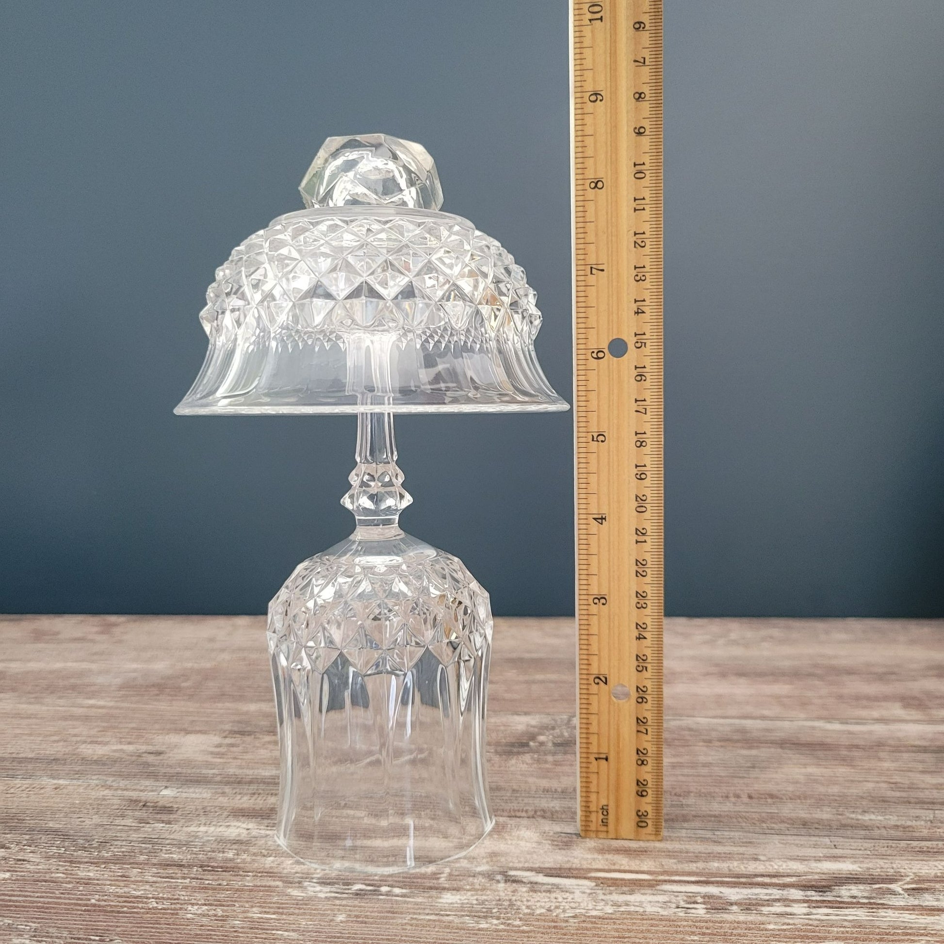 Create the perfect mood for relaxing and unwinding with this cozy, eco-friendly accent piece that enhances any décor style. Handcrafted with quality vintage glassware, this piece is a unique, sustainable addition to your space. It’s the perfect gift for those who appreciate vintage, craftsmanship, and the beauty of sustainable living.