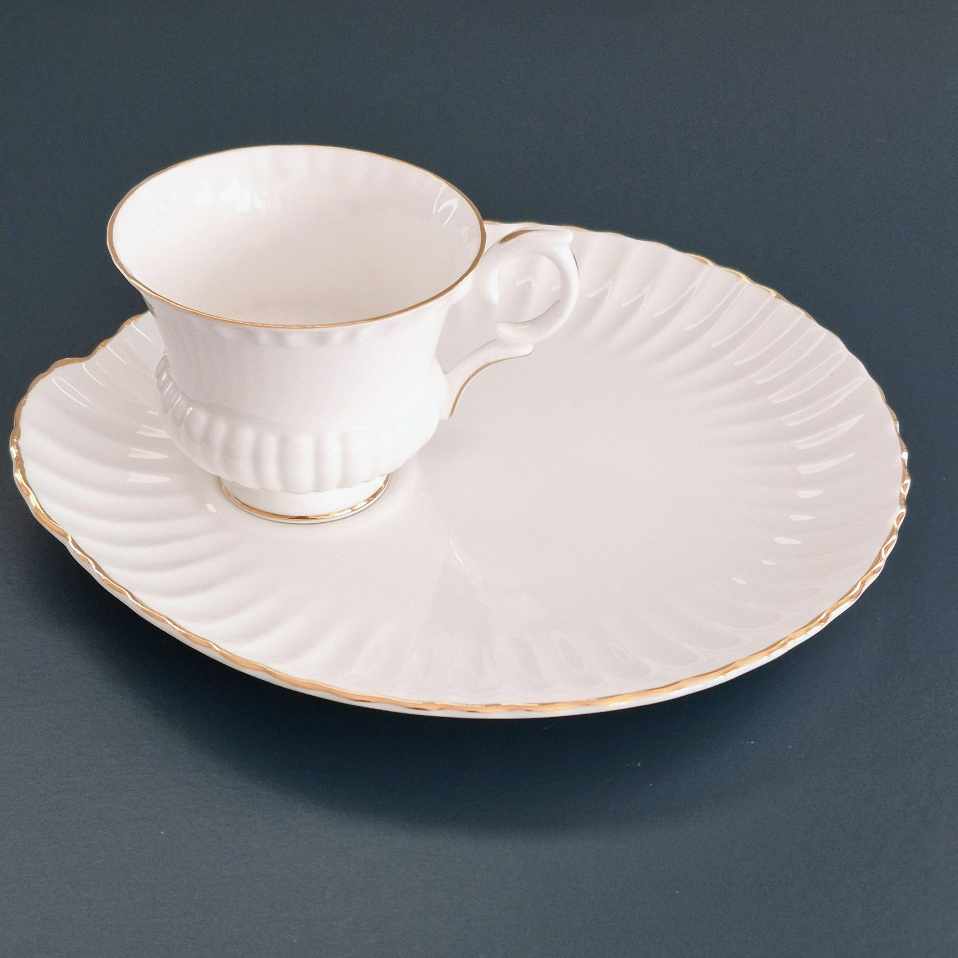 Crown Staffordshire White Teacup and Snack Plate, Set of 2, Made in England