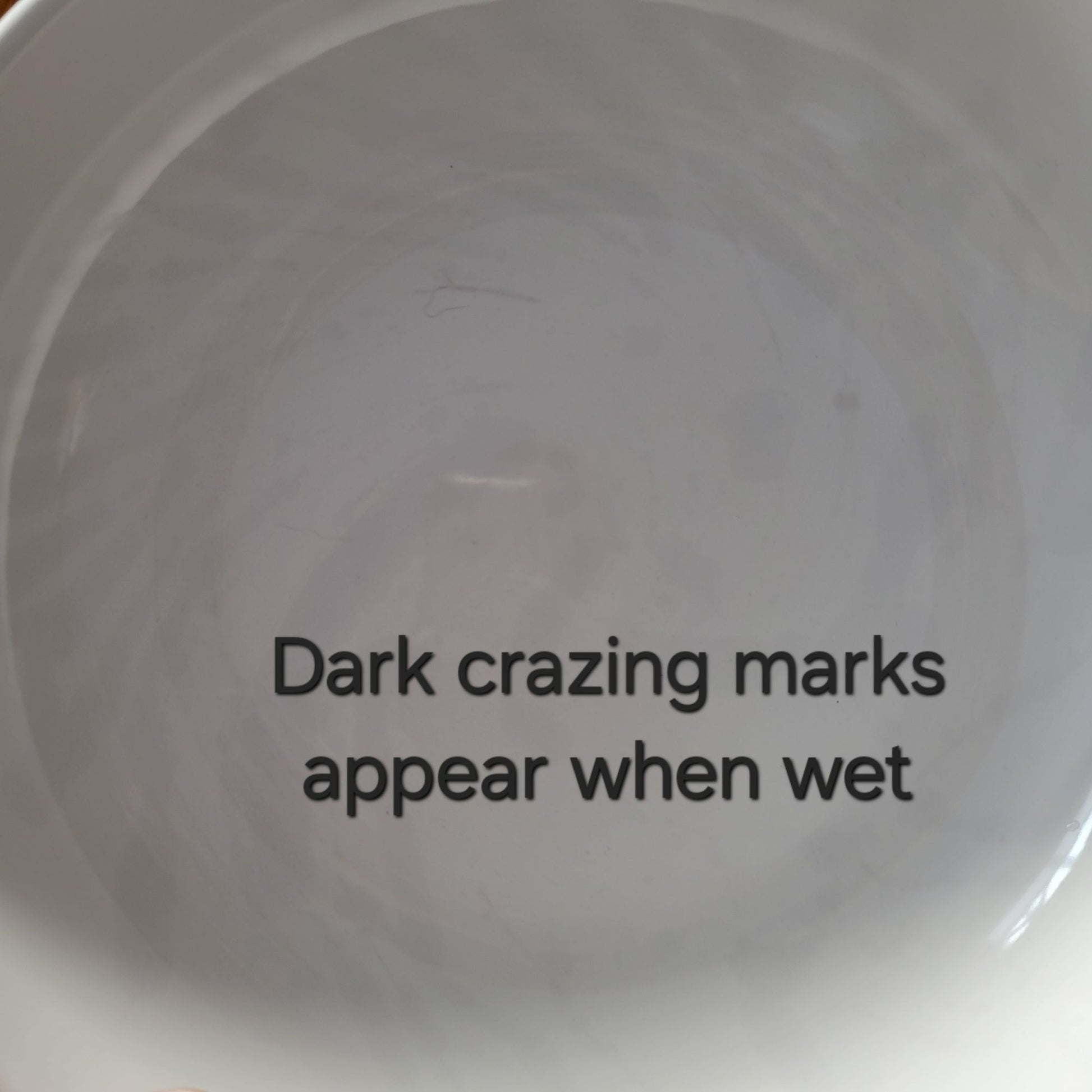 Bowl in good condition with no cracks, chips, however when wet, you can see dark crazing marks on the inside (see photo).