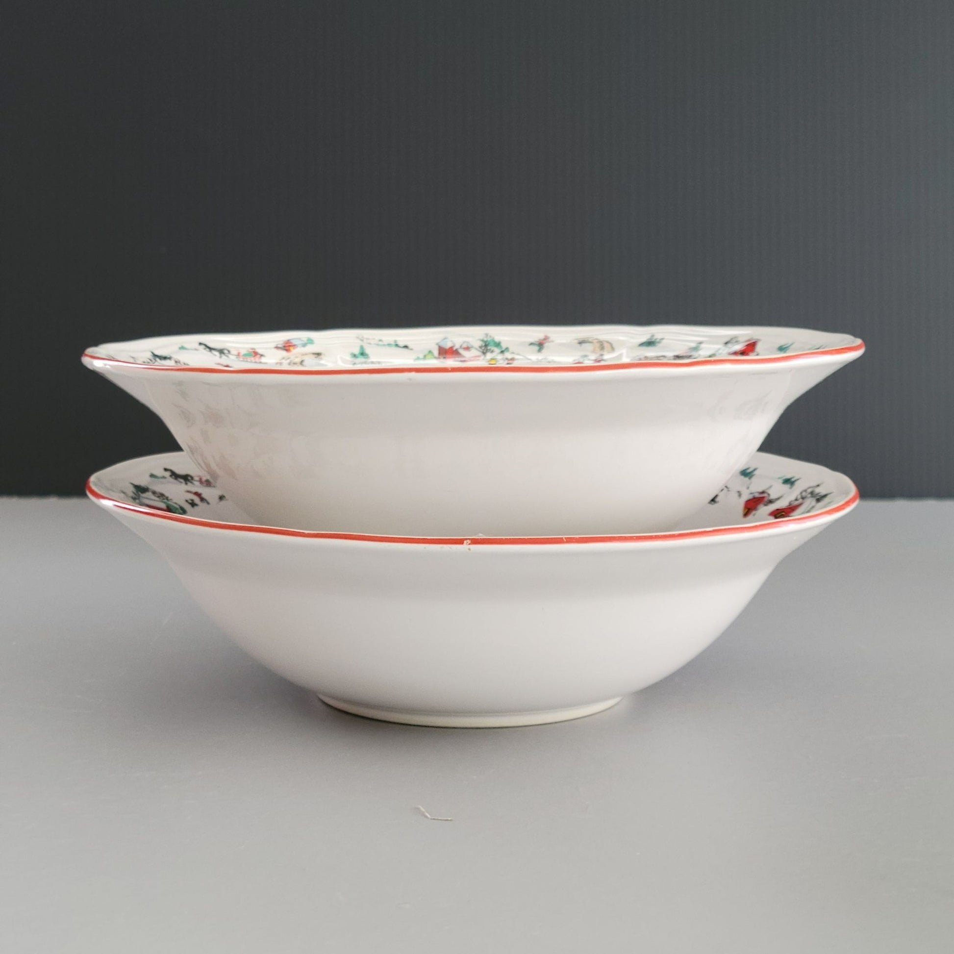 These charming vintage Farberware bowls from the 1990s capture a nostalgic holiday spirit. With vintage winter scenes and durable craftsmanship, they evoke timeless festive gatherings.