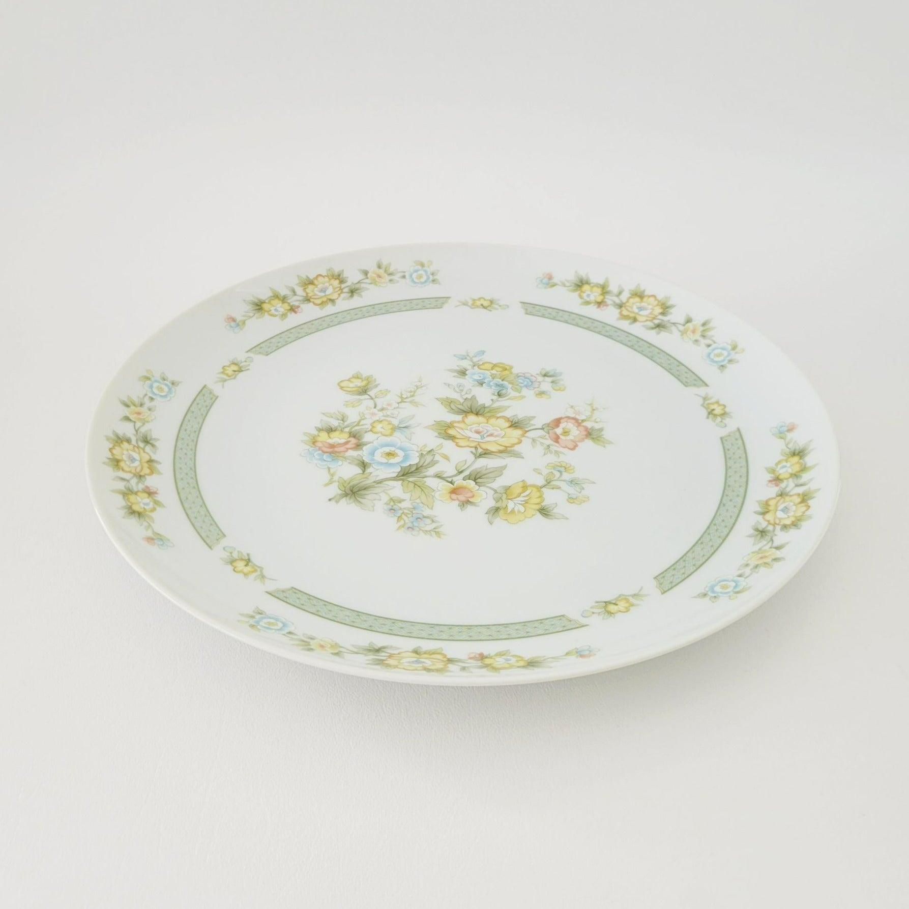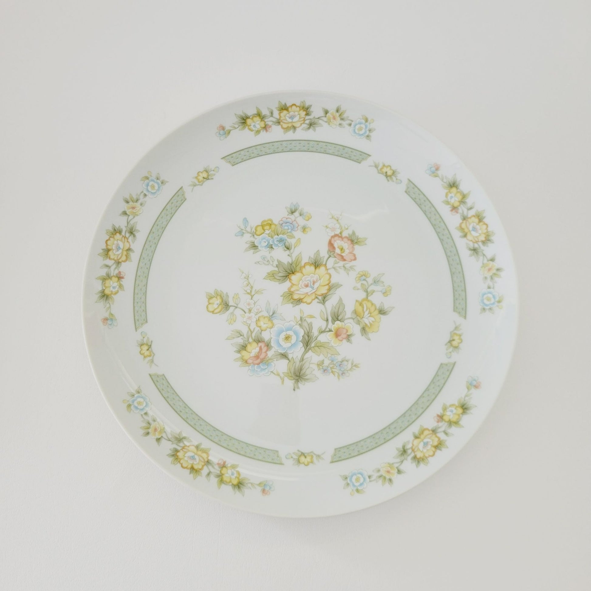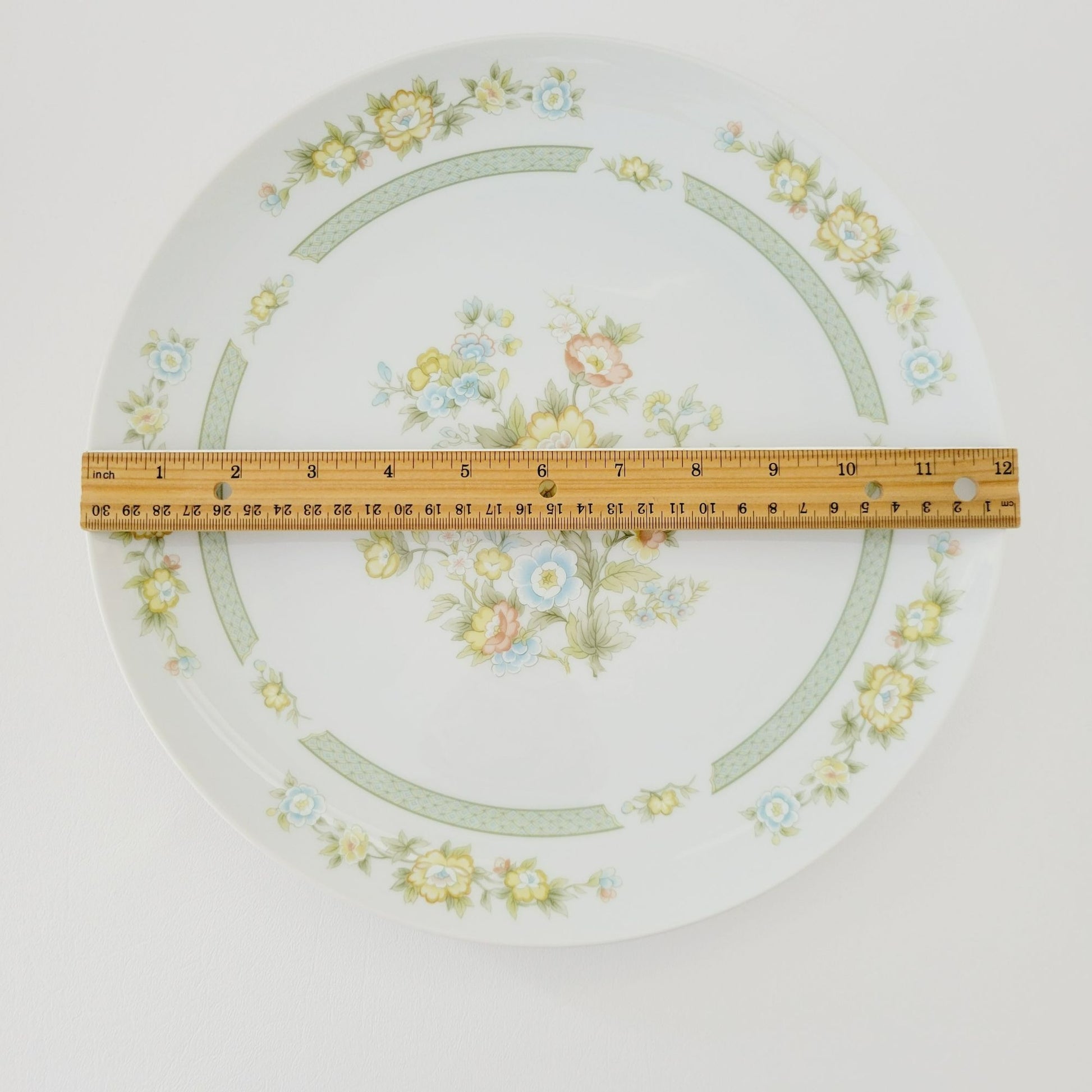 Experience the elegance of the Fashion Royale Ashley Round Platter 12". Made in Japan, this spring floral dinnerware features a delicate pastel floral design with green accents. It's the perfect addition to any shabby chic grannycore aesthetic.
