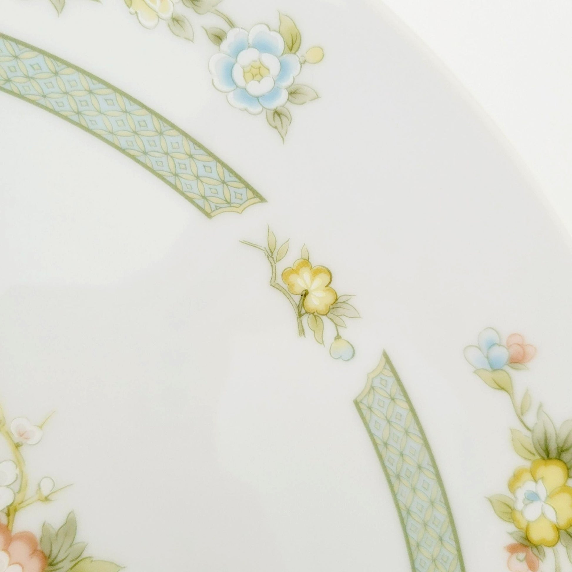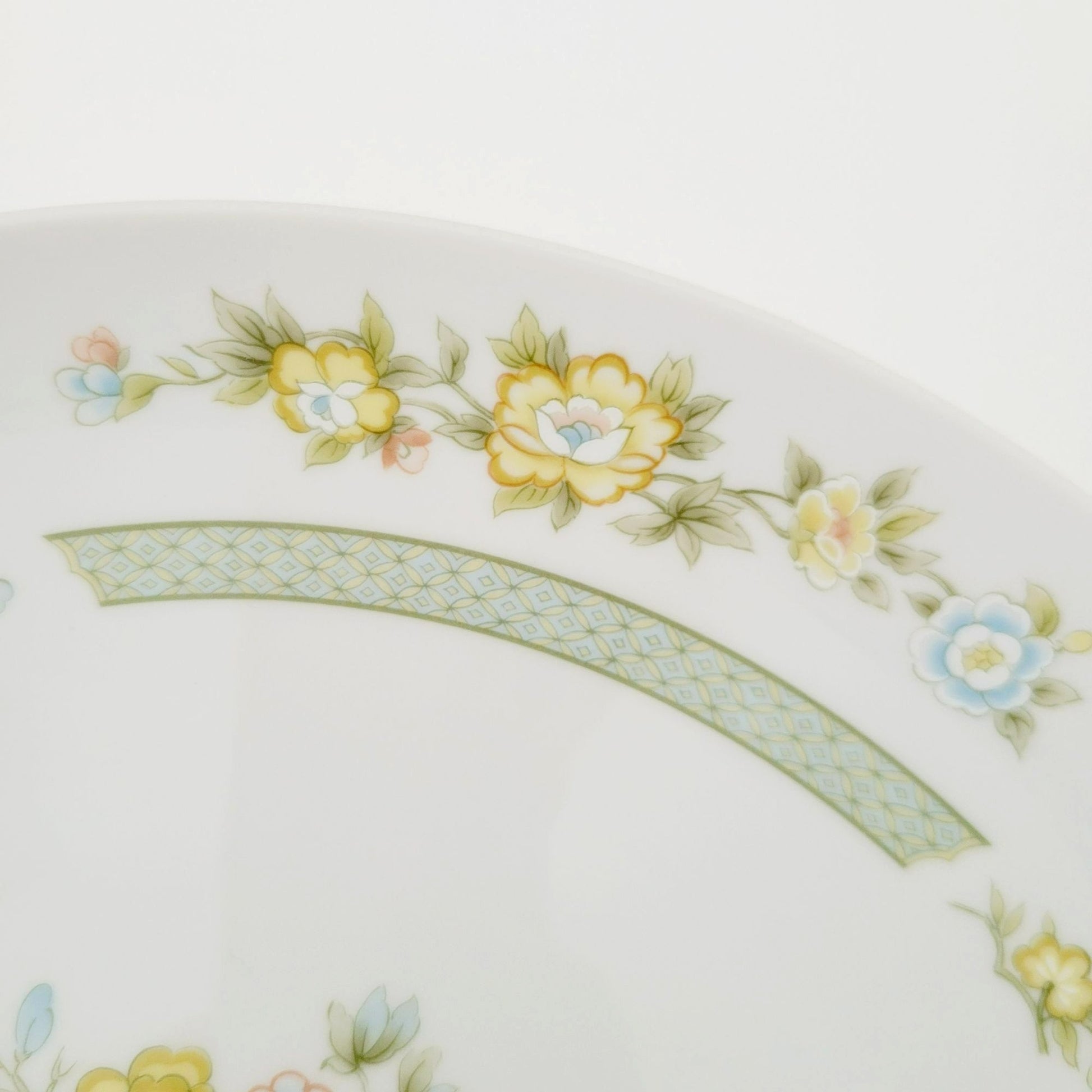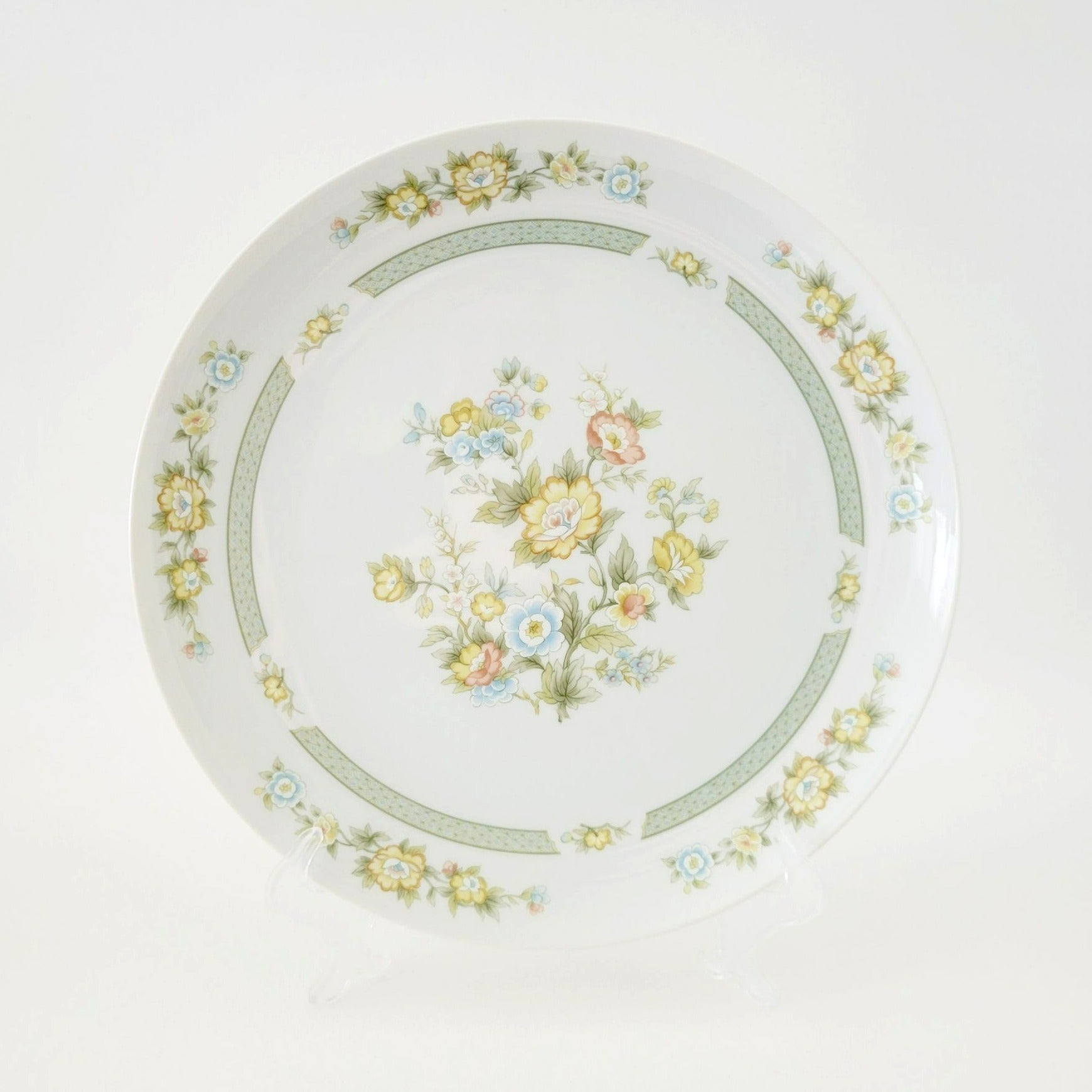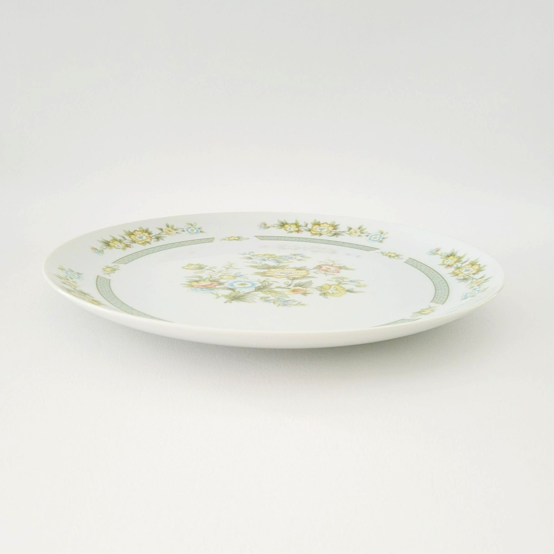 Experience the elegance of the Fashion Royale Ashley Round Platter 12". Made in Japan, this spring floral dinnerware features a delicate pastel floral design with green accents. It's the perfect addition to any shabby chic grannycore aesthetic.