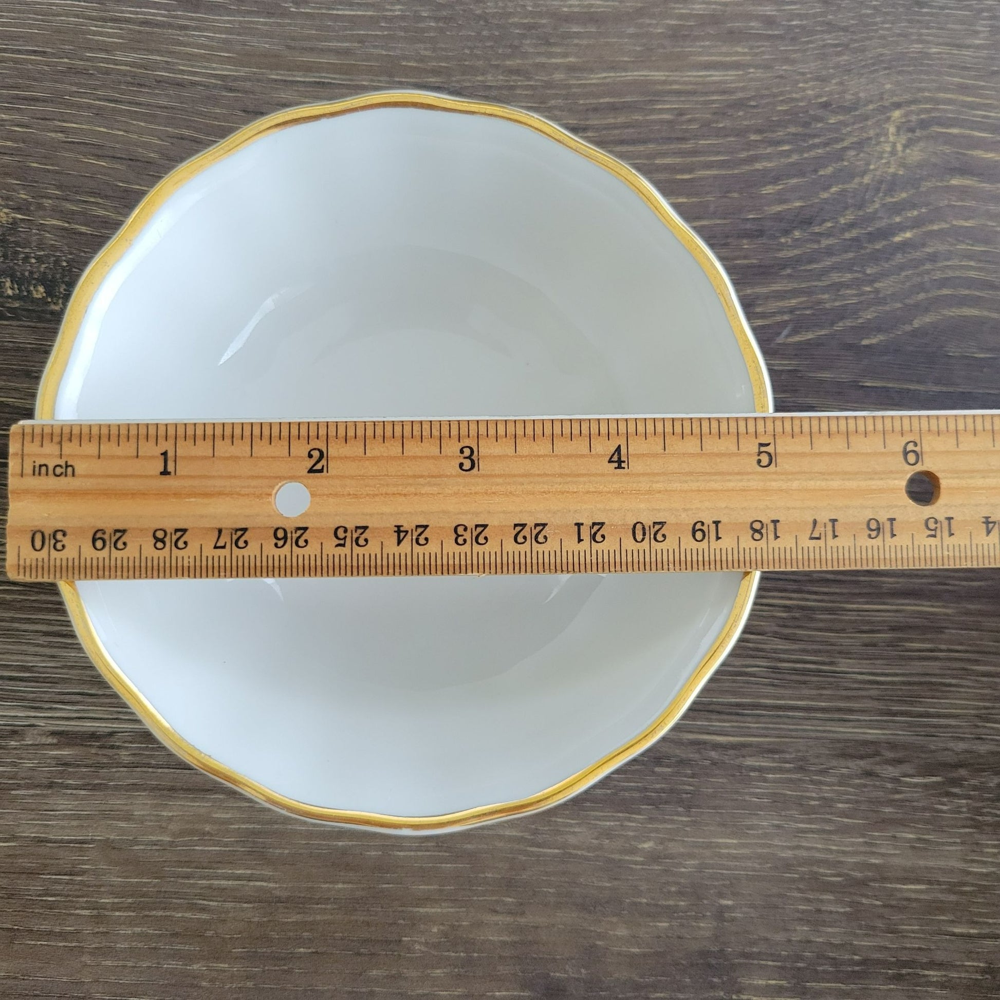 • Features a thick gold trim and inner gold band