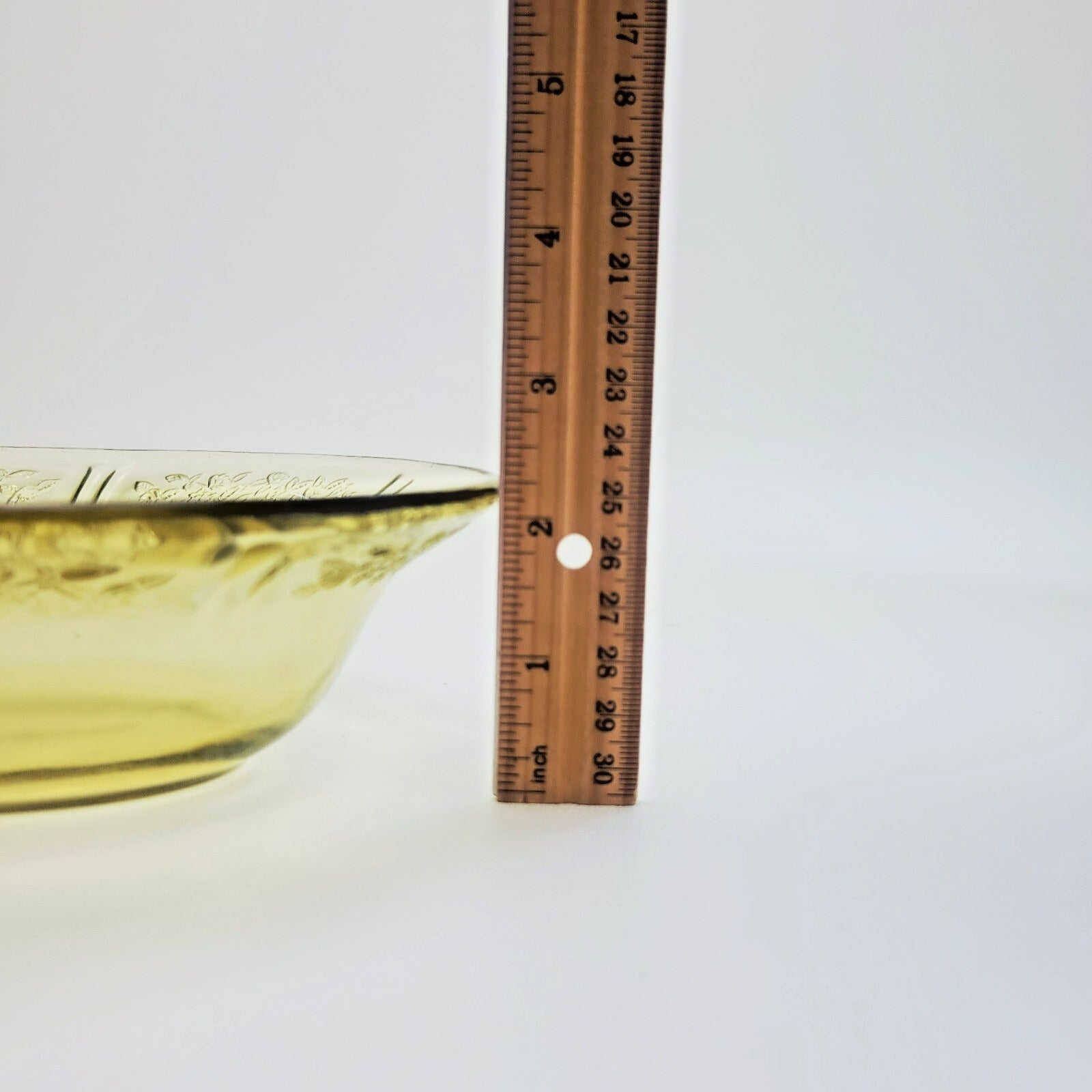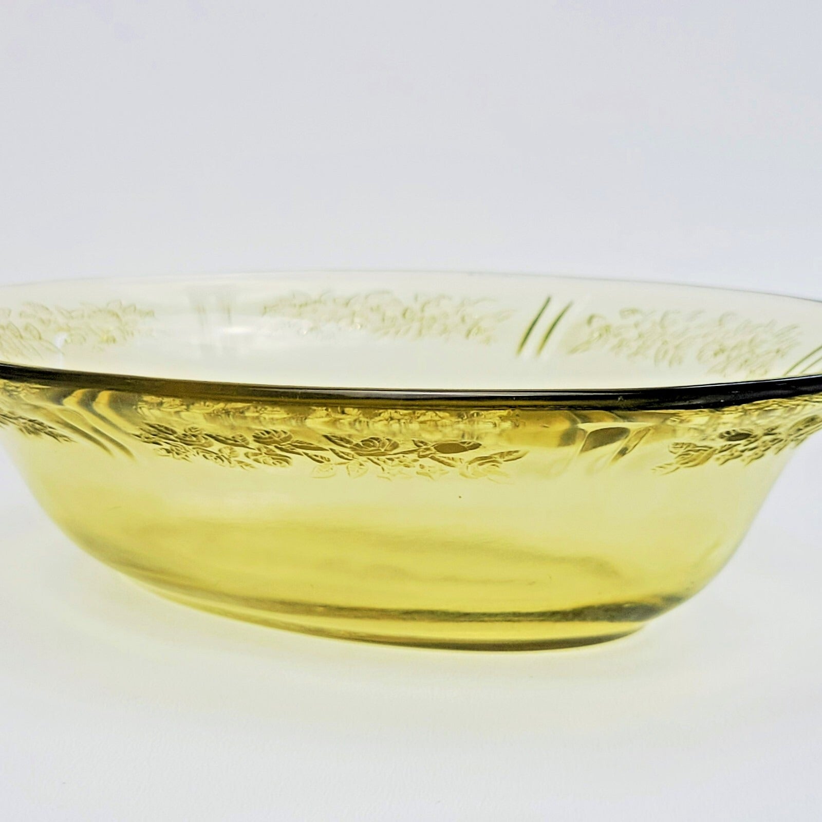 Vintage 1930s Federal Glass Sharon Cabbage Rose Oval Serving Bowl. Yellow / Amber depression glass dishes, perfect for adding a touch of nostalgia to your home décor.