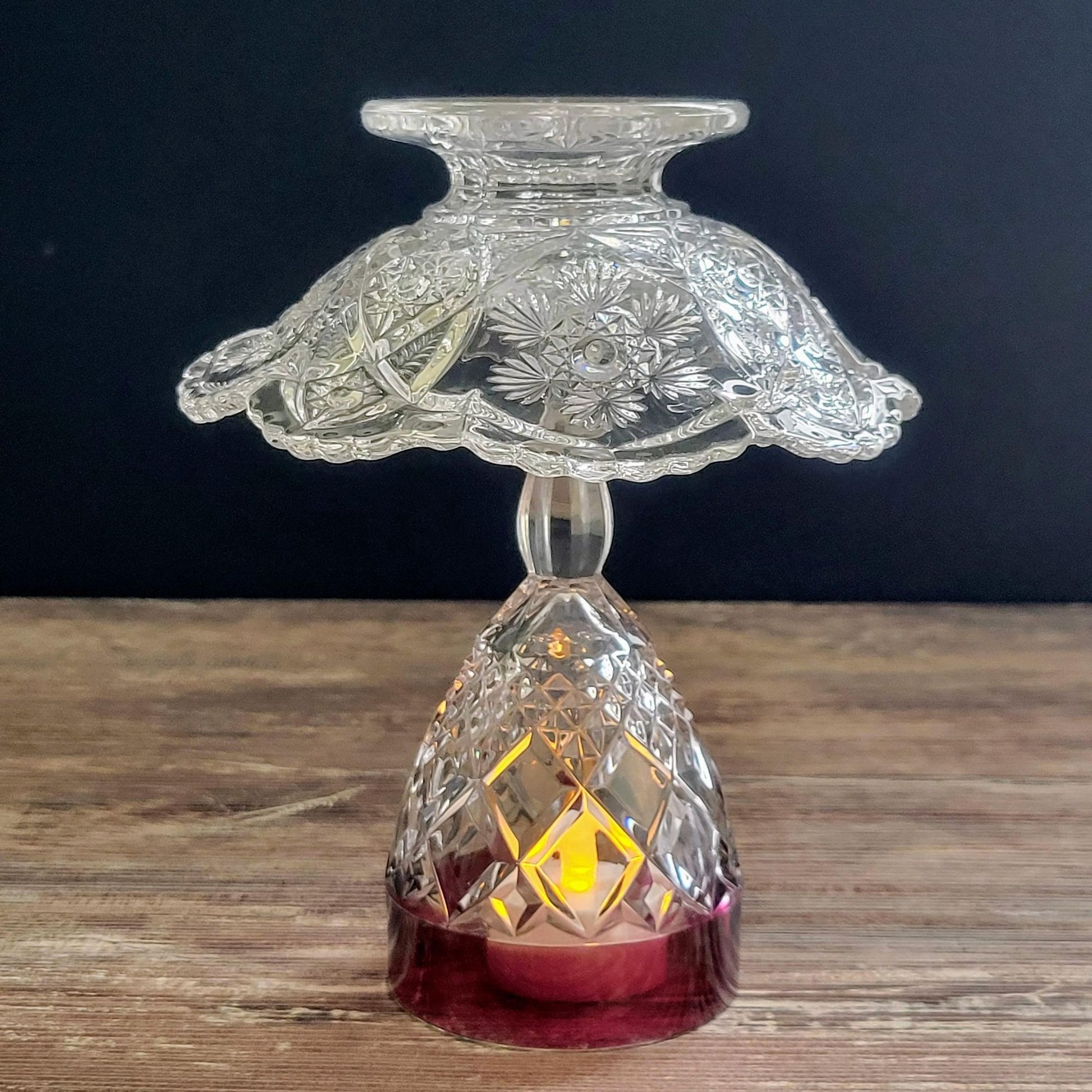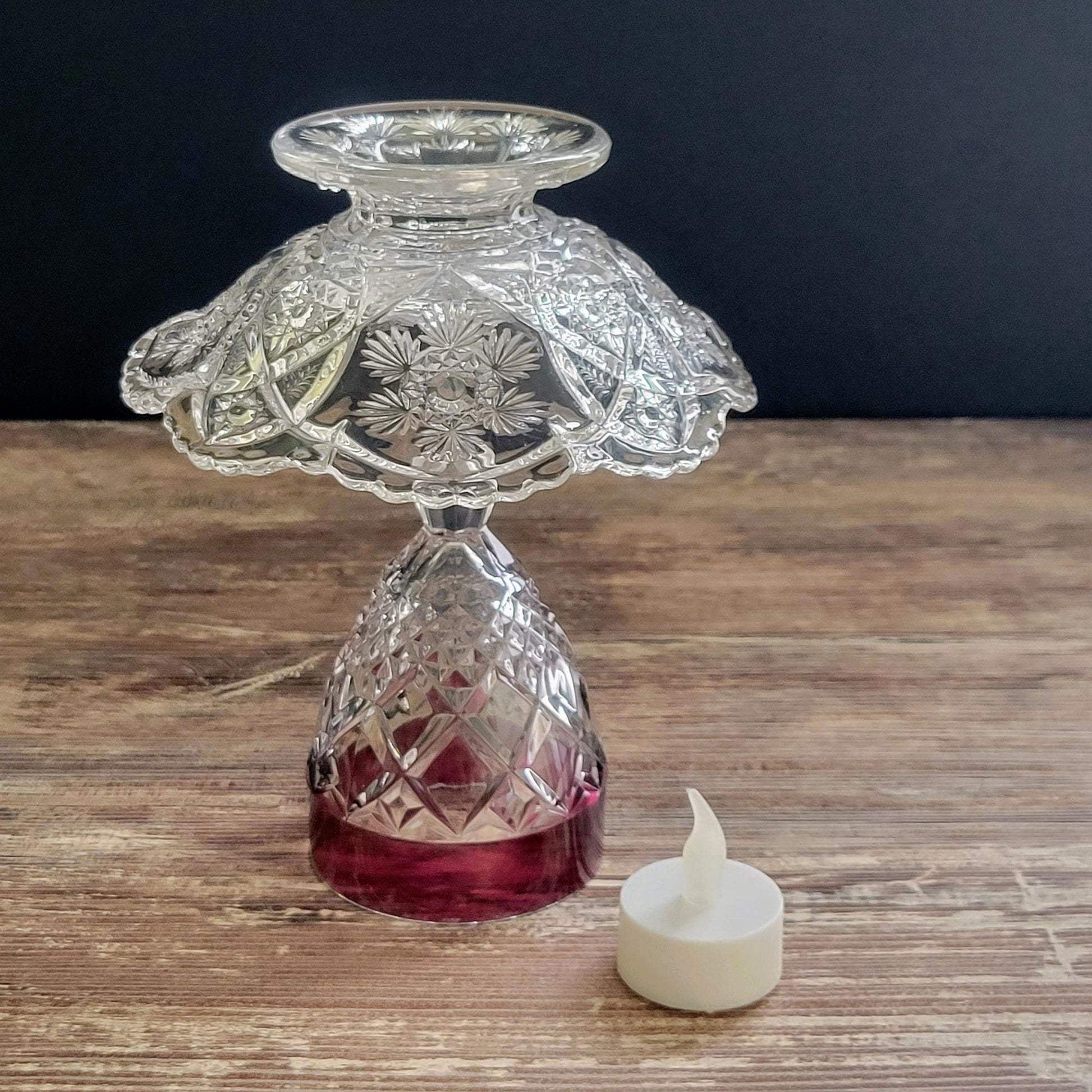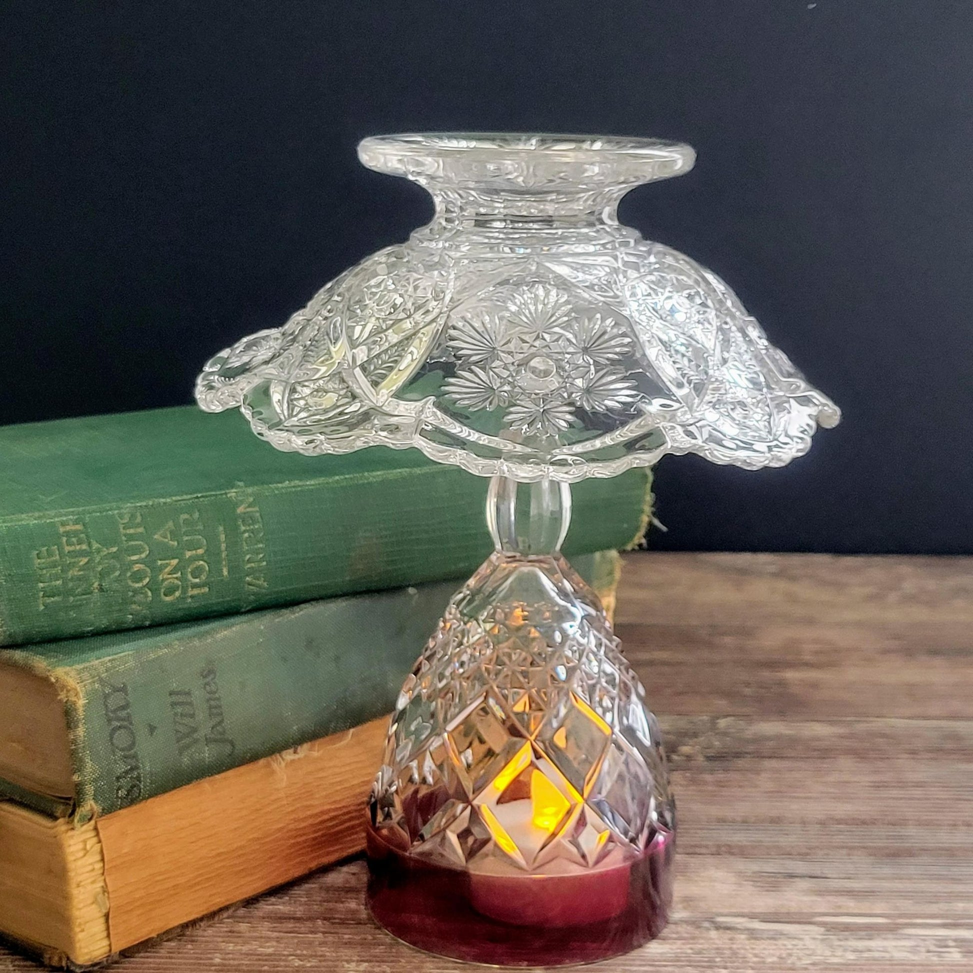 Flameless Candle Lamp, Upcycled Vintage Early American Pressed Glass