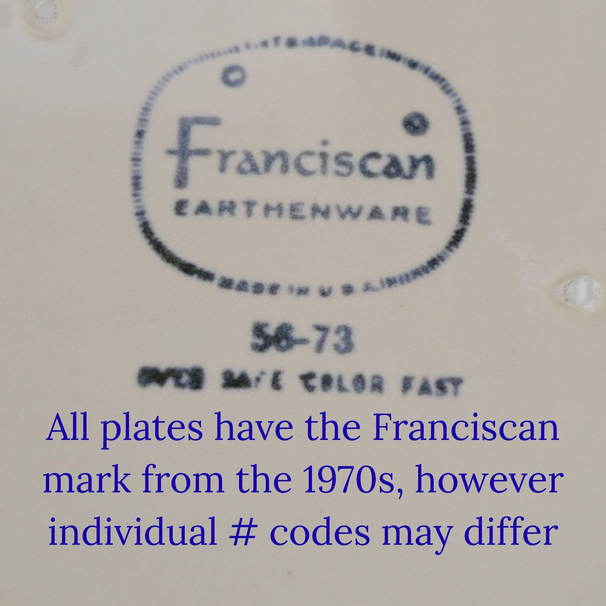 Brighten your table with this retro Franciscan Floral Plate from the 1970s, featuring vibrant daisy designs. Perfect for vintage enthusiasts and collectors, it adds a touch of Flower Power to any meal.
