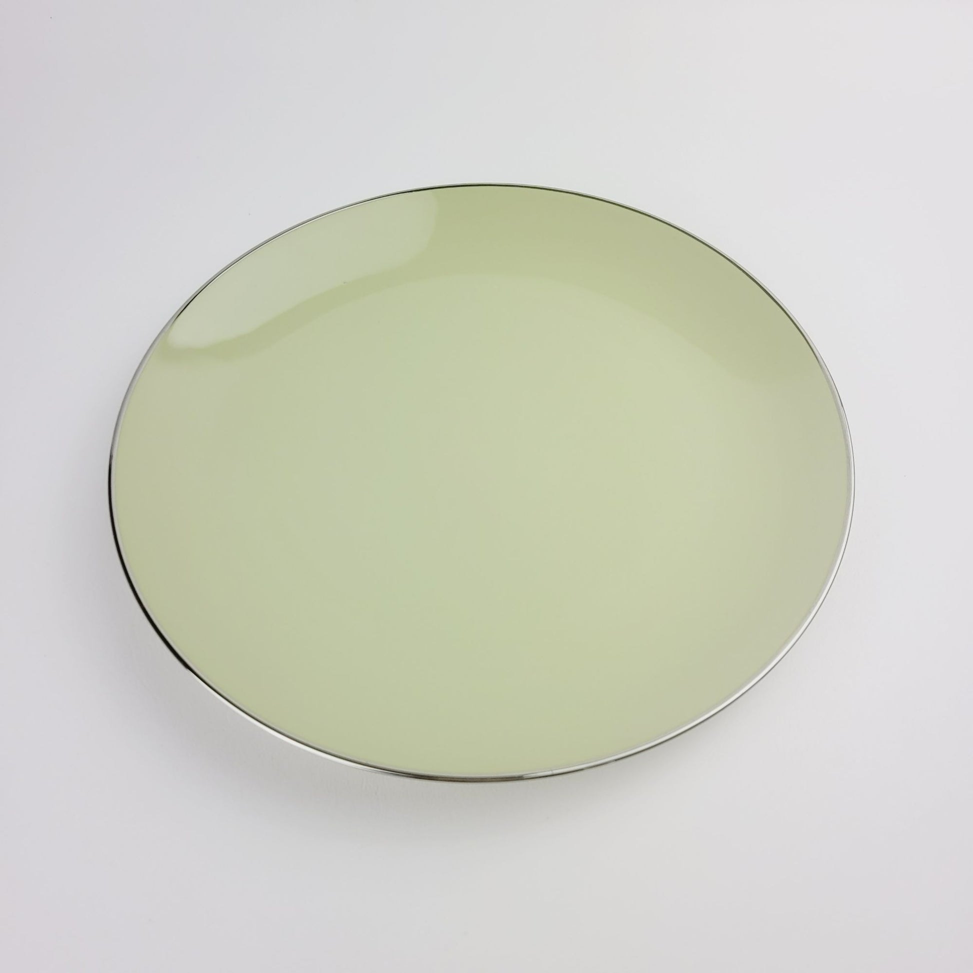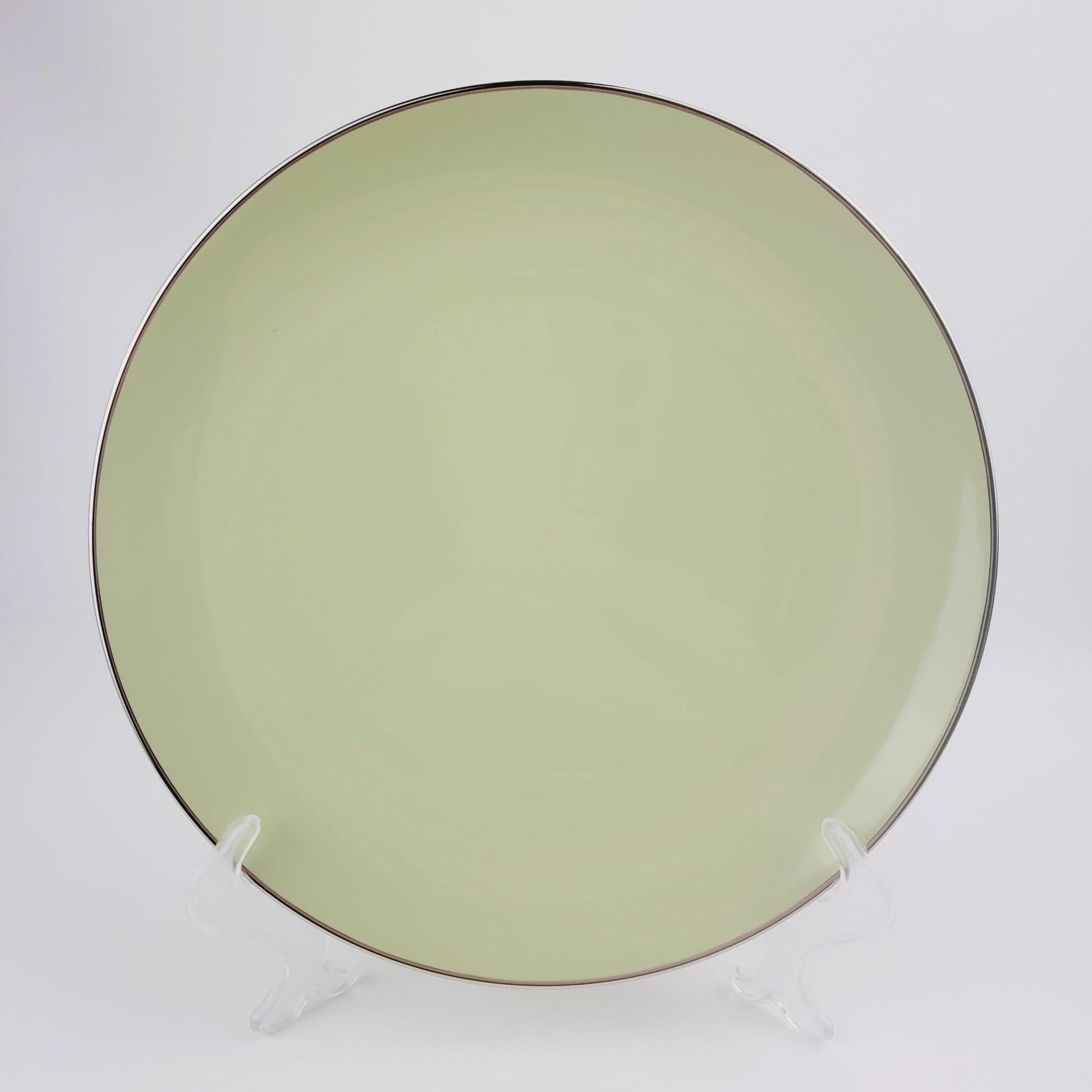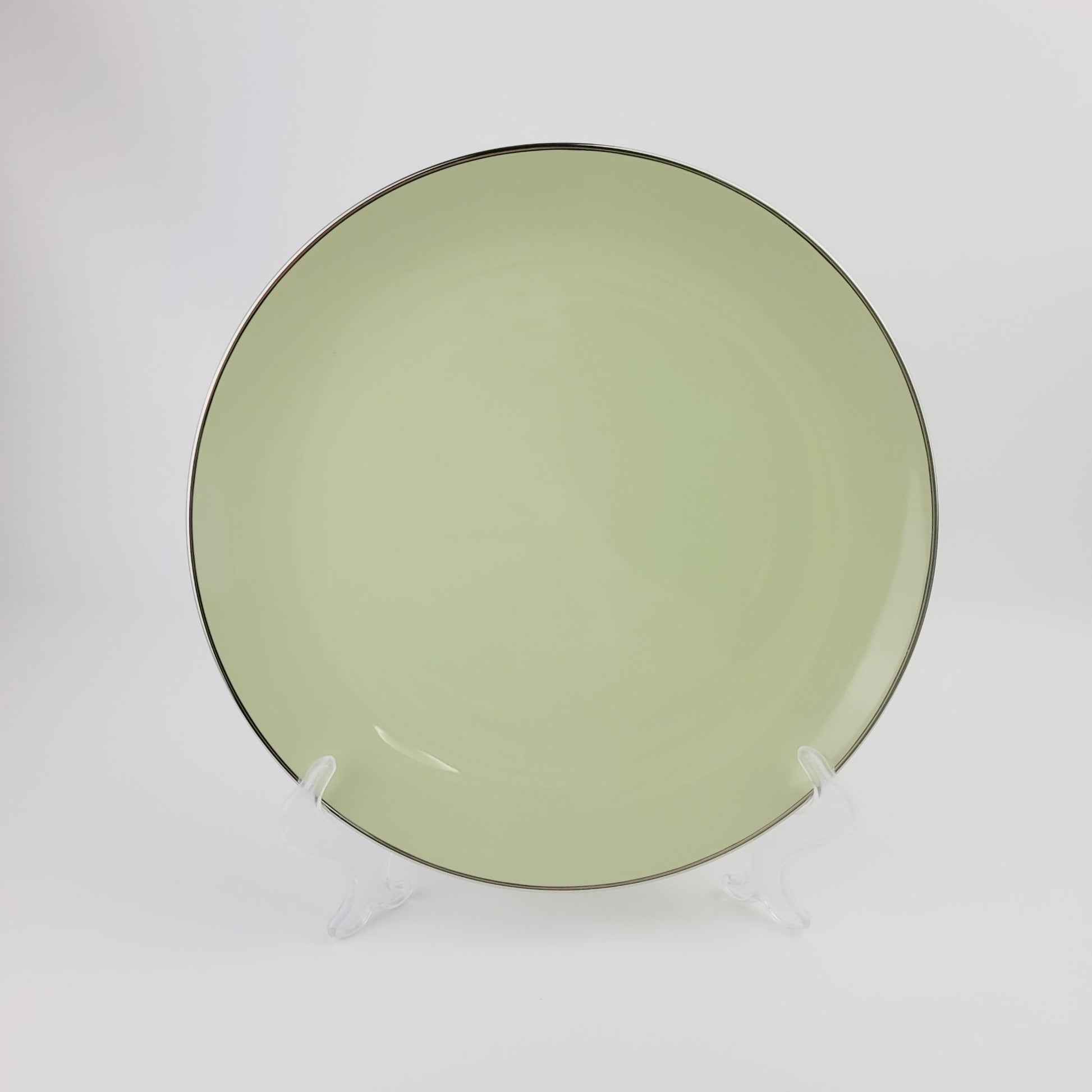Franciscan Willow Green Dinner Plate, Platinum Trim Coupe Shape, c.1953 USA