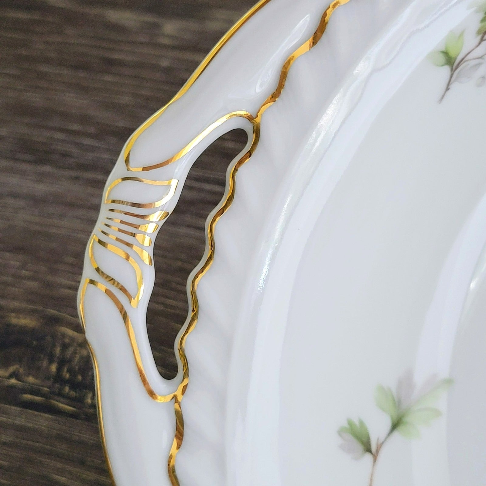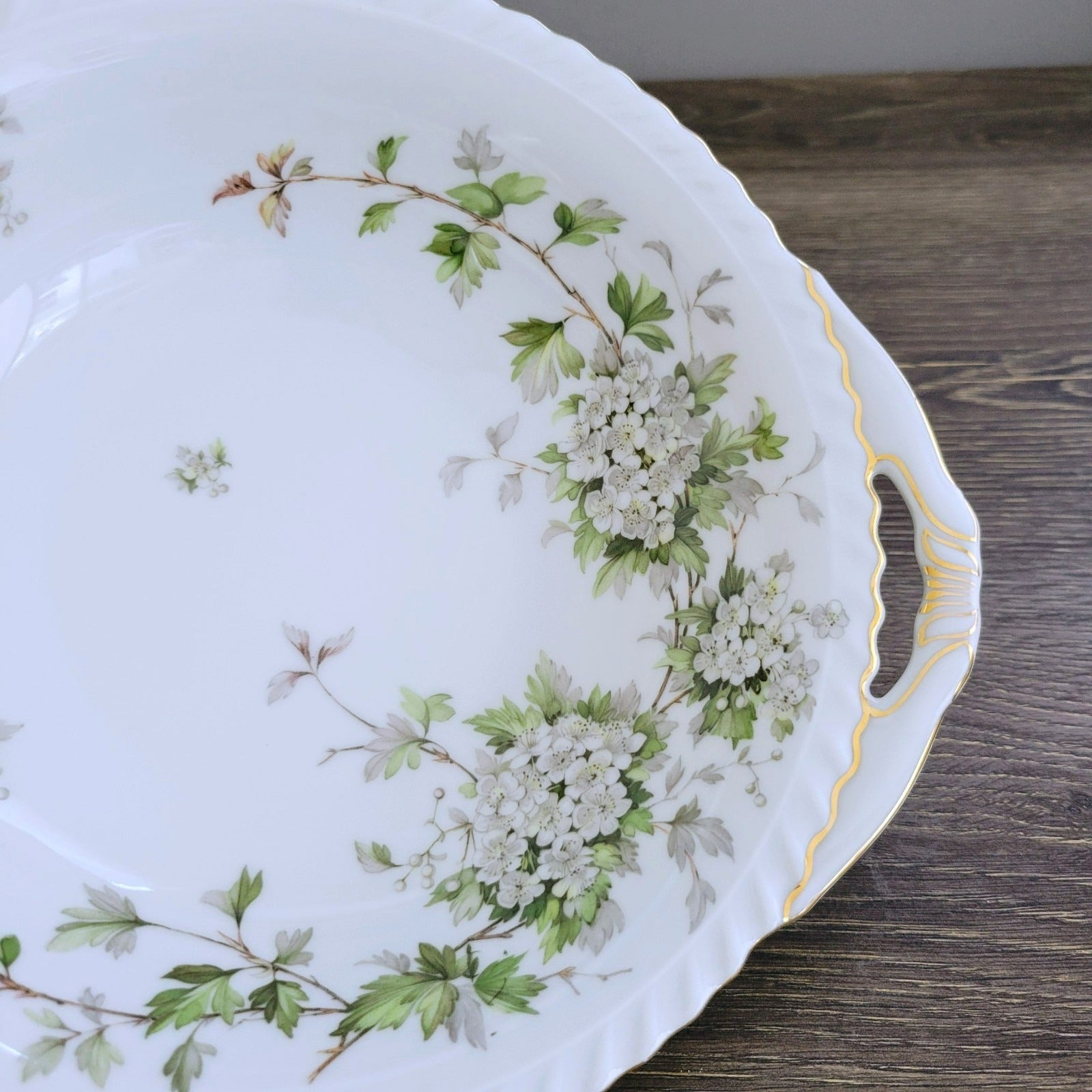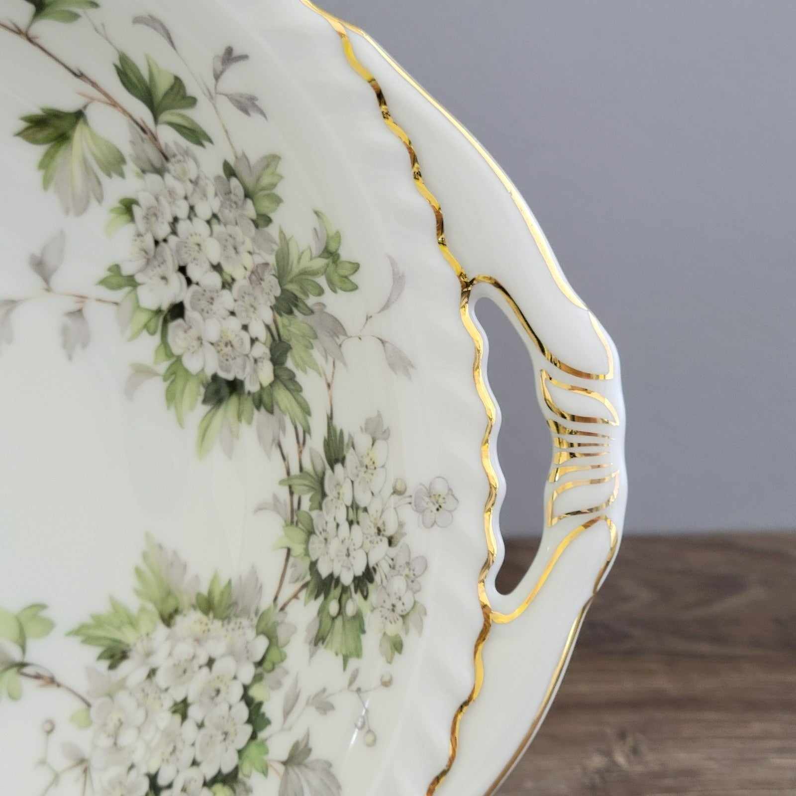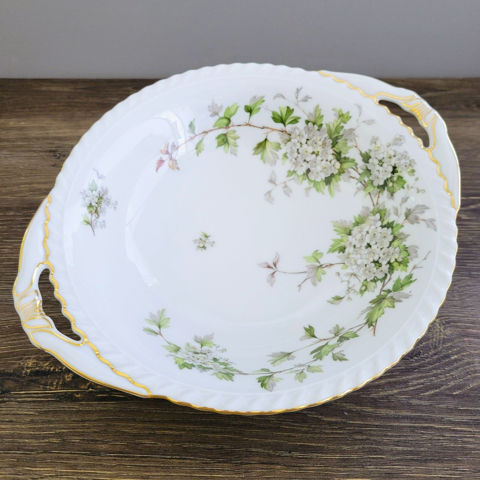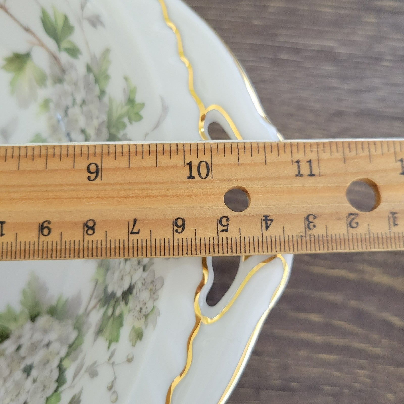 Elegant vintage Franconia Hawthorn bowl featuring delicate white flowers and leaves, complemented by a gadroon border and gold trim. Perfect for collectors and as a charming addition to your dining set.