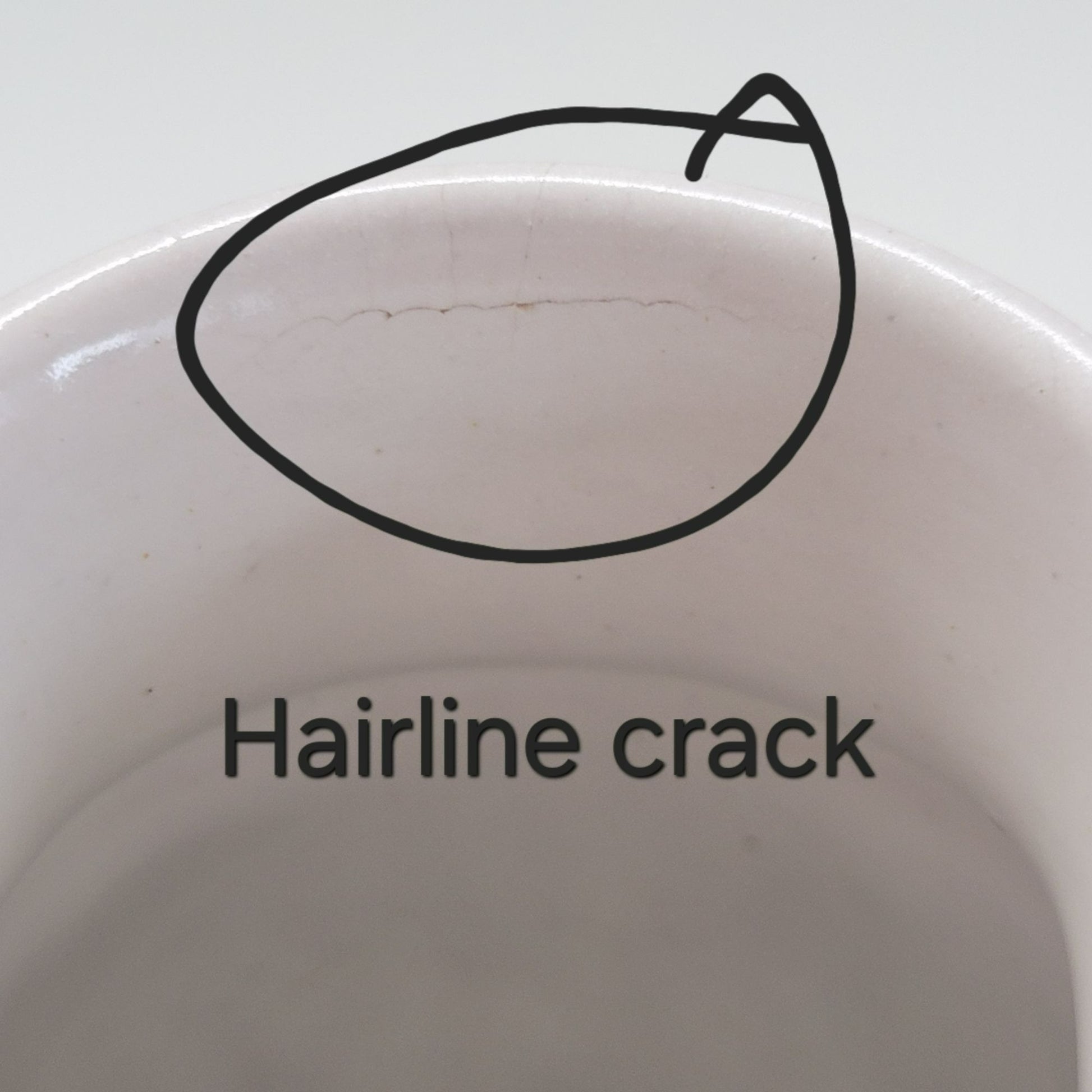 Set is in overall good condition. The red cup does have a hairline crack near the top inside (see photo).