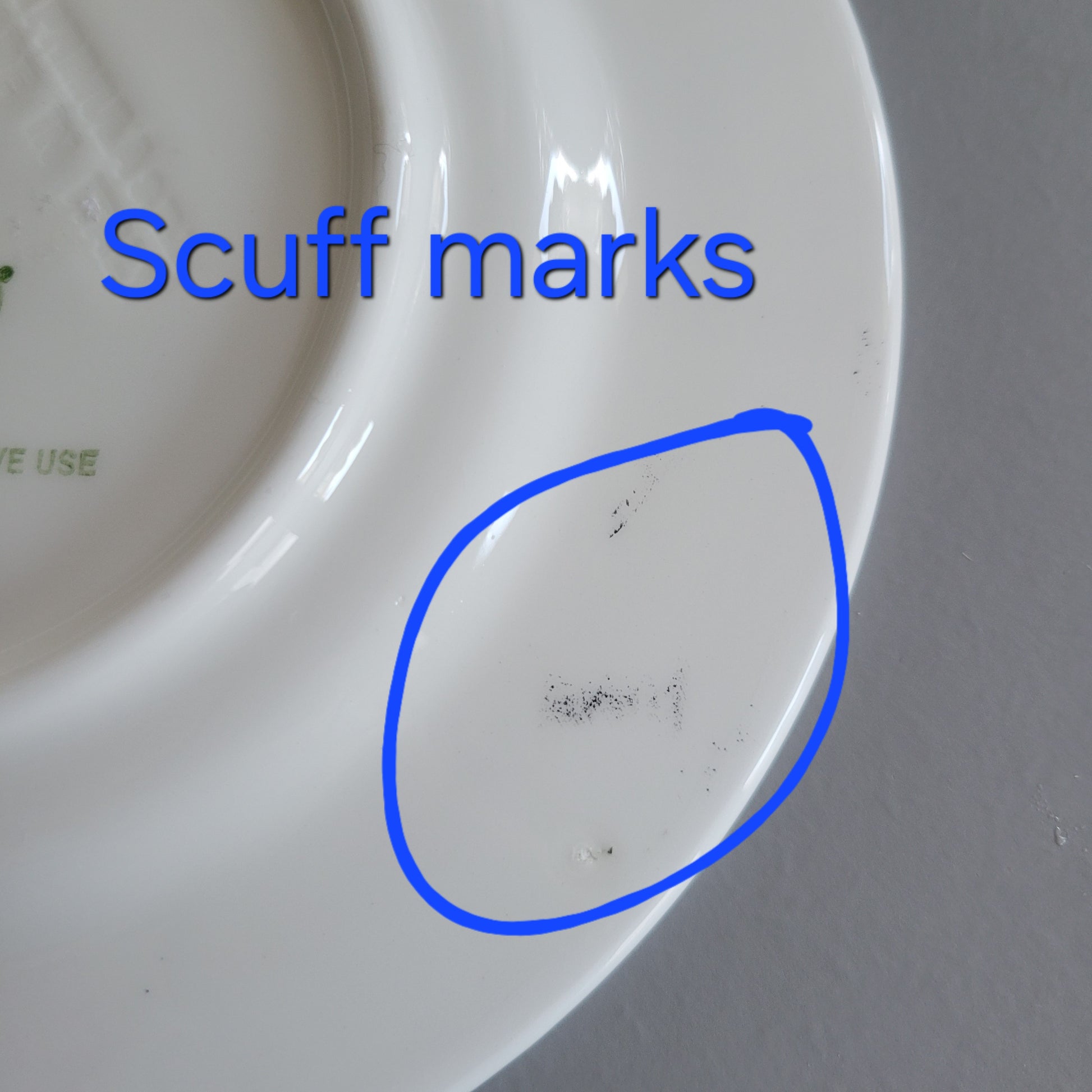 Item is in good condition with no cracks, chips or crazing. There is a scuff mark on the backside of the plate (see photo).