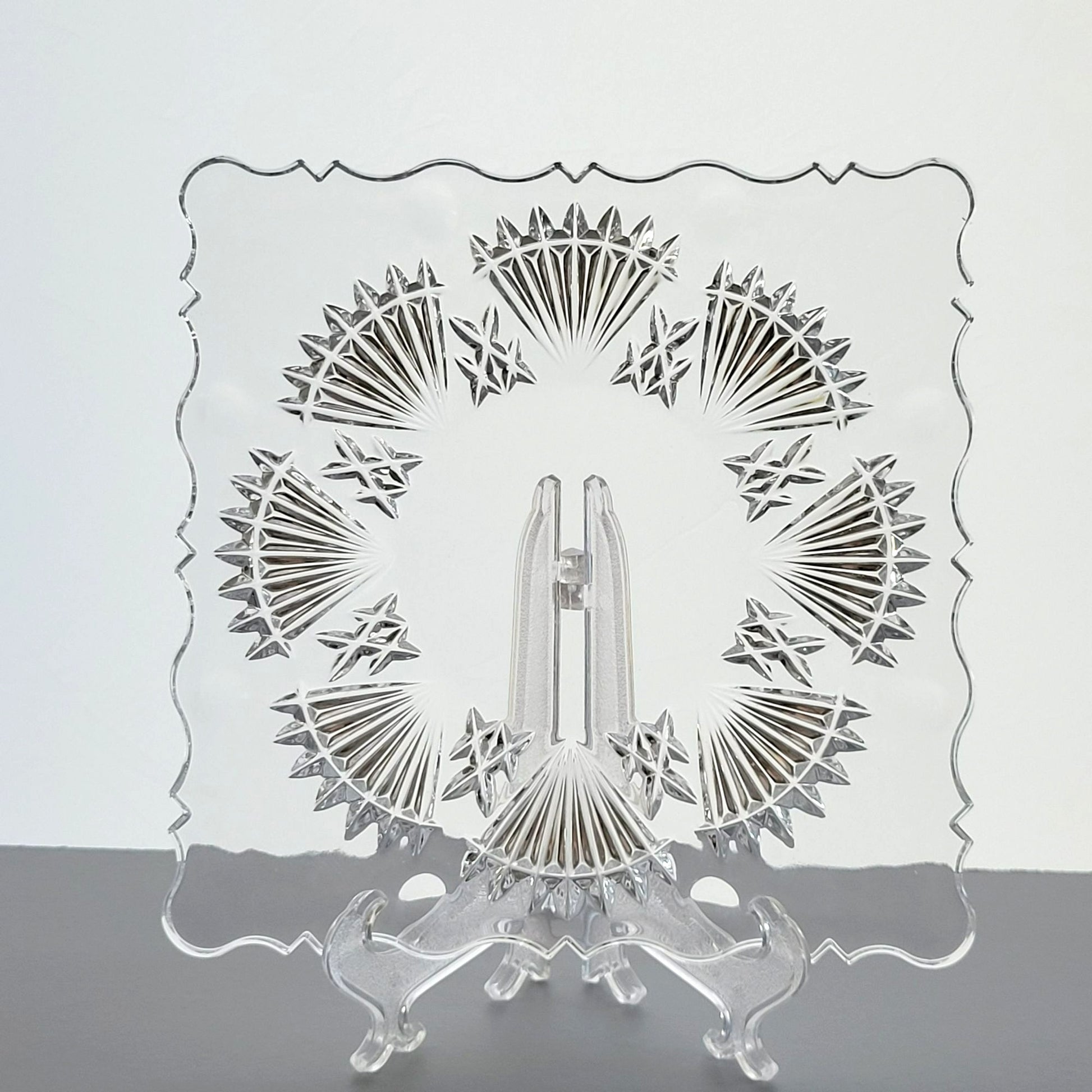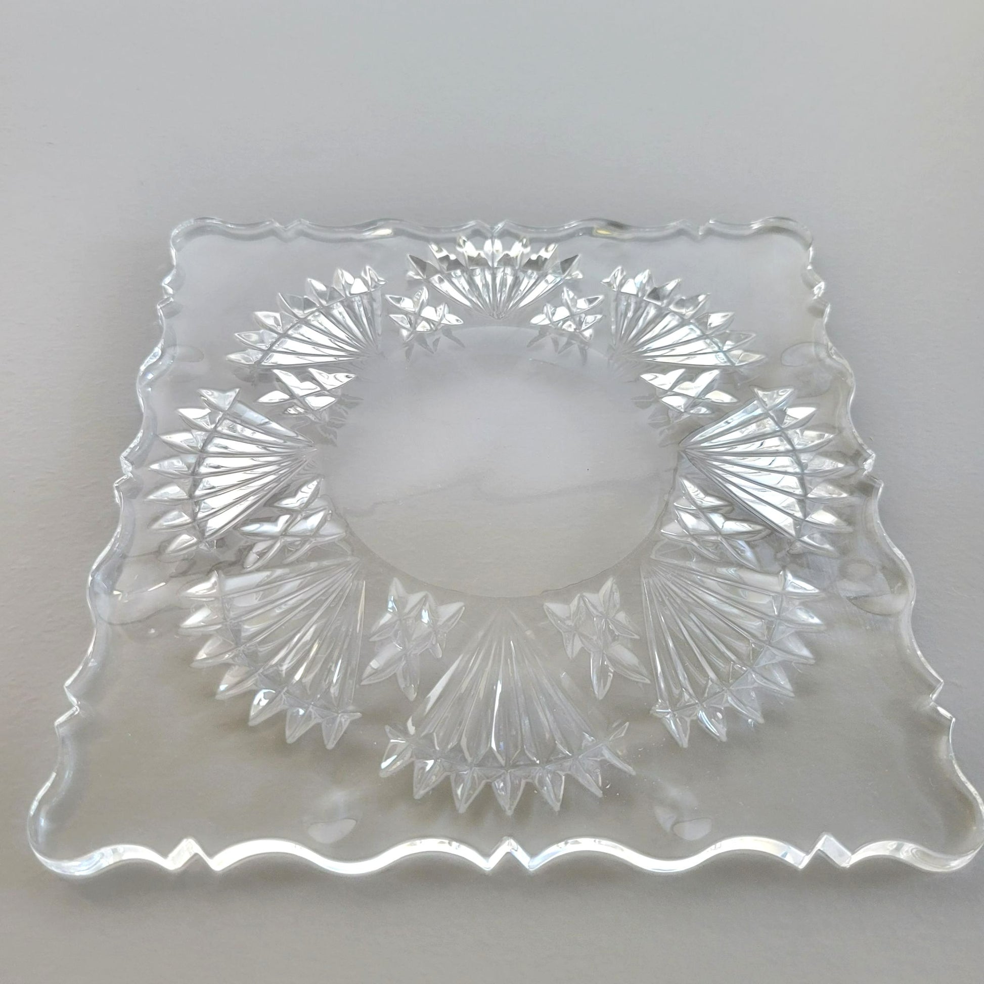 Elegant and timeless, this vintage Godinger crystal salad plate set features the stunning Freedom pattern with vertical and fan cut designs. Made in the Czech Republic, these plates are perfect for special occasions or daily use.