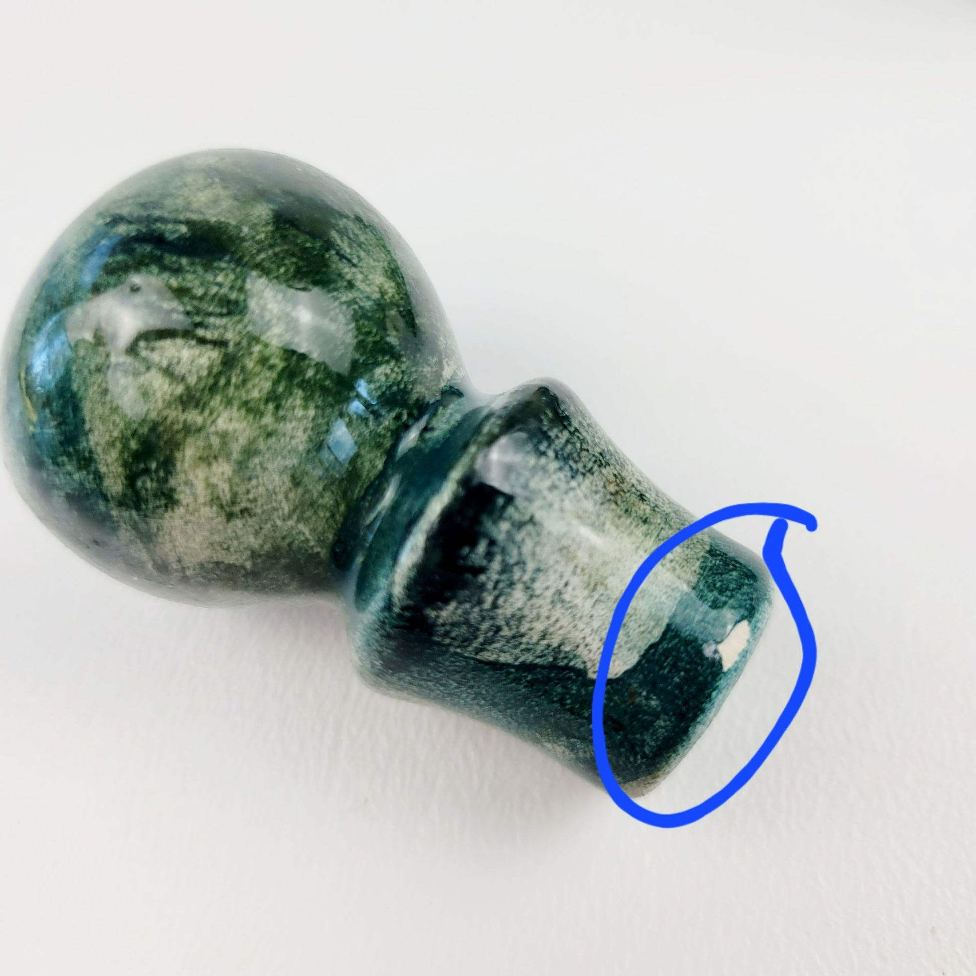 Jug is in overall good condition with no chips, there is one minor hairline cracks where the handle and jug meet (see photo). Stopper has a small chip out of the bottom (see photo), this can not be seen when stopper is in jug.
