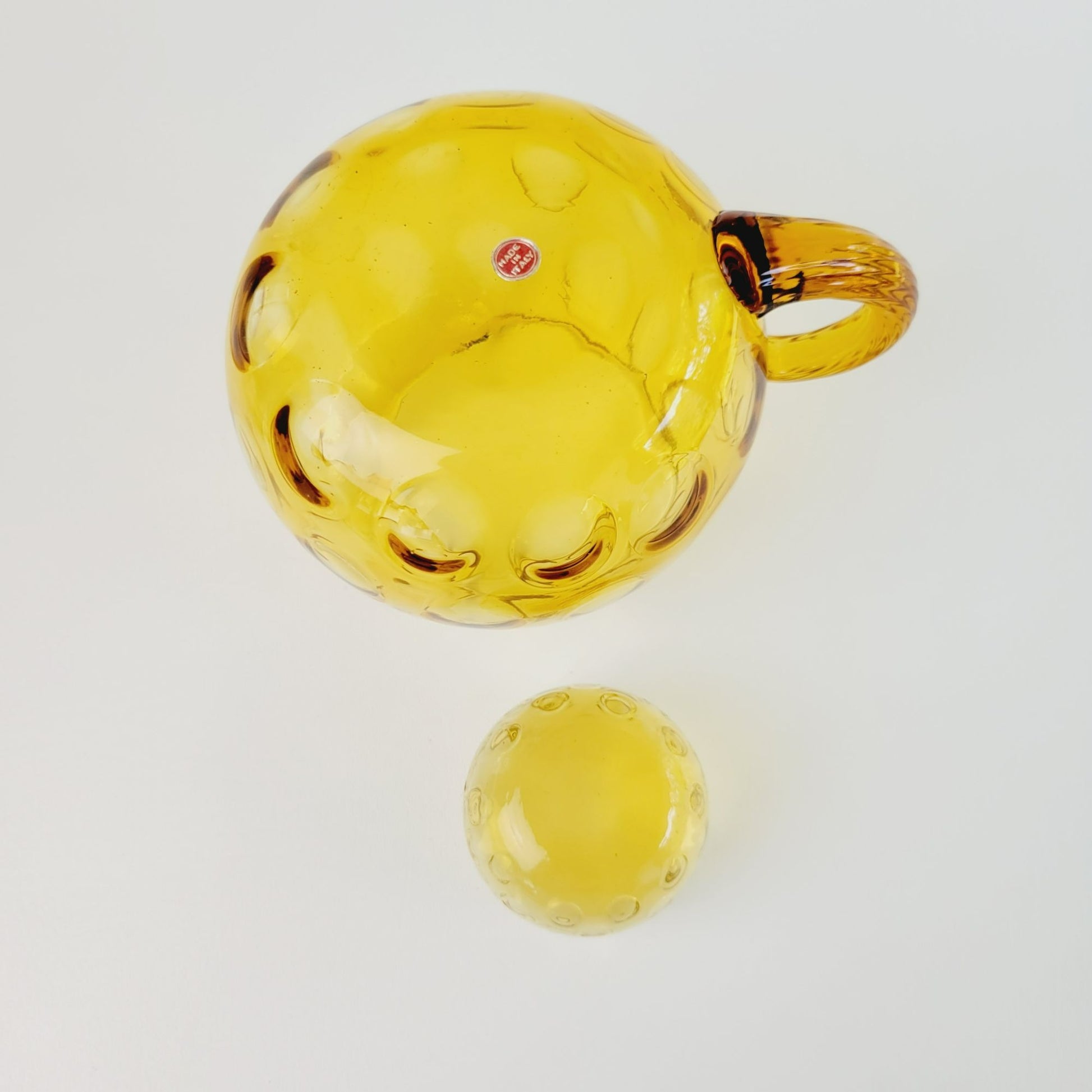 Hand Blown Italian Glass Pitcher & 5 Juice Glasses, Amber Optic Dot & Twisted Handle