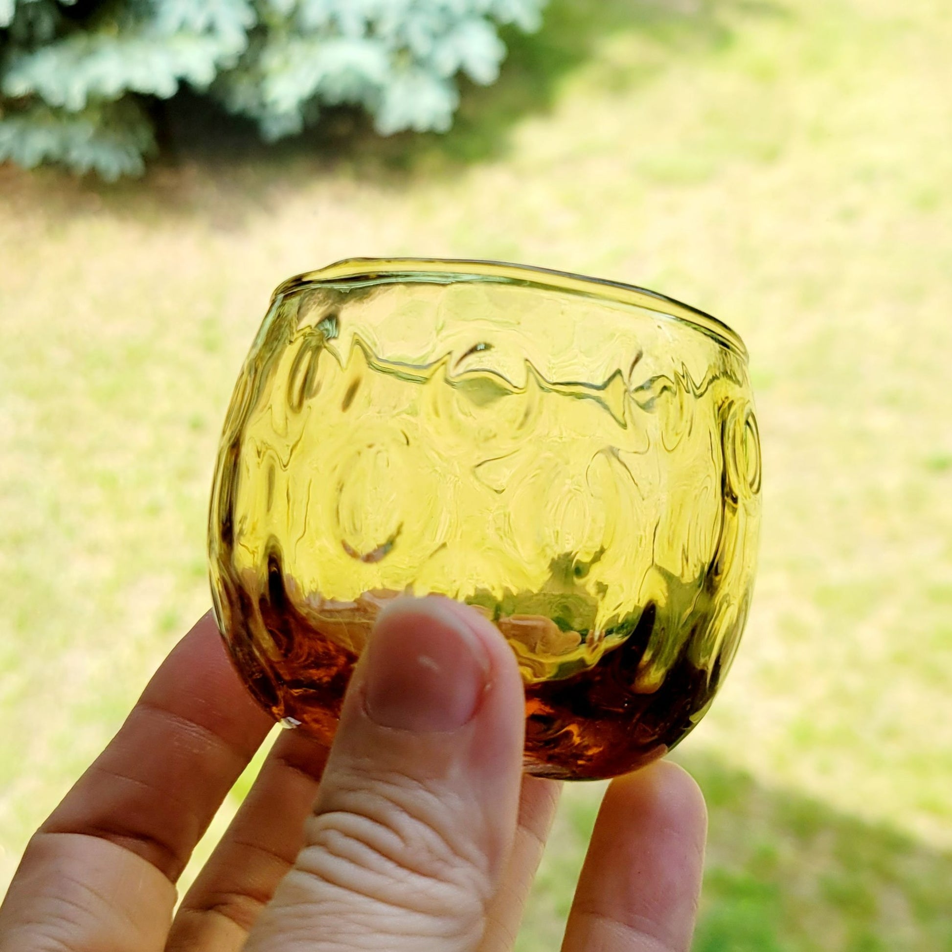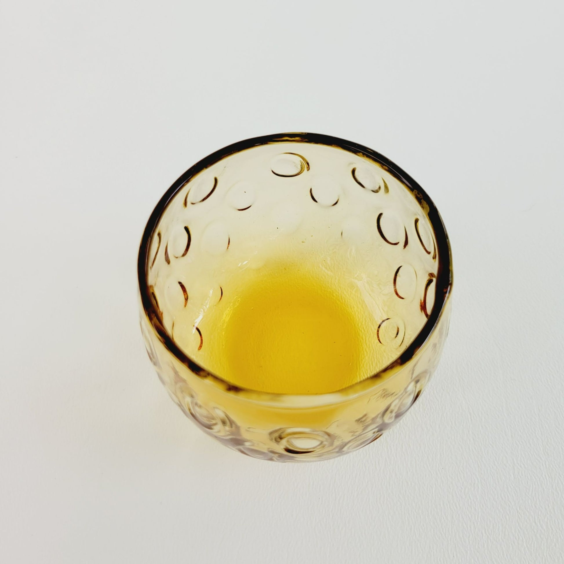 • Five amber optic dot juice glasses