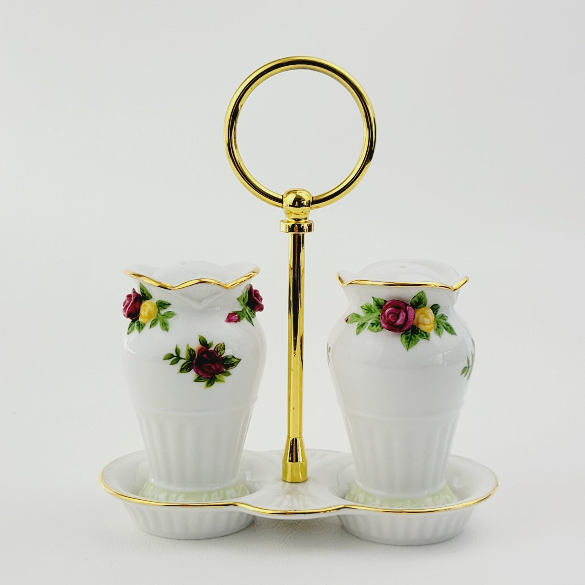 Royal Albert Old County Roses Salt, Pepper & Tray Set