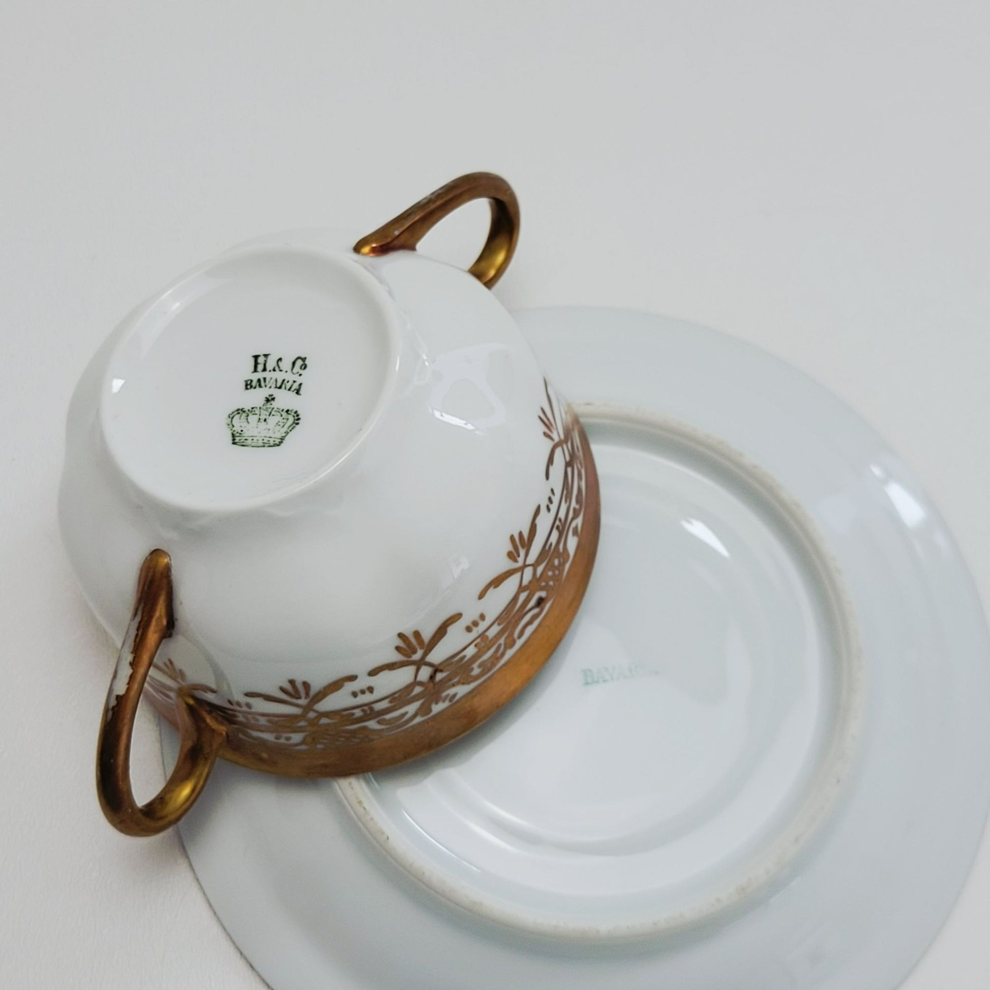 Heinrich & Co. Gold & White Bouillon Soup Cup & Saucer, 2 Sets, Made in Germany