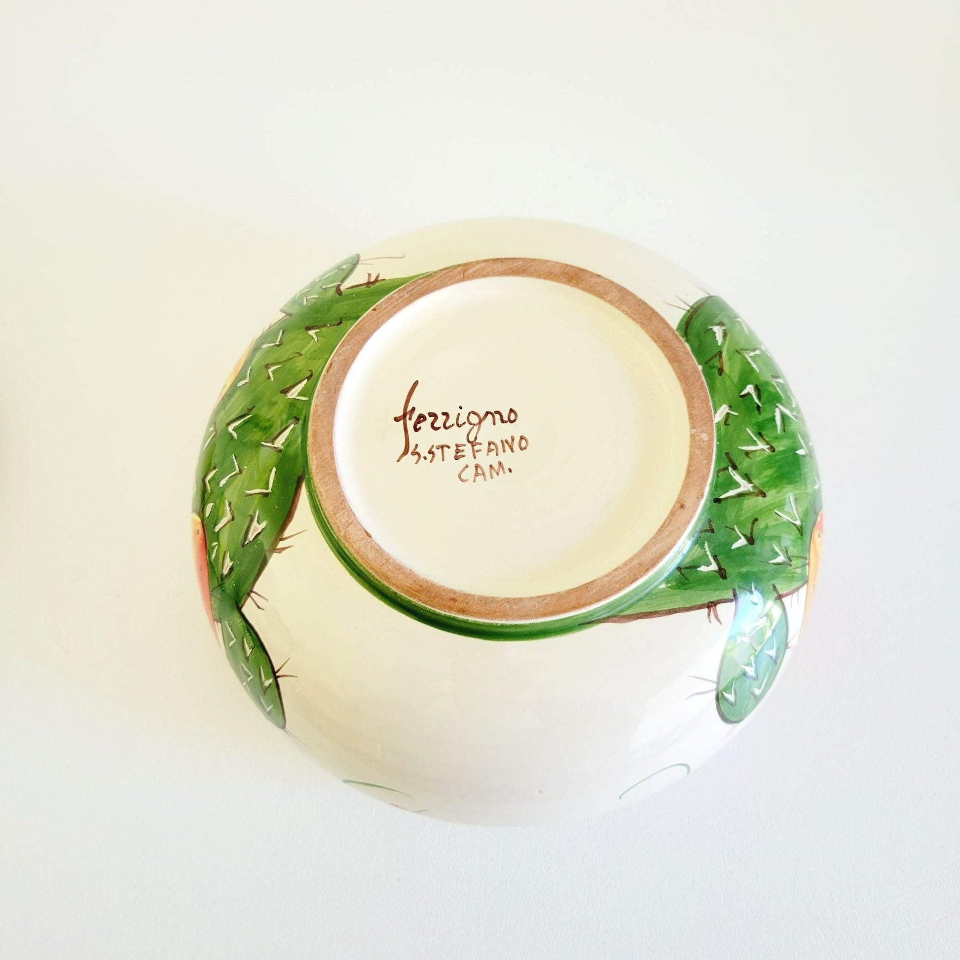 This vivid colored Italian biscuit cookie jar features a hand-painted prickly pear cactus design, perfect for adding a splash of color to your kitchen or as a thoughtful housewarming gift.