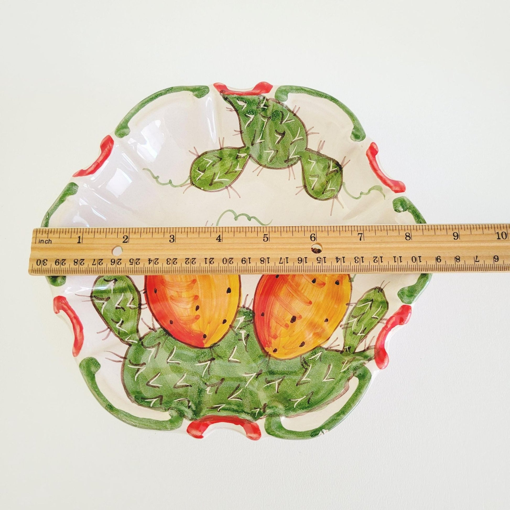 This Italian hand-painted ceramic low pasta bowl features a prickly pear cactus design, perfect for adding a unique touch to your kitchen. Would also be a great to hang on a kitchen wall.