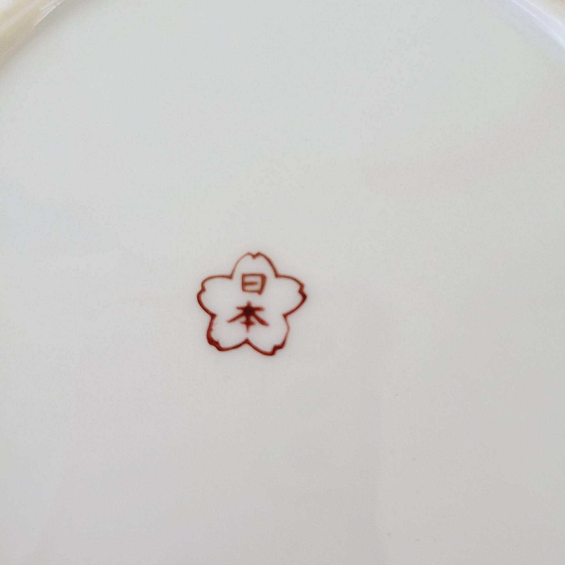 This vintage Japanese Kutani Geisha Girls Bread Plate set features a hand-painted porcelain design in pink and blue landscape hues. Perfect for Asian decor enthusiasts, unknown brand.