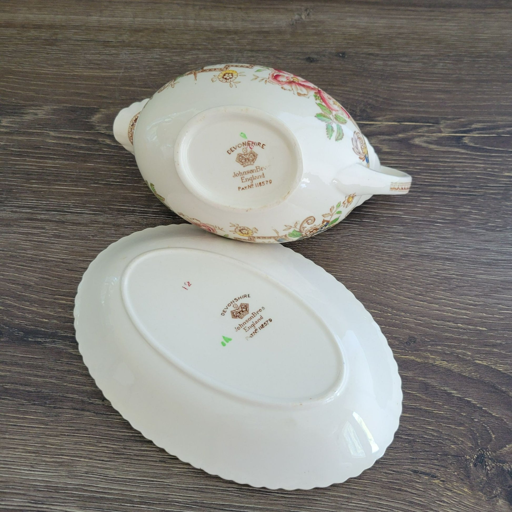 Johnson Bros Devonshire Brown Gravy Boat & Underplate