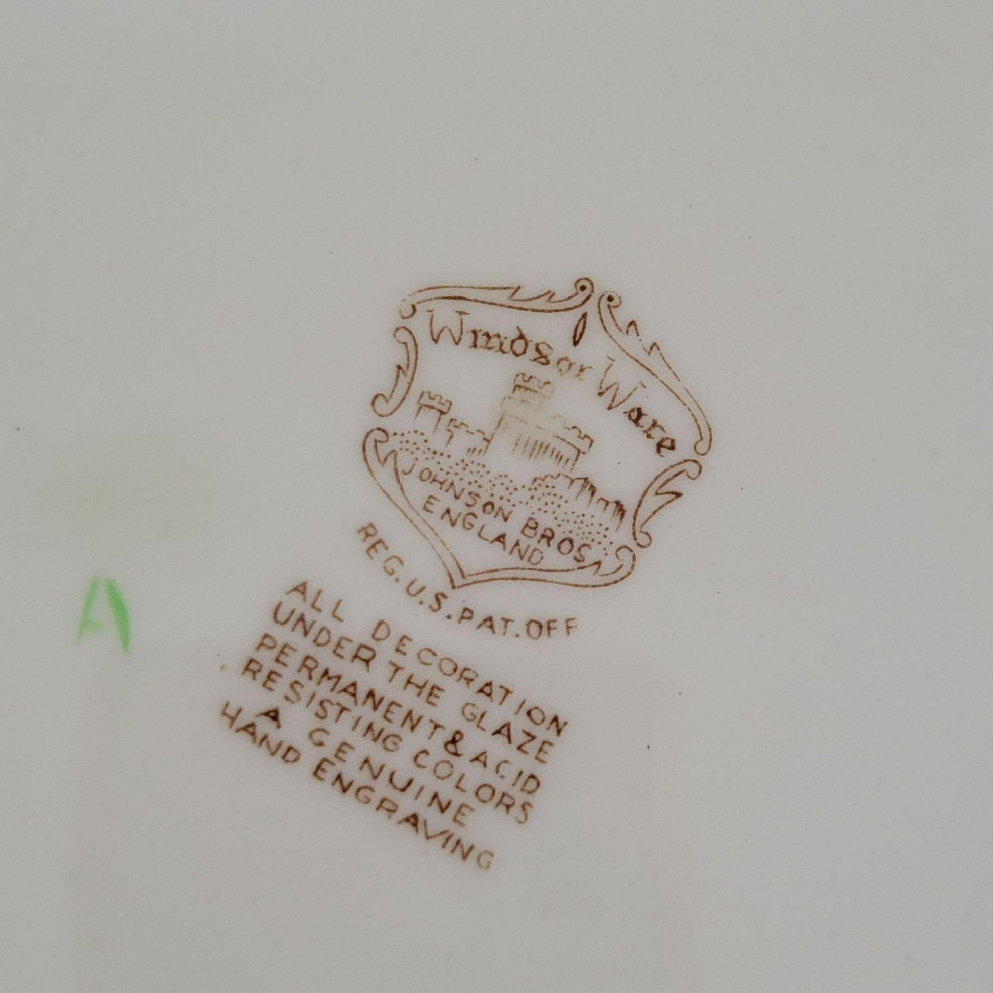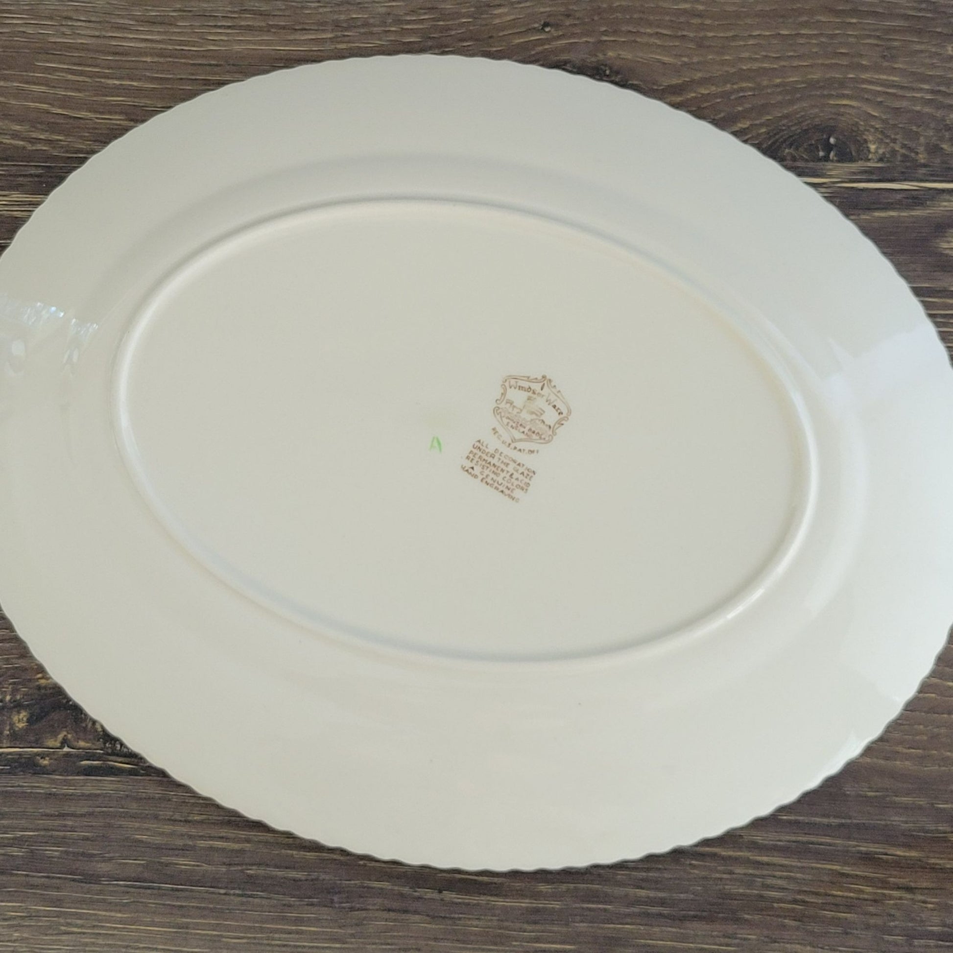 Vintage Johnson Brothers Windsorware oval serving platter with Margaret Rose Brown multi-color floral design and elegant gadroon edge. Discontinued piece from England, circa 1939-1965. Perfect for collectors or adding vintage charm to your dining table.