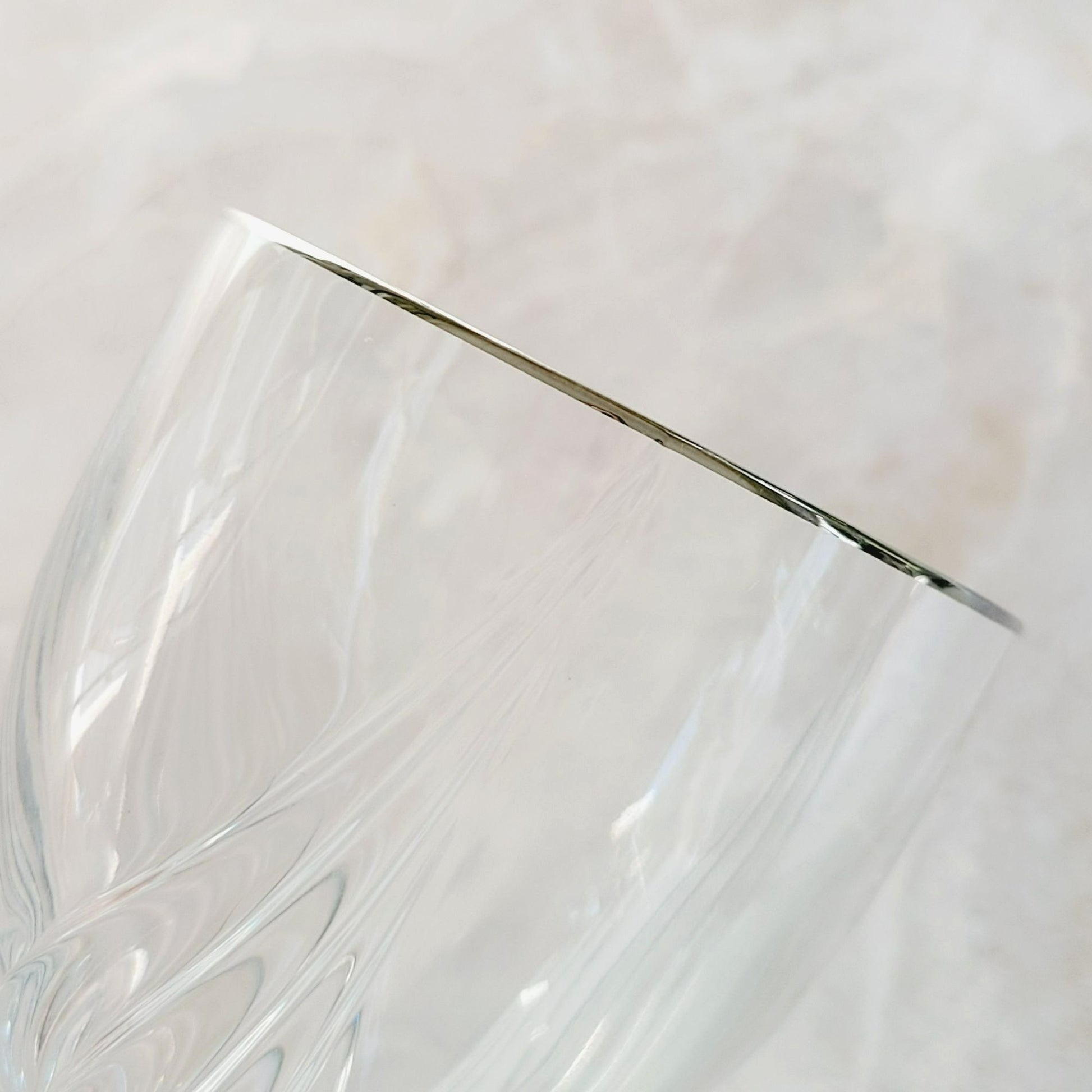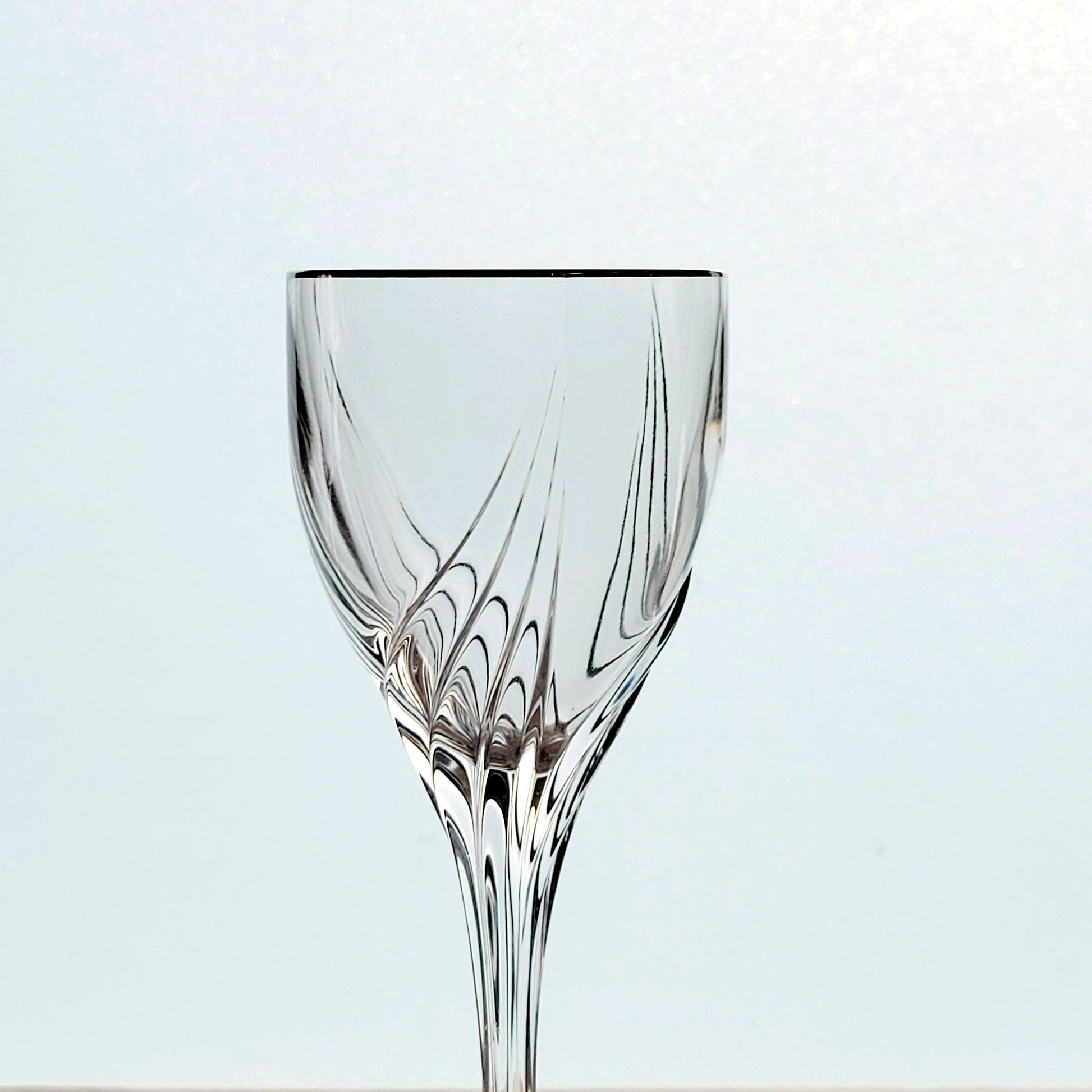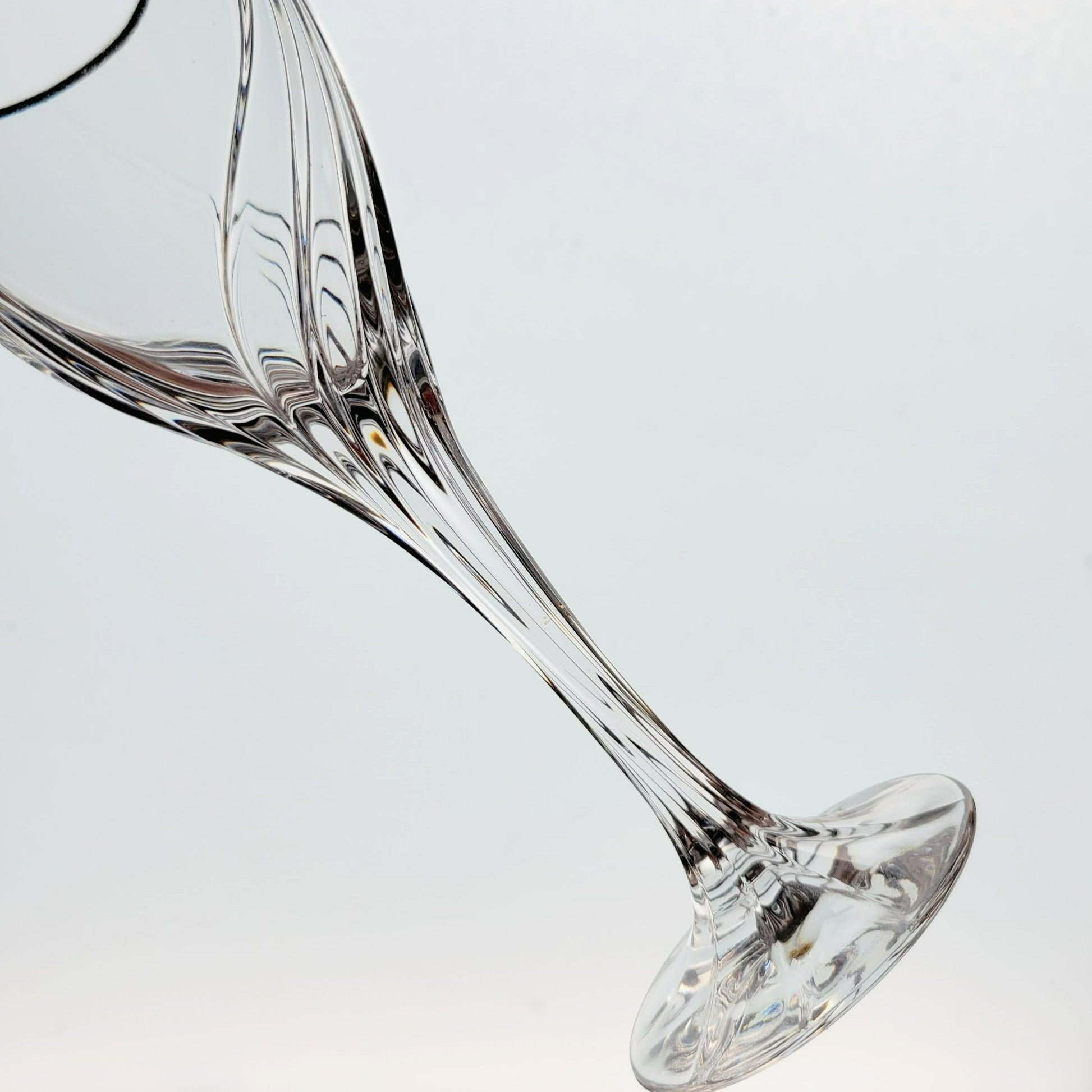 Set of 2 Lenox Crystal Wine Glasses, Debut Platinum, featuring an elegant swirl design with platinum trim. Each glass is 7.5" tall and holds 4fl oz. Perfect as replacement glassware or shower/wedding gift.