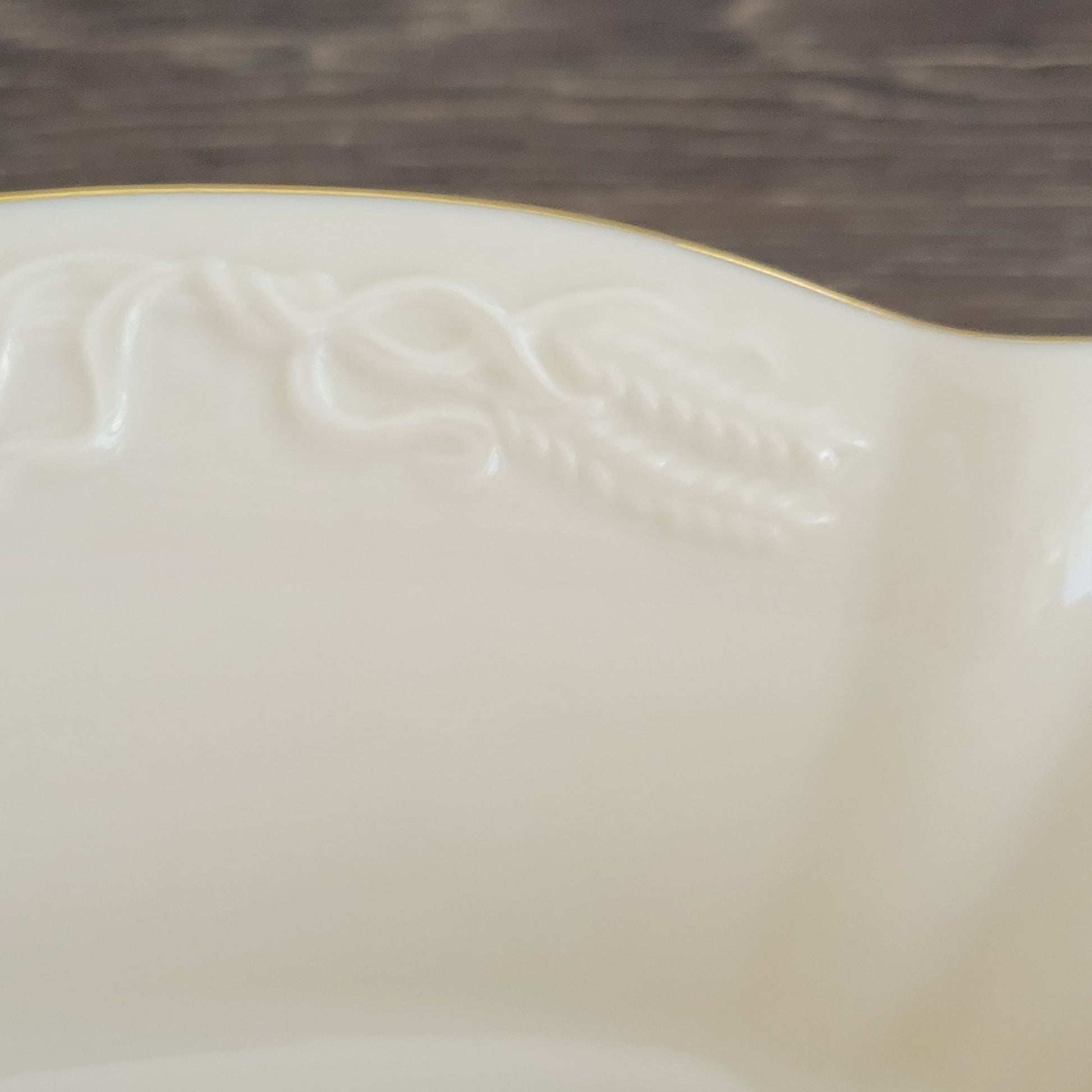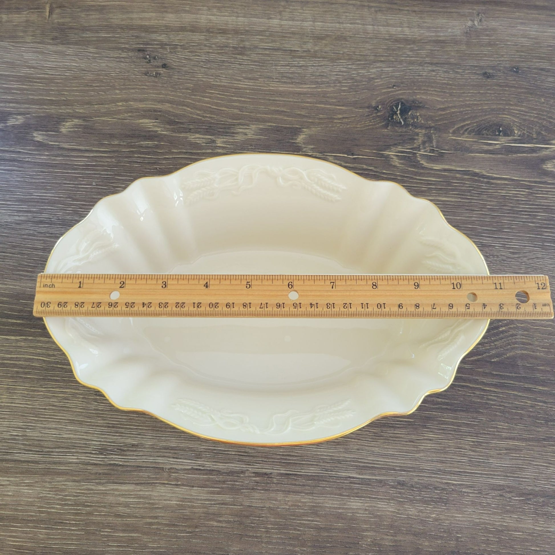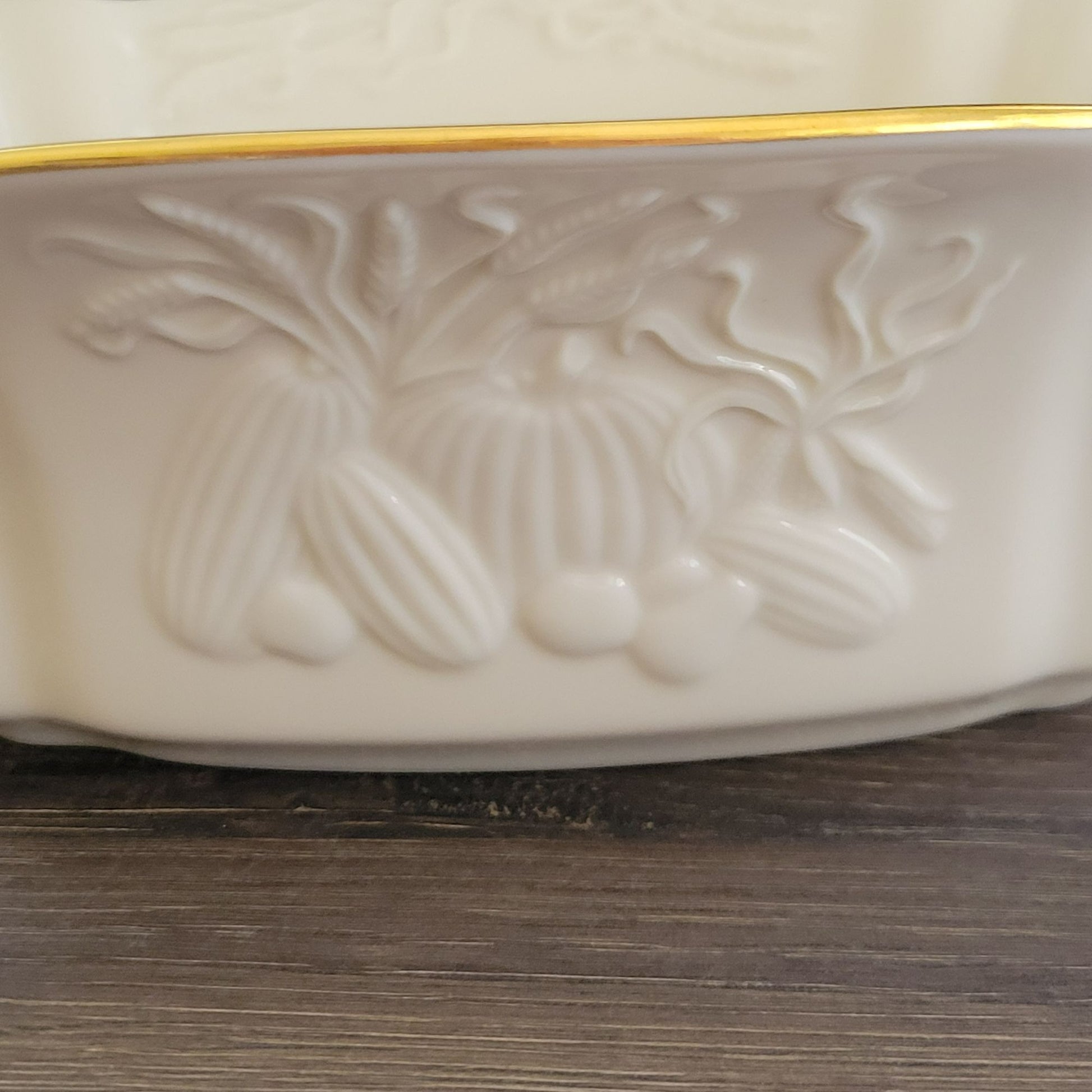 This vintage Lenox China Harvest Centerpiece Bowl embodies timeless elegance. The embossed harvest motif and gold trim highlight its refined craftsmanship.