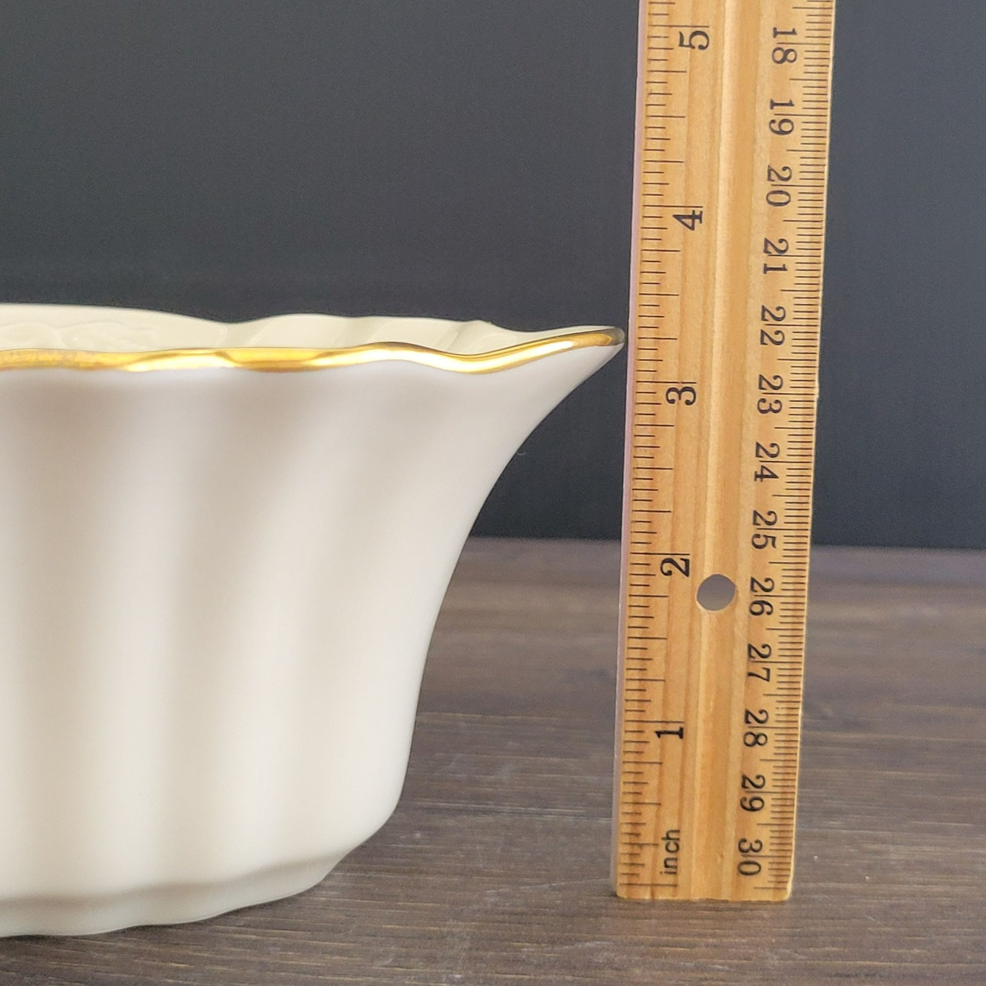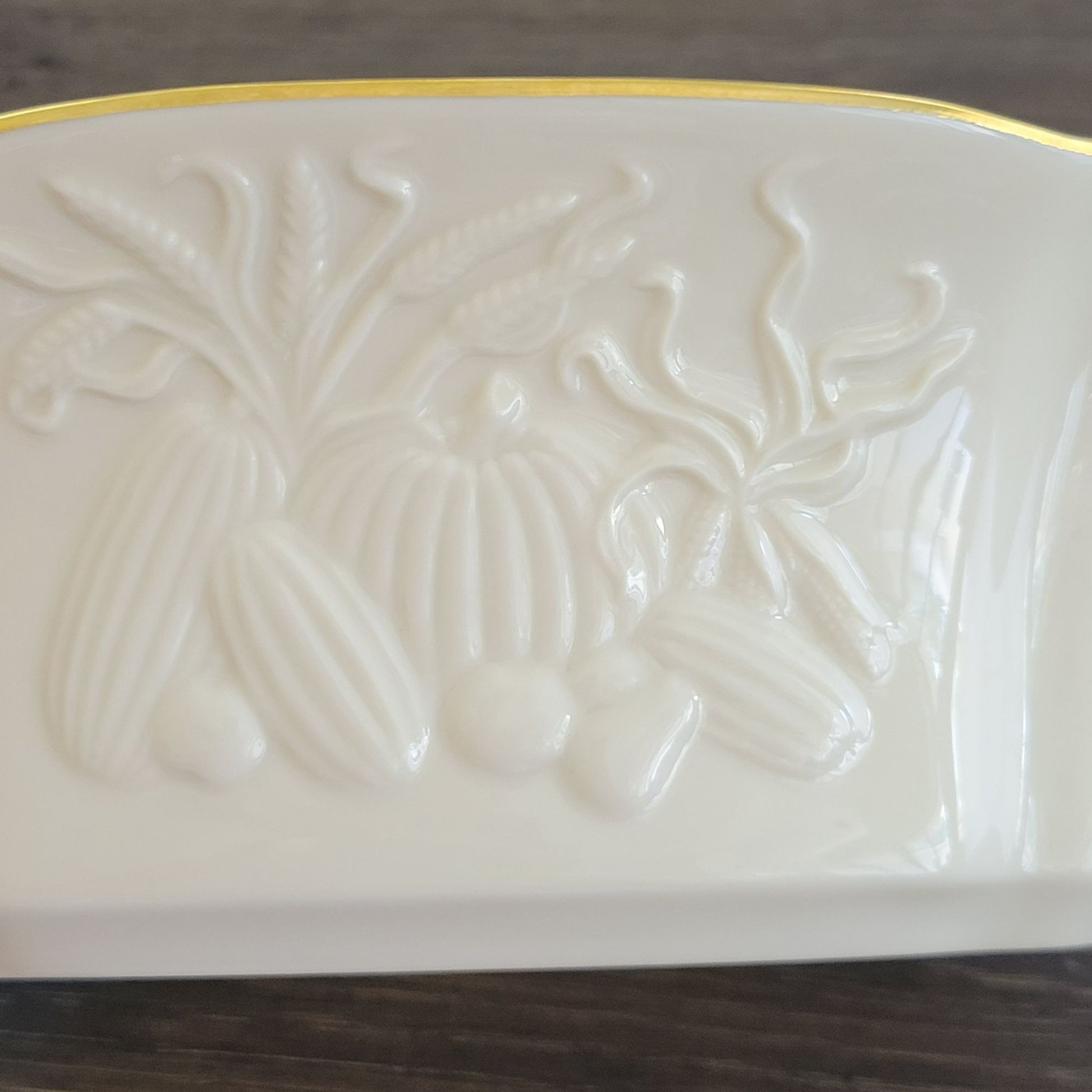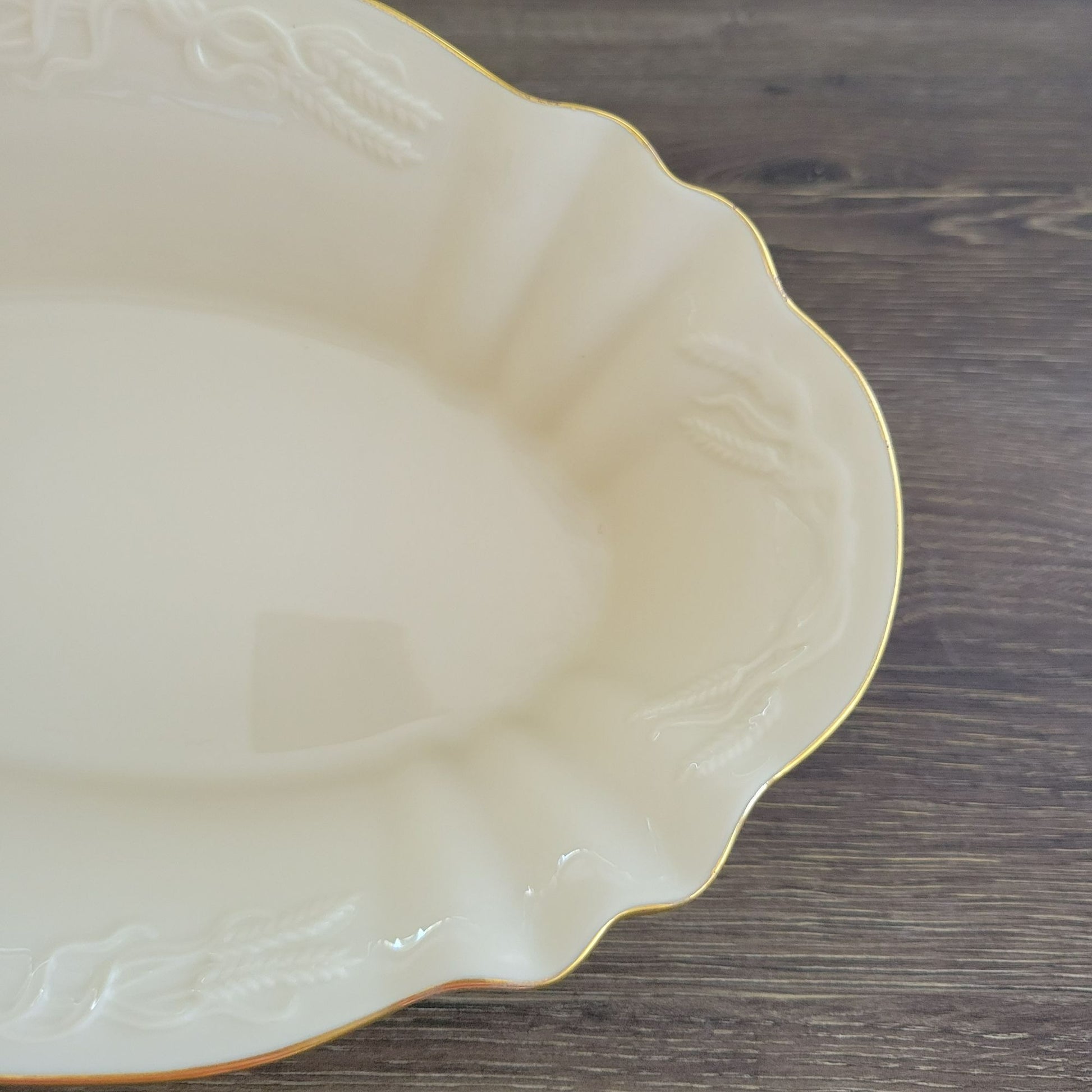 This vintage Lenox China Harvest Centerpiece Bowl embodies timeless elegance. The embossed harvest motif and gold trim highlight its refined craftsmanship.