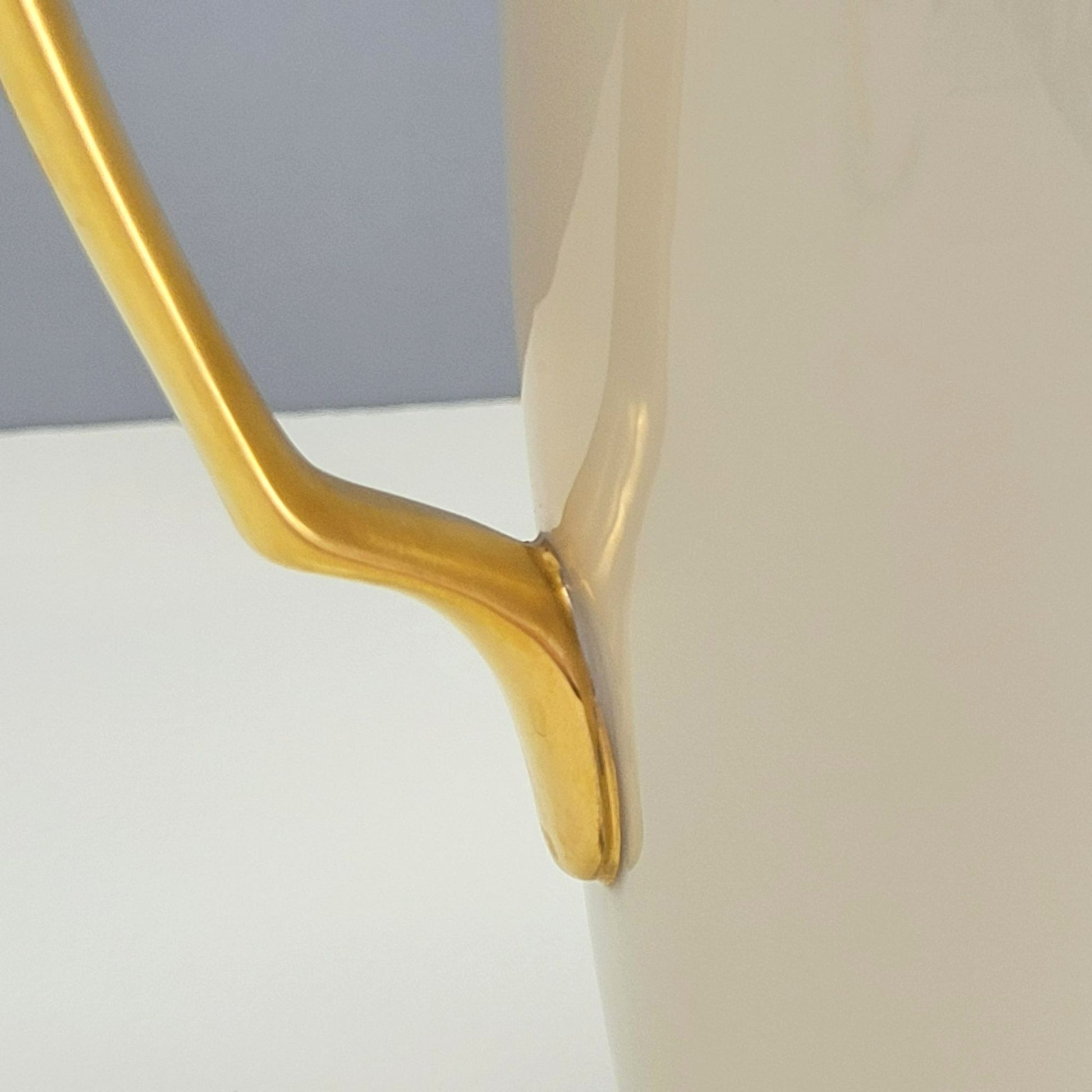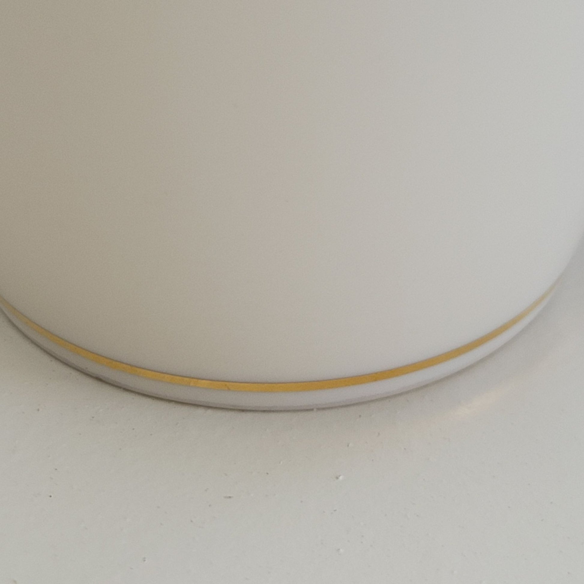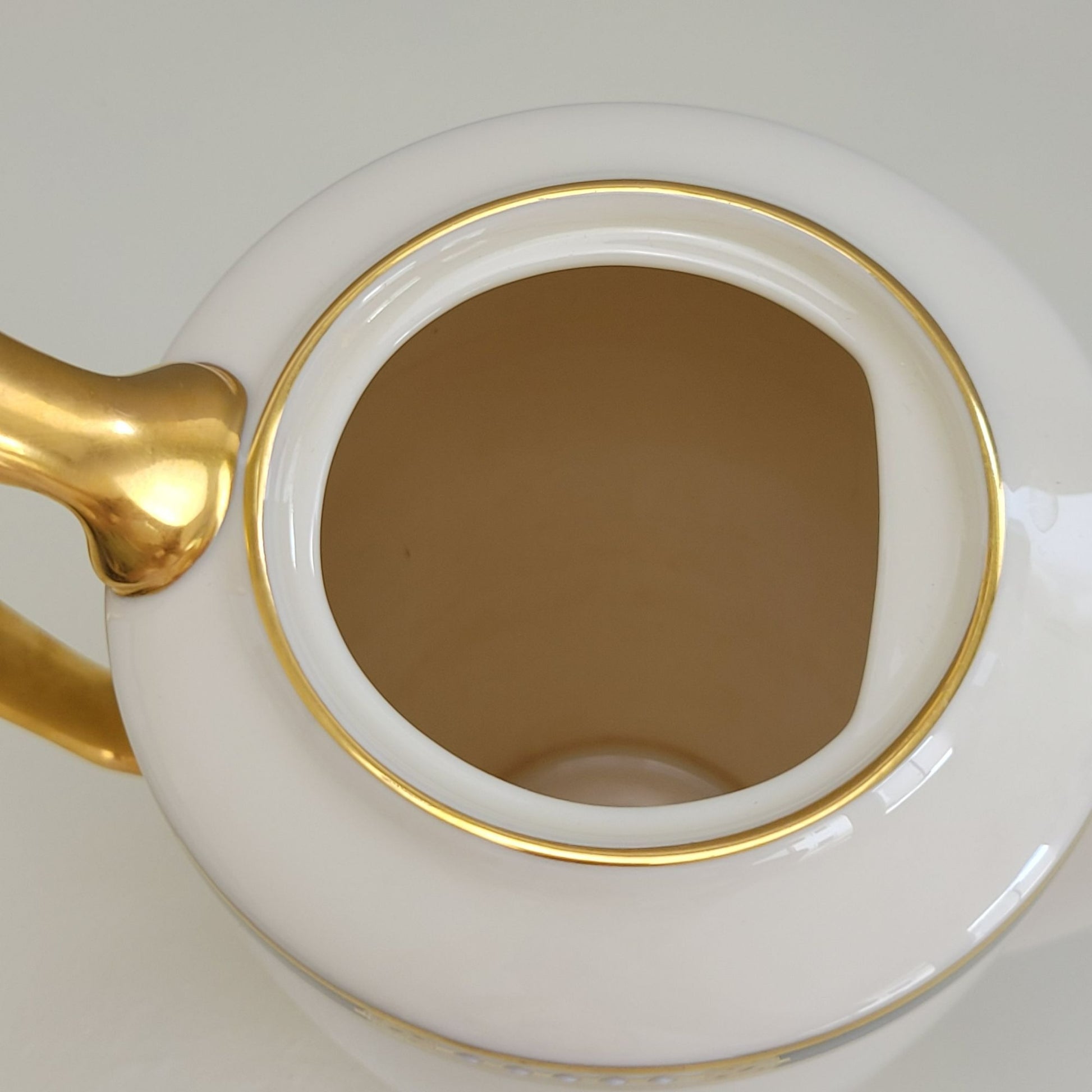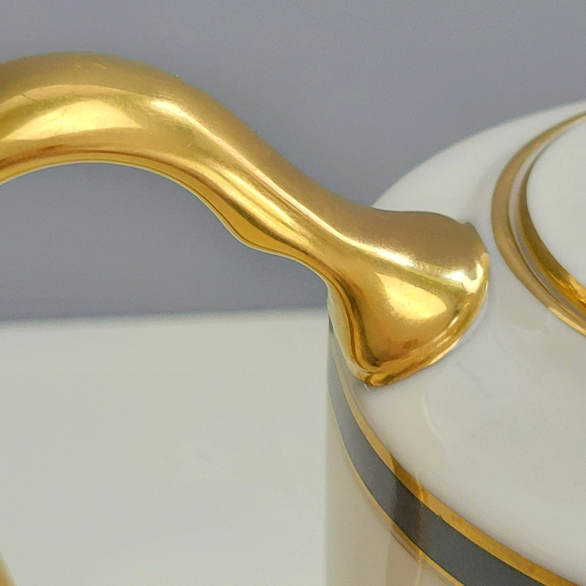 Beautifully crafted Vintage Lenox McKinley Coffee Pot from the Presidential Collection. Features an elegant ivory color with a gray band and enameled dots, highlighted by heavy gold trim. Made in the USA, this piece is a perfect addition to any collection.