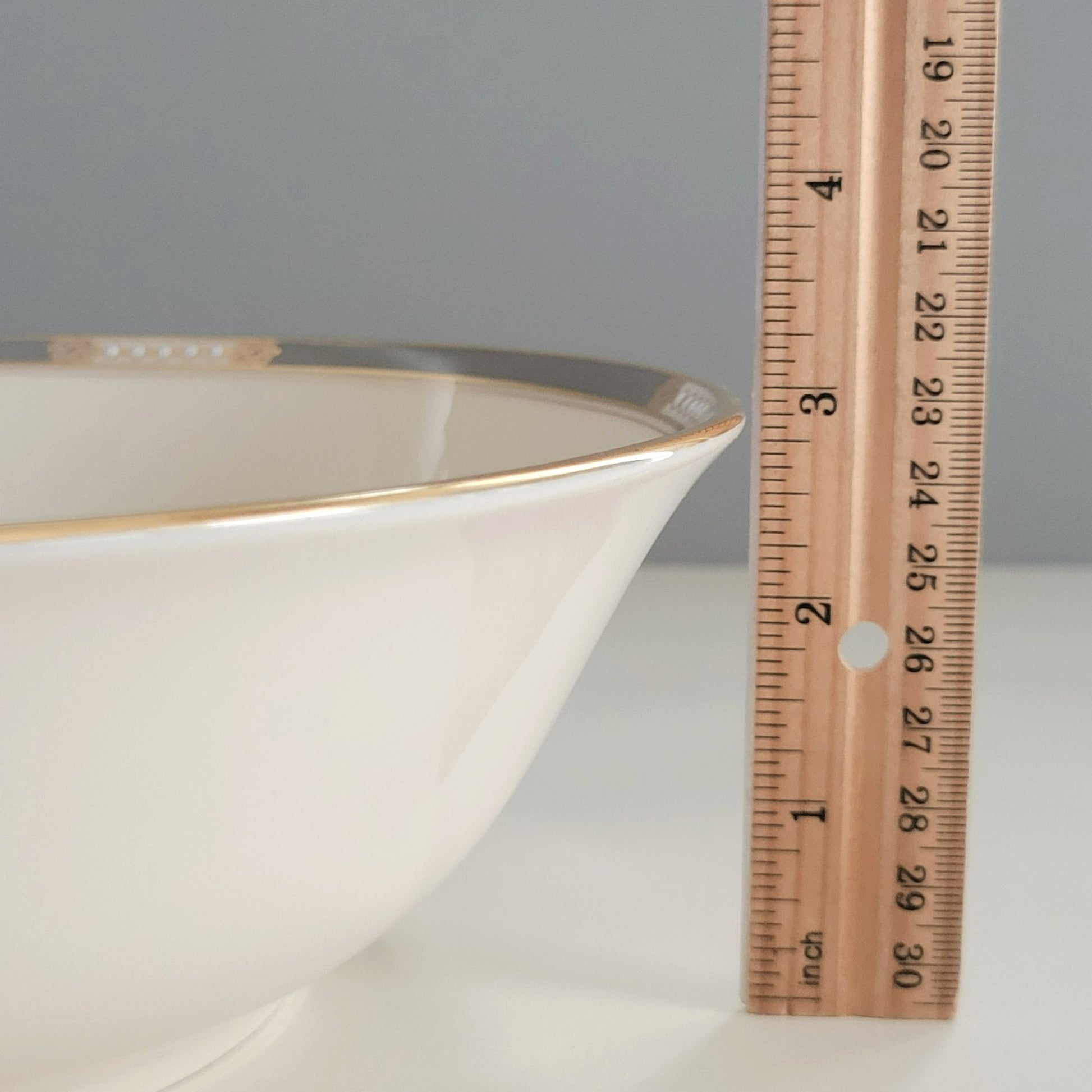 Beautifully crafted Vintage Lenox McKinley piece from the Presidential Collection. Features an elegant ivory color with a gray band and enameled dots, highlighted by gold trim. Made in the USA, this piece is a perfect addition to any collection.