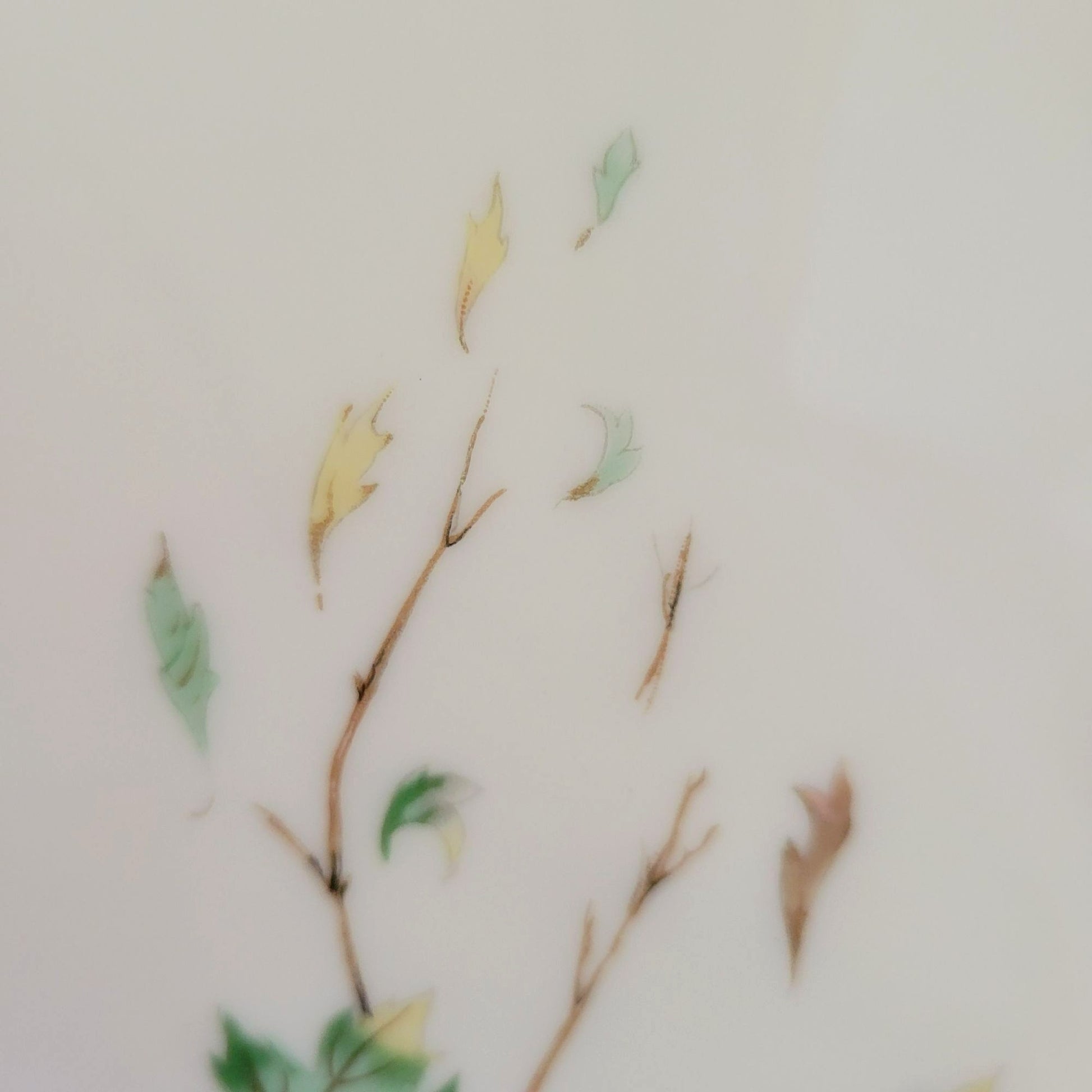 Elegant vintage Lenox Westwind plate features a smooth cream base adorned with green and yellow leaves. Made in the USA, these discontinued china pieces are perfect for collectors or as replacement items.