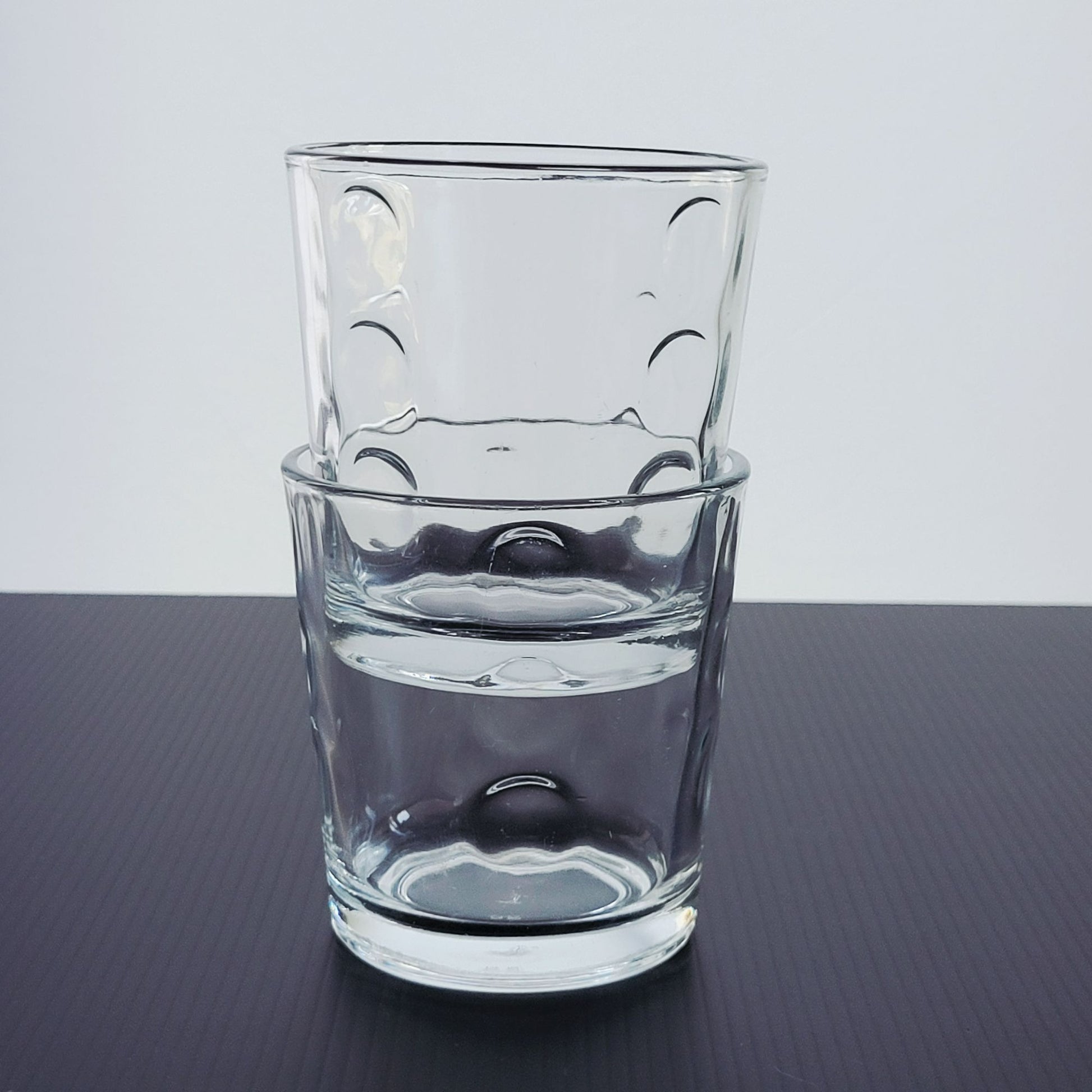 Enhance your barware collection with these vintage Libbey Glass Urban Clear Old Fashioned Glasses. The unique circle dot design and textured finish make them a standout, USA-made piece, perfect for any occasion.