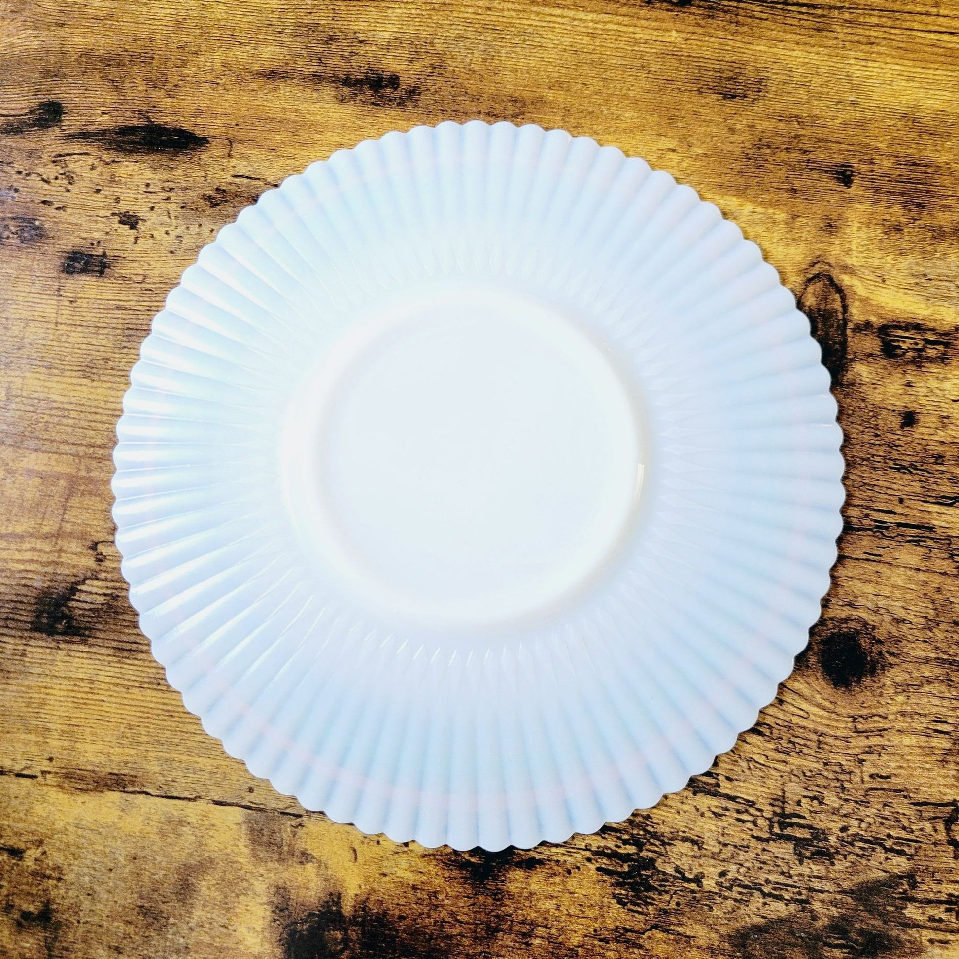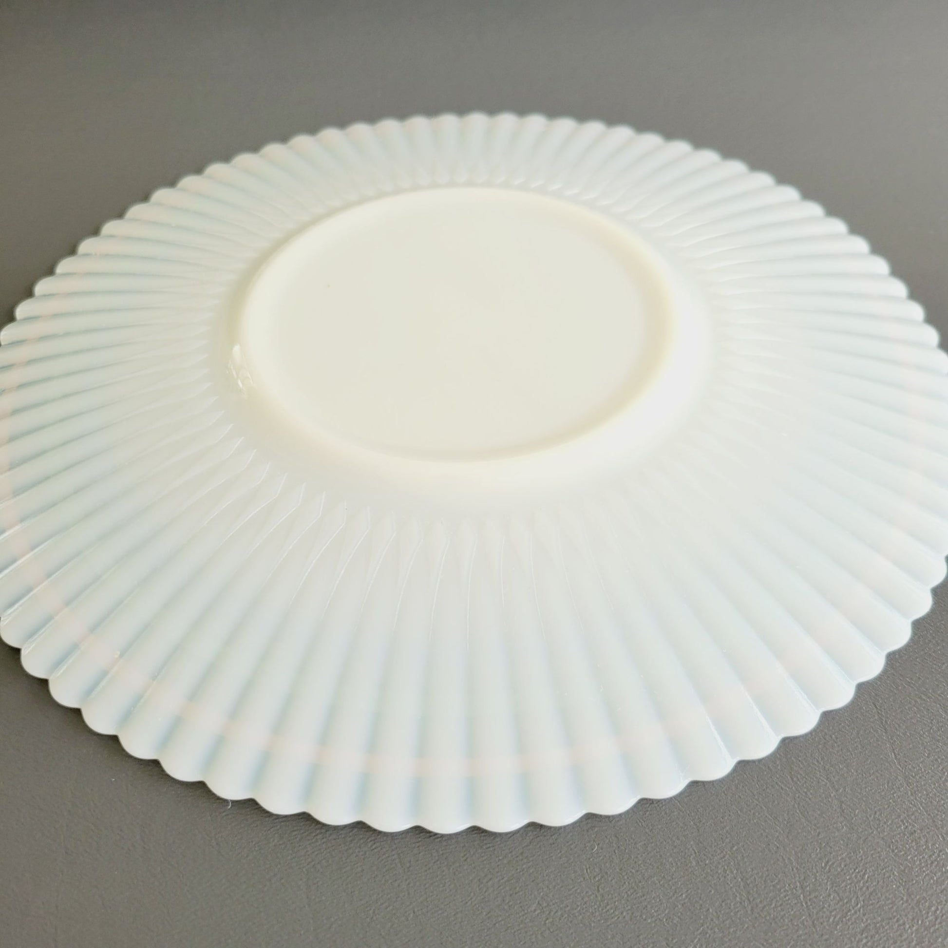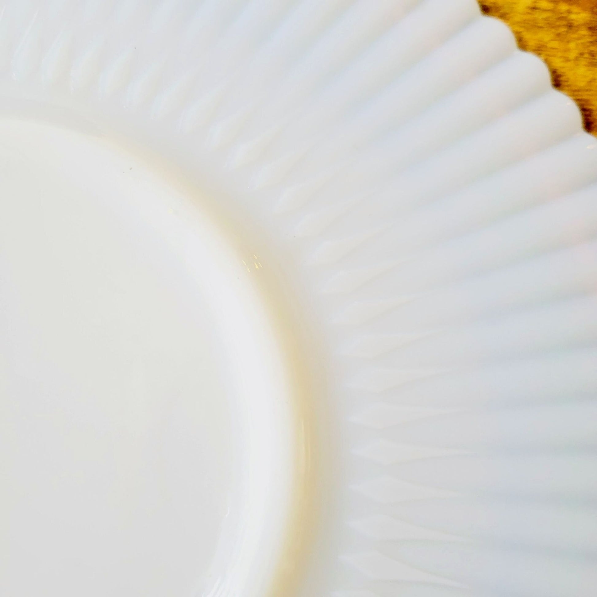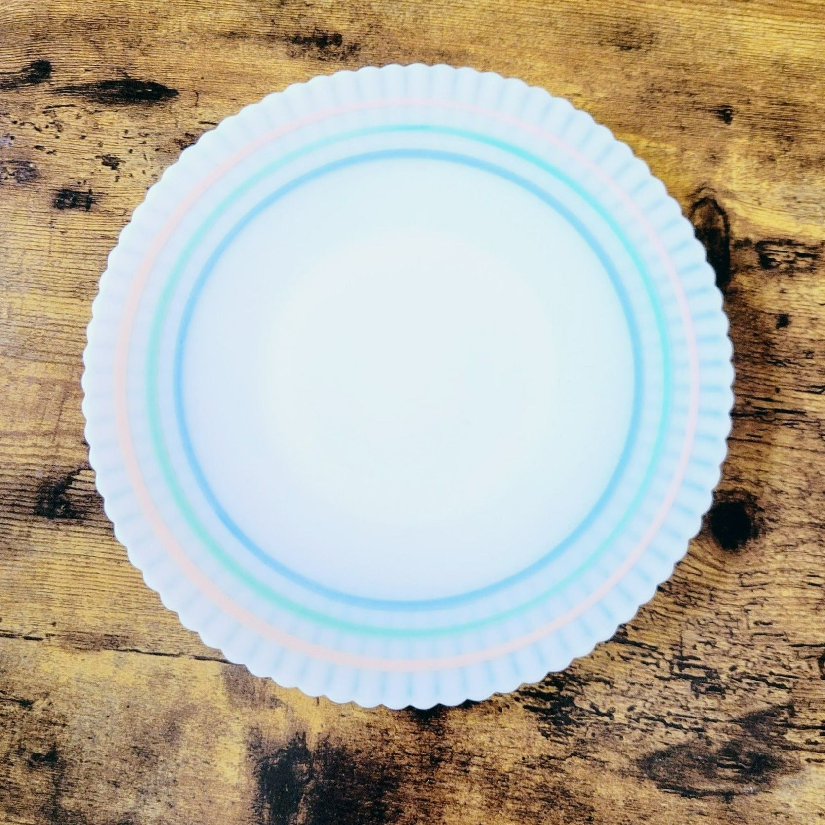 Petalware Cake Plate / Platter by MacBeth Evans is from the 1930s. The Stunning Soft White and Pastel Depression Glass Round Platter is Translucent in Sunlight.