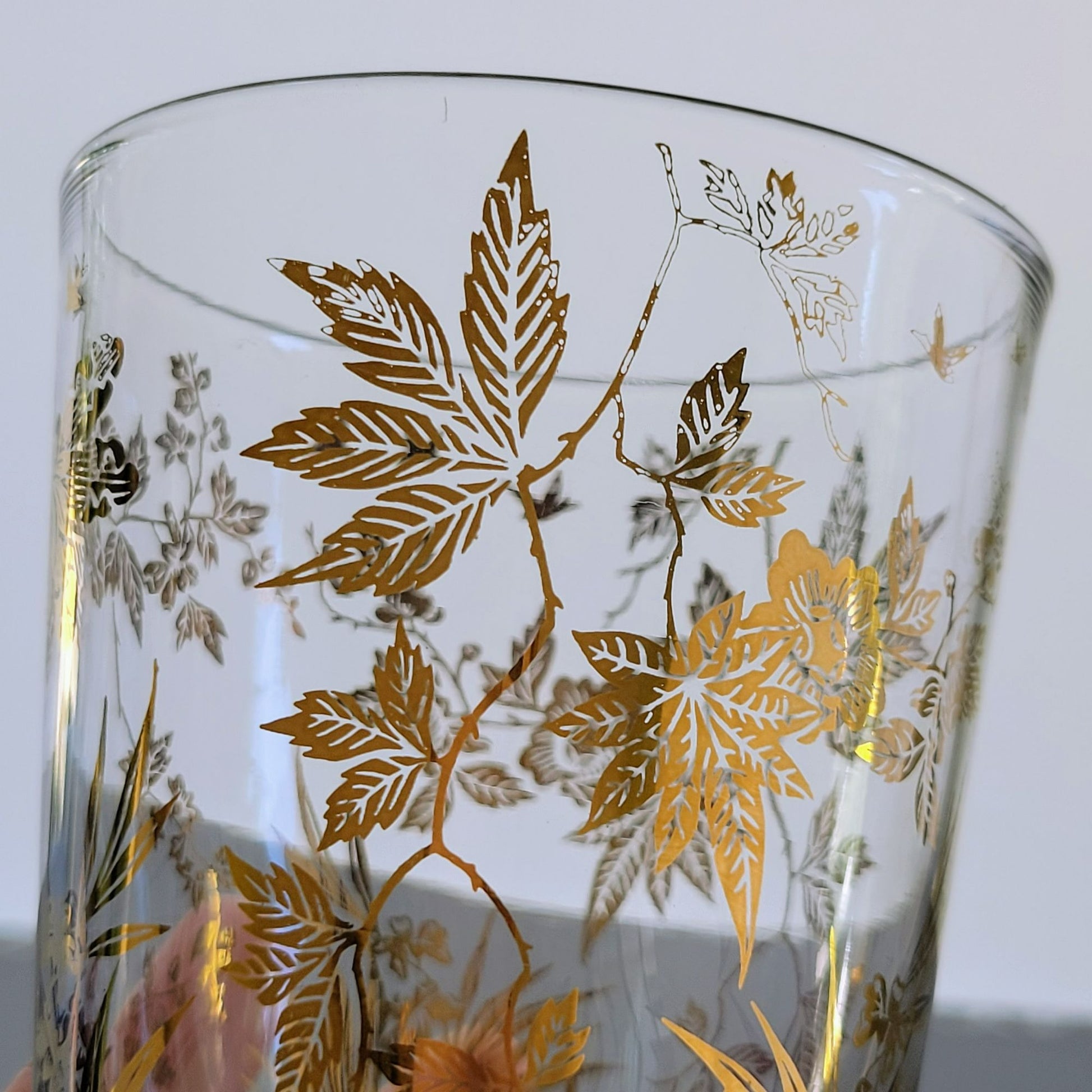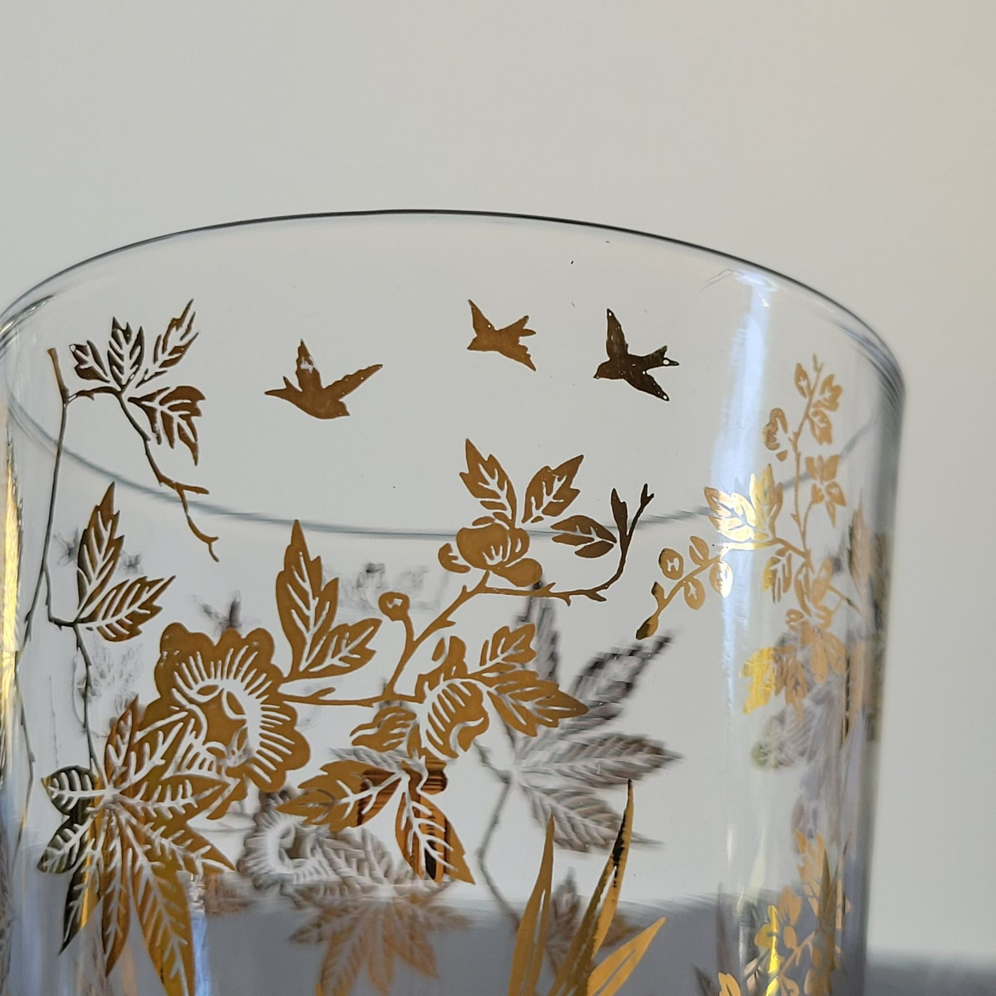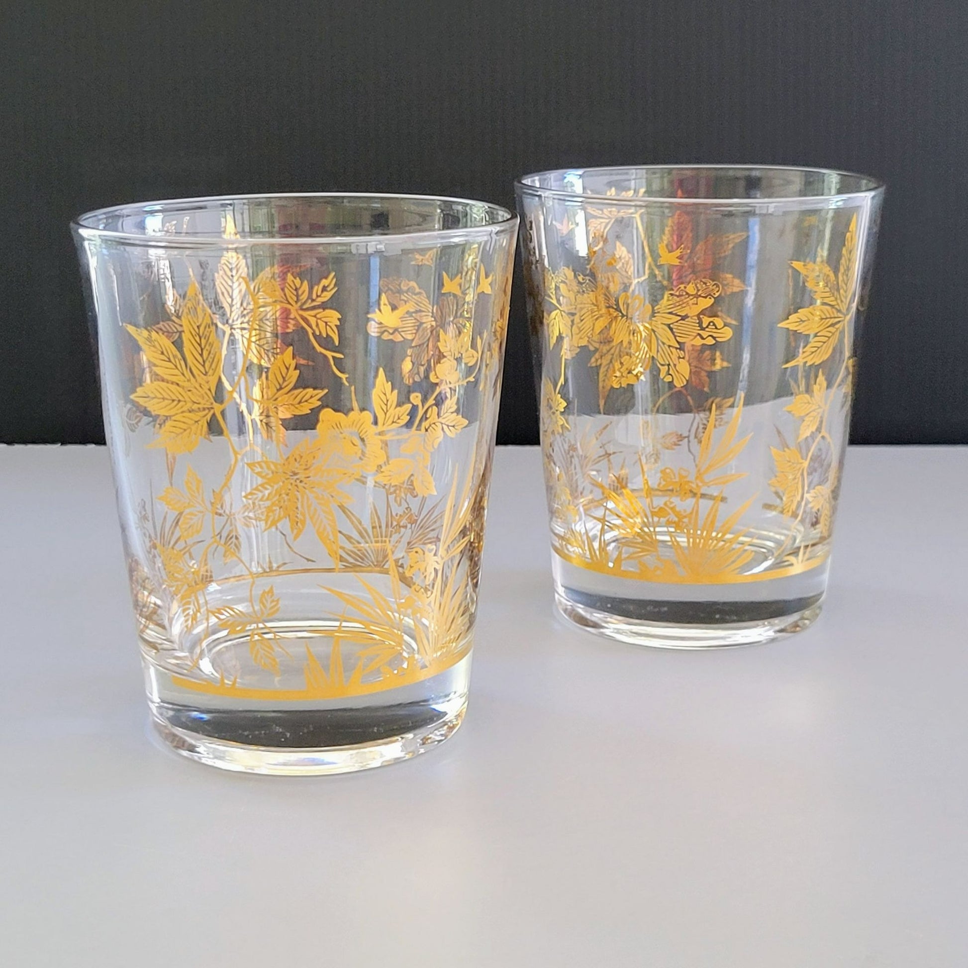 These vintage tumblers exude timeless charm with delicate gold botanical designs and intricate floral details. A beautiful addition to any decor or drinkware collection.