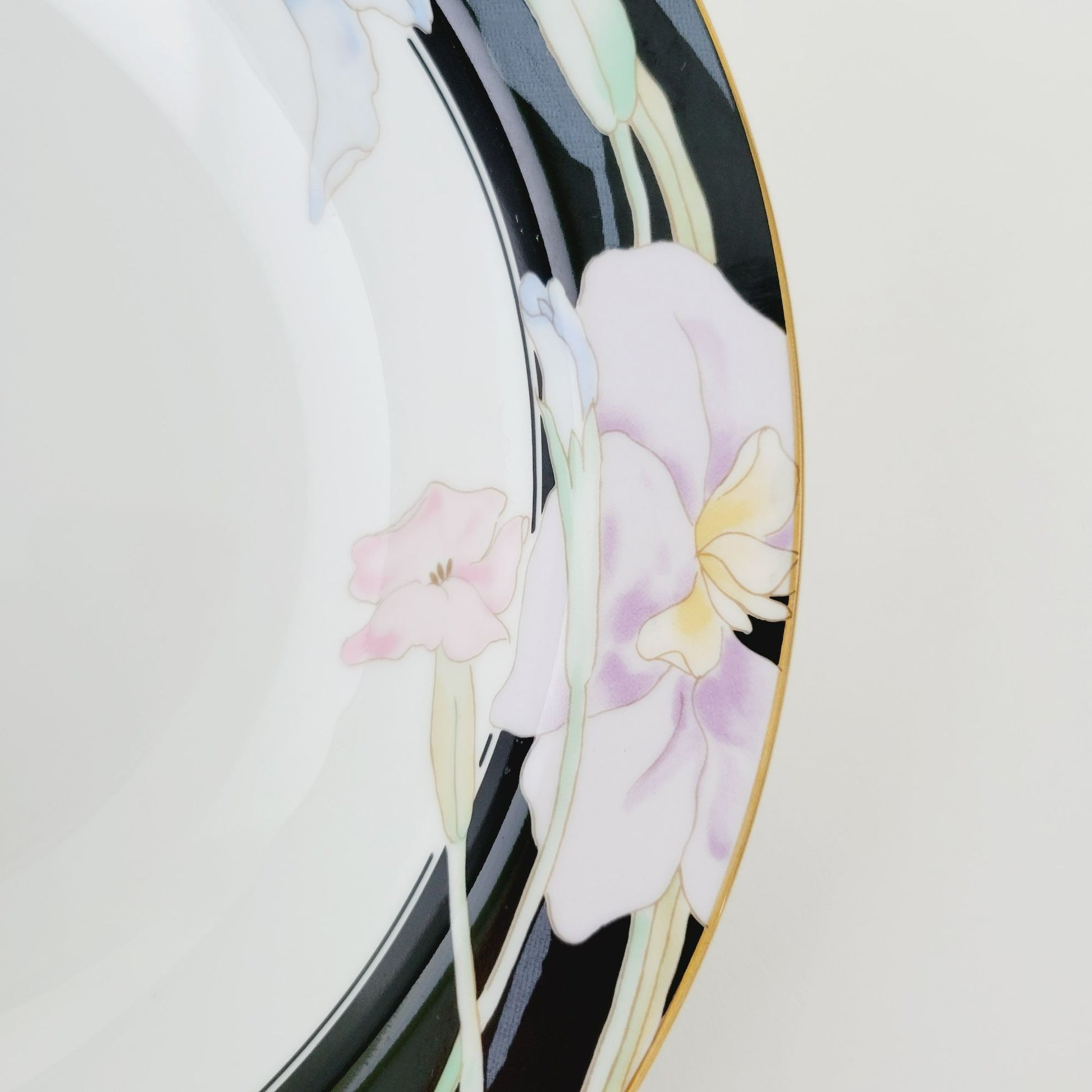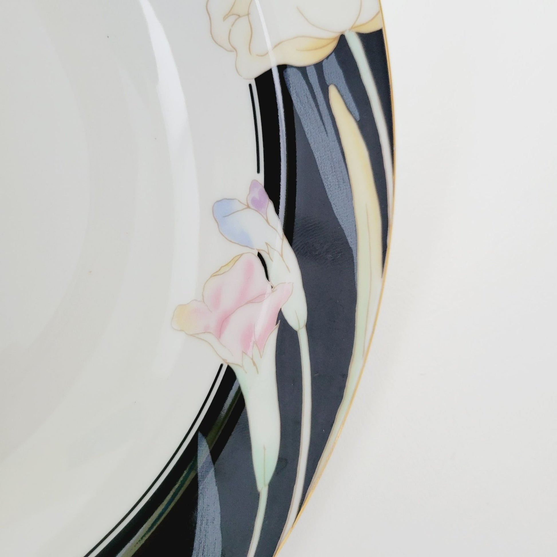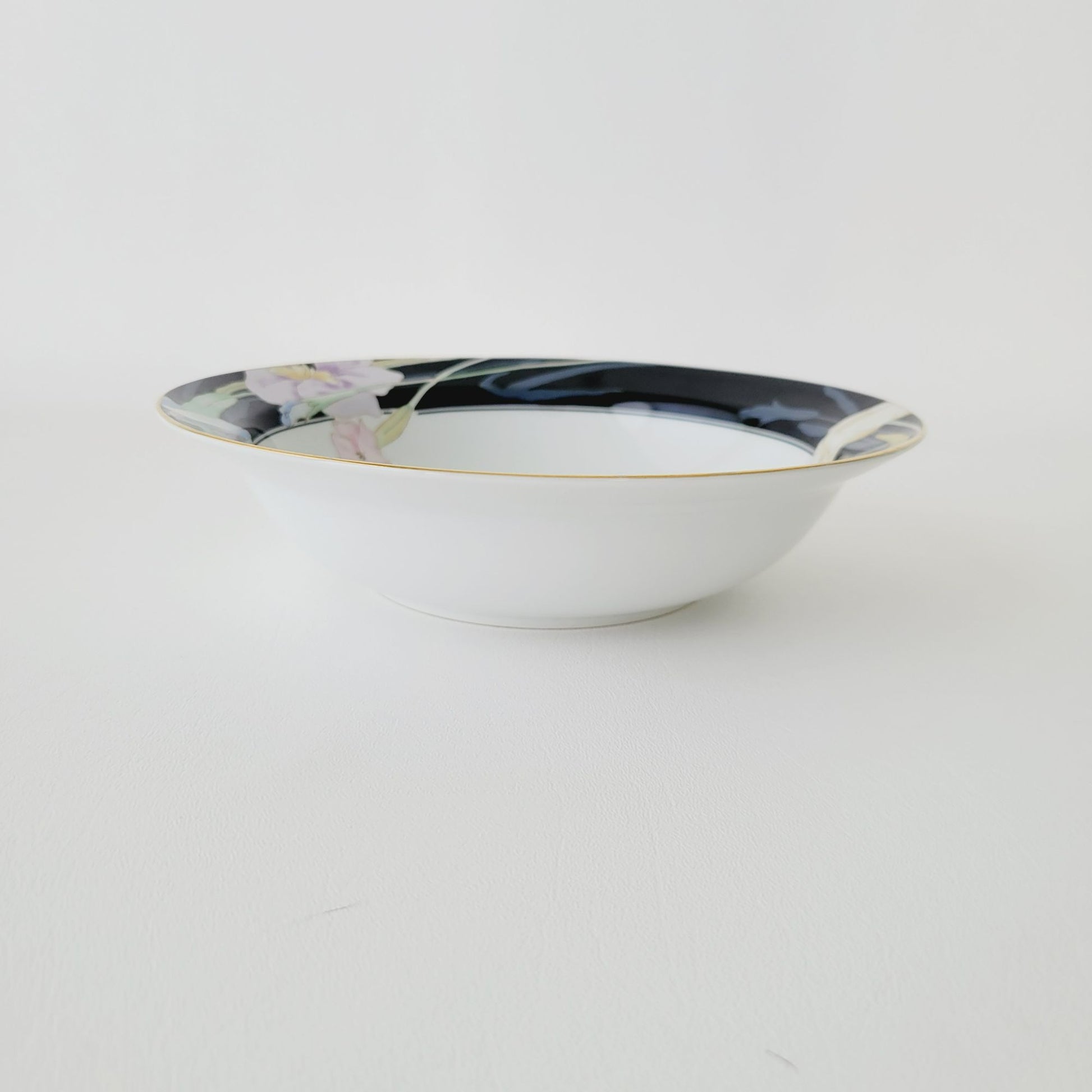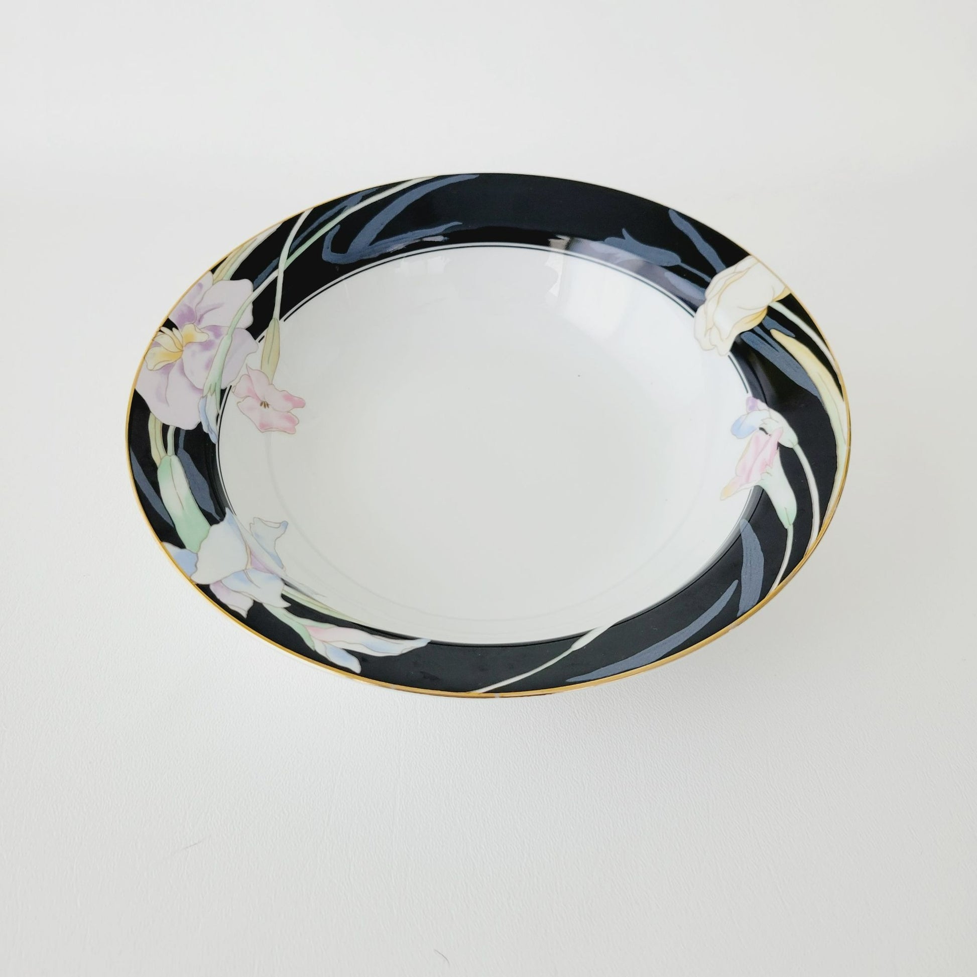 This Mikasa Charisma Black Serving Bowls is an authentic piece from the 1980s. It sports a black and white base, accented with a fun pink and blue floral design, offering a retro vibe to your tableware.