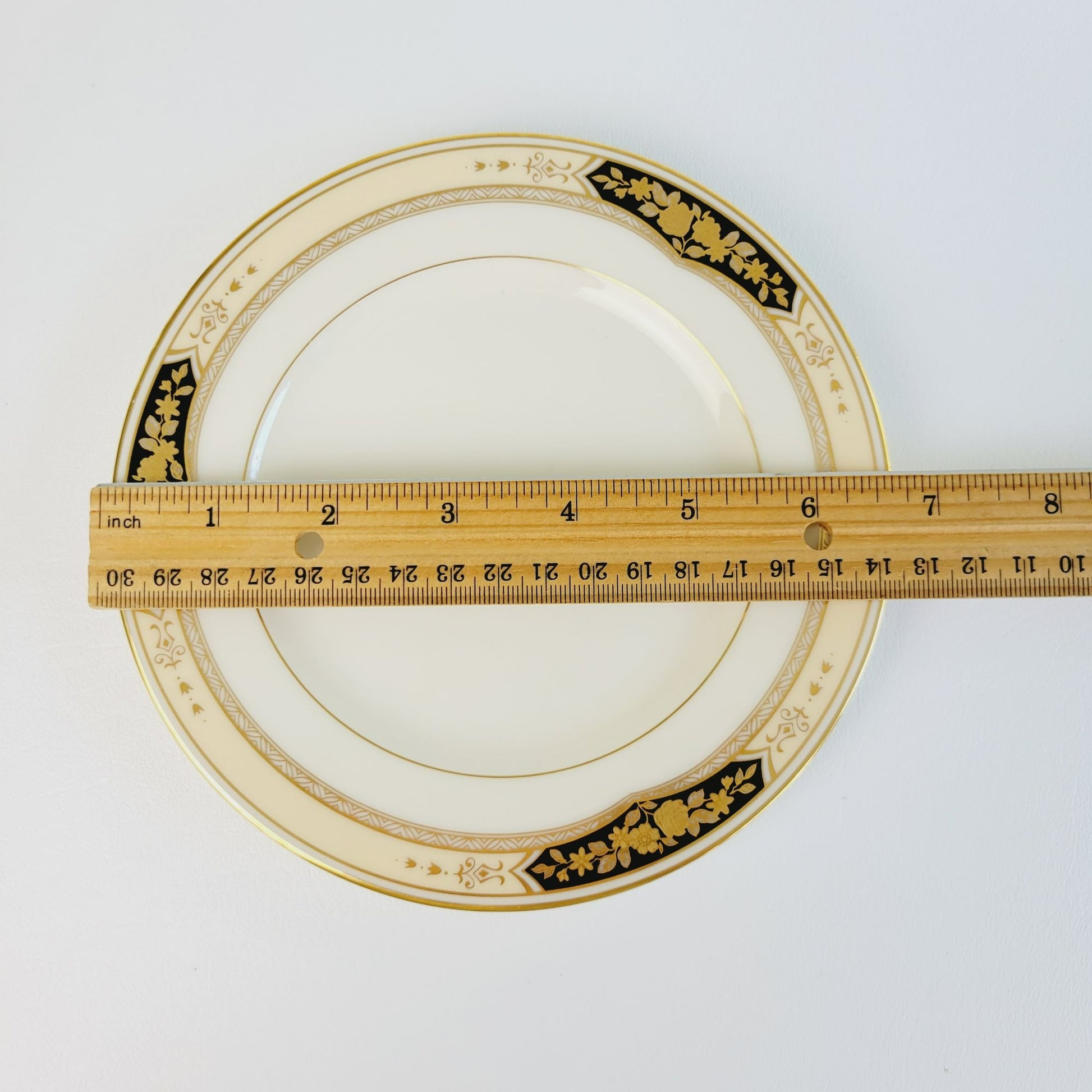 This exquisite Mikasa Fine Ivory bread plates from the Crown Hall collection features an elegant gold floral trim. A beautiful addition to any vintage dishware collection.
