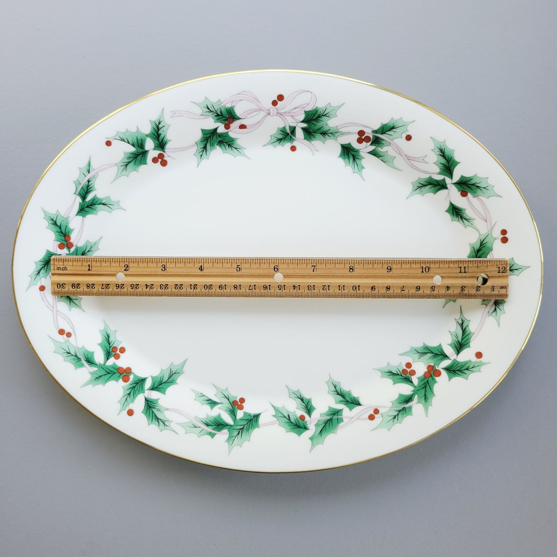 Mikasa Ribbon Holly 14" Oval Serving Platter, Made in Japan
