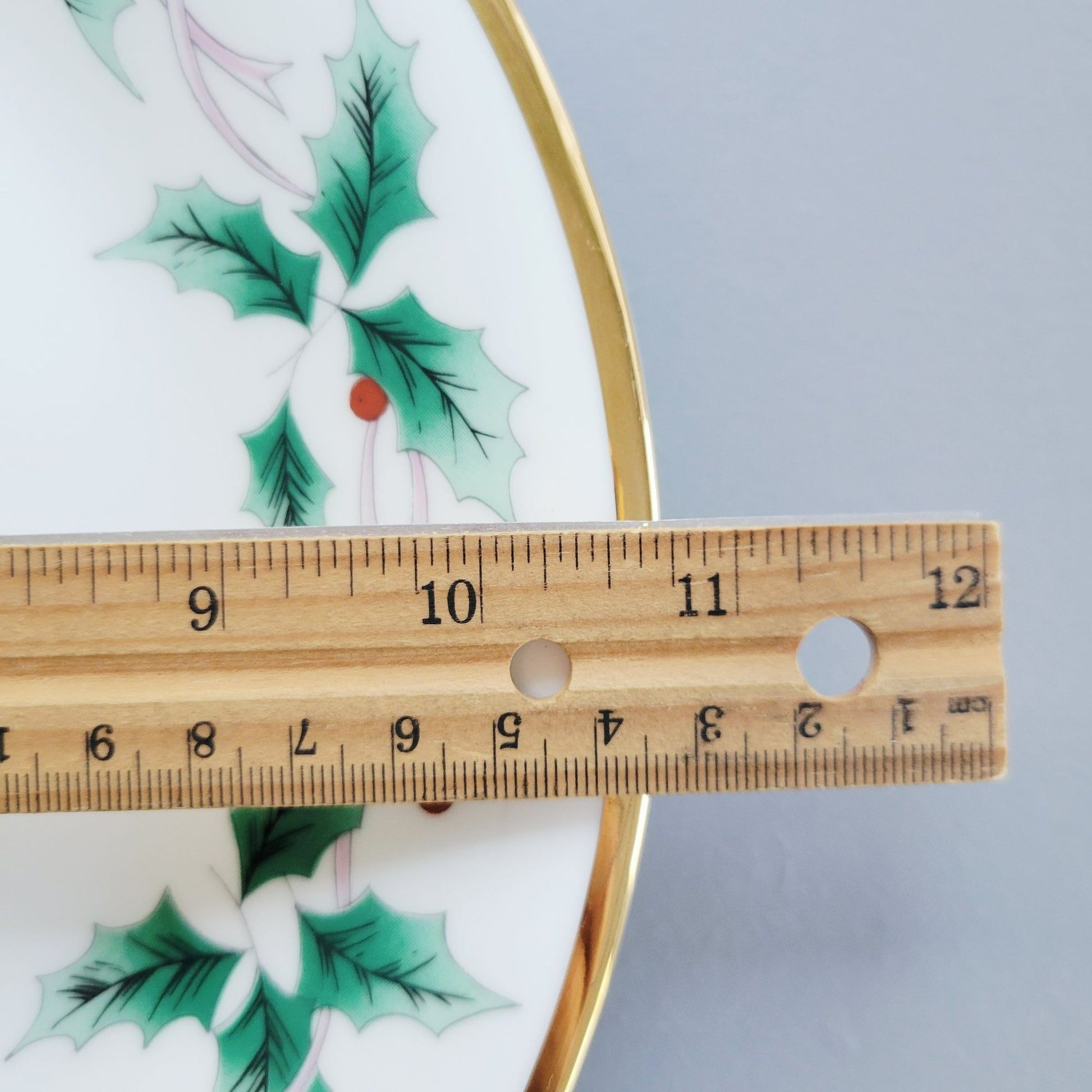 This exquisite Vintage Mikasa Ribbon Holly Dinner Plate features a charming holly and berry design with elegant gold trim, crafted in Japan. Perfect for holiday gatherings and collectors alike.