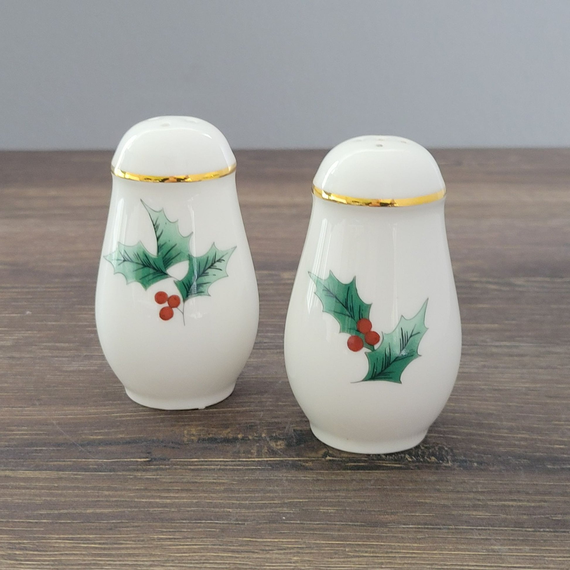 Mikasa Ribbon Holly Salt & Pepper Shaker Set, Japan Made