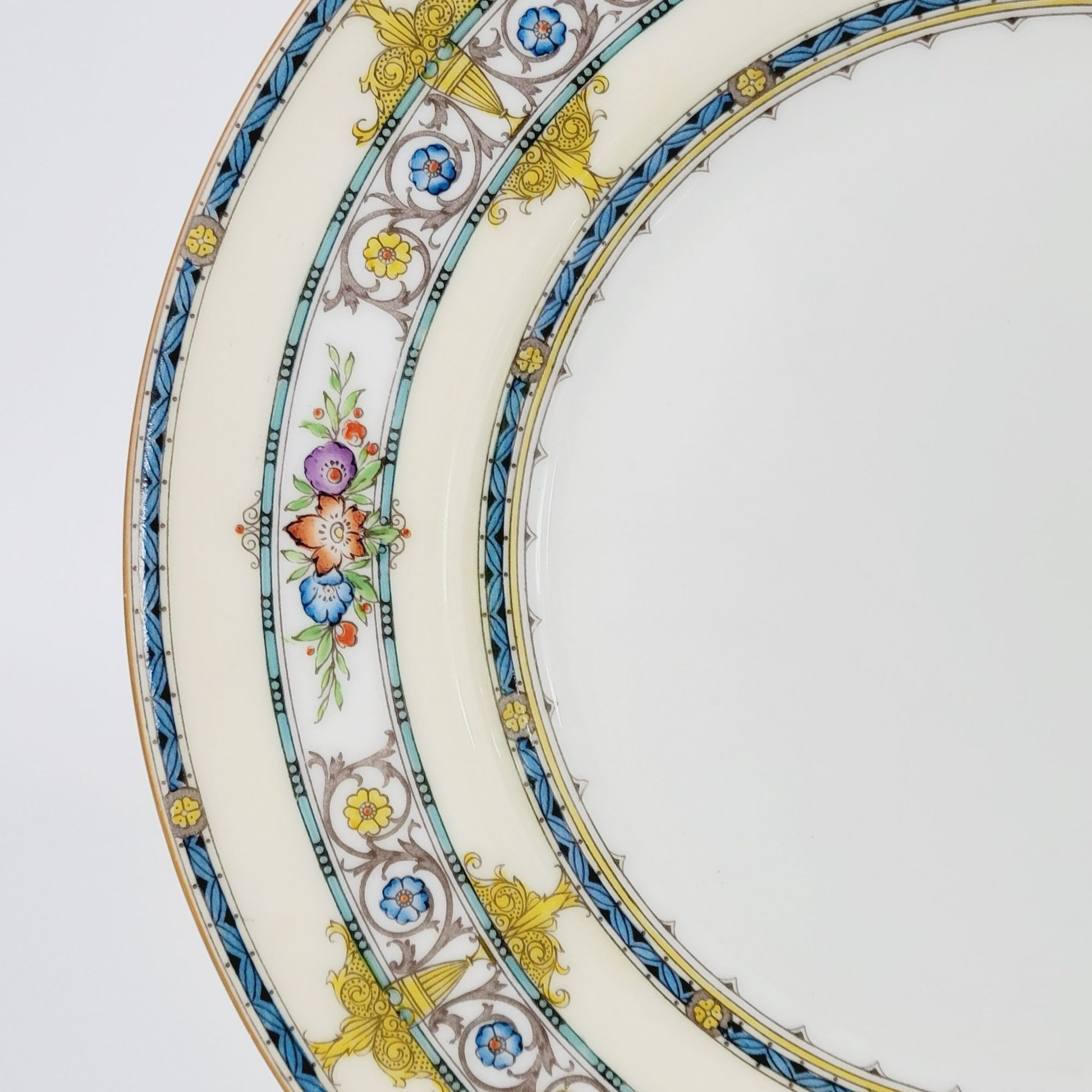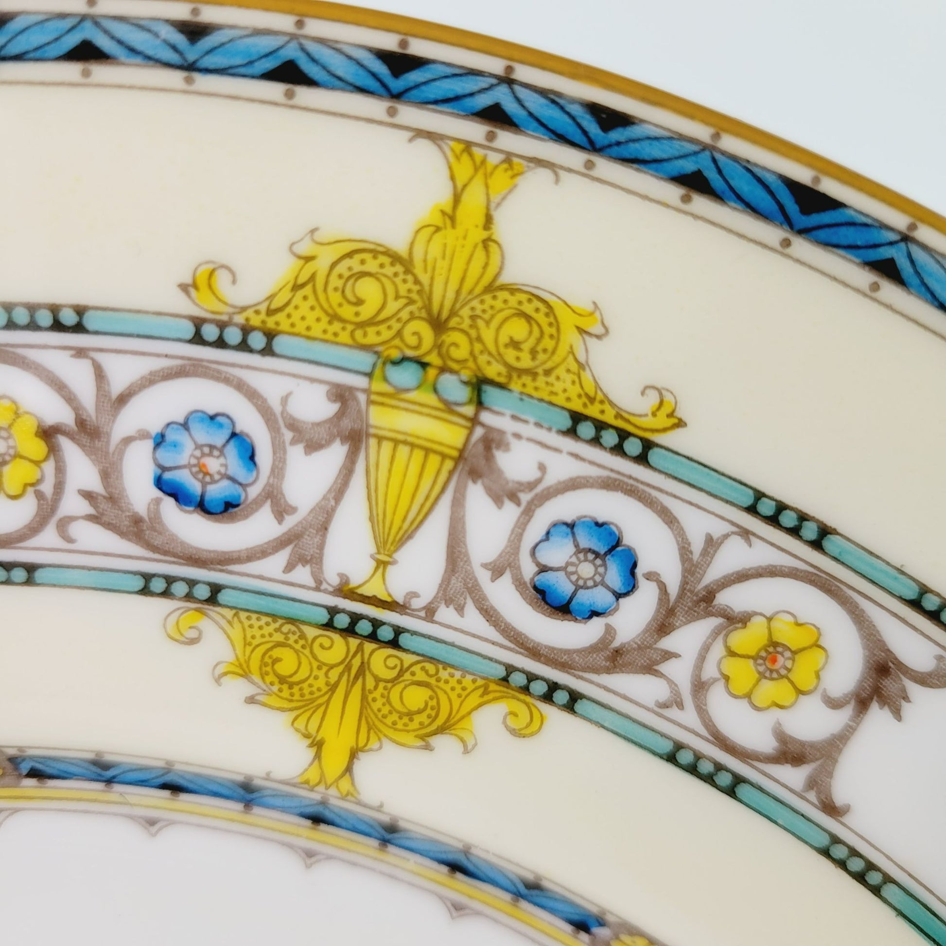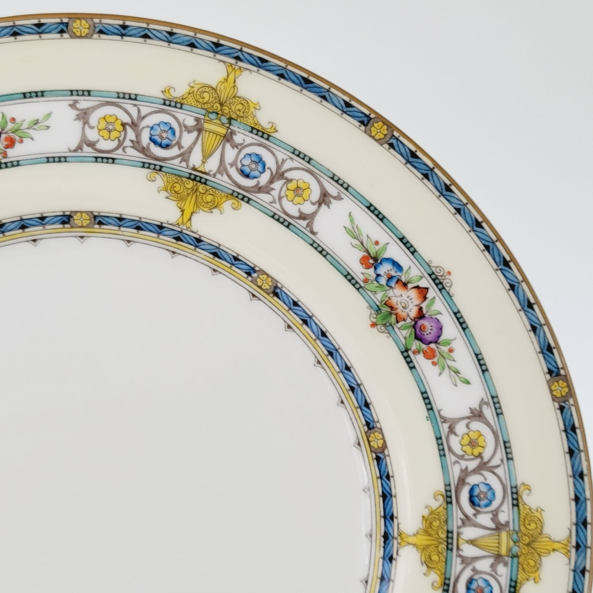 • Design: Aqua Band, Yellow Urns & Scrolls, Multicolored Flowers