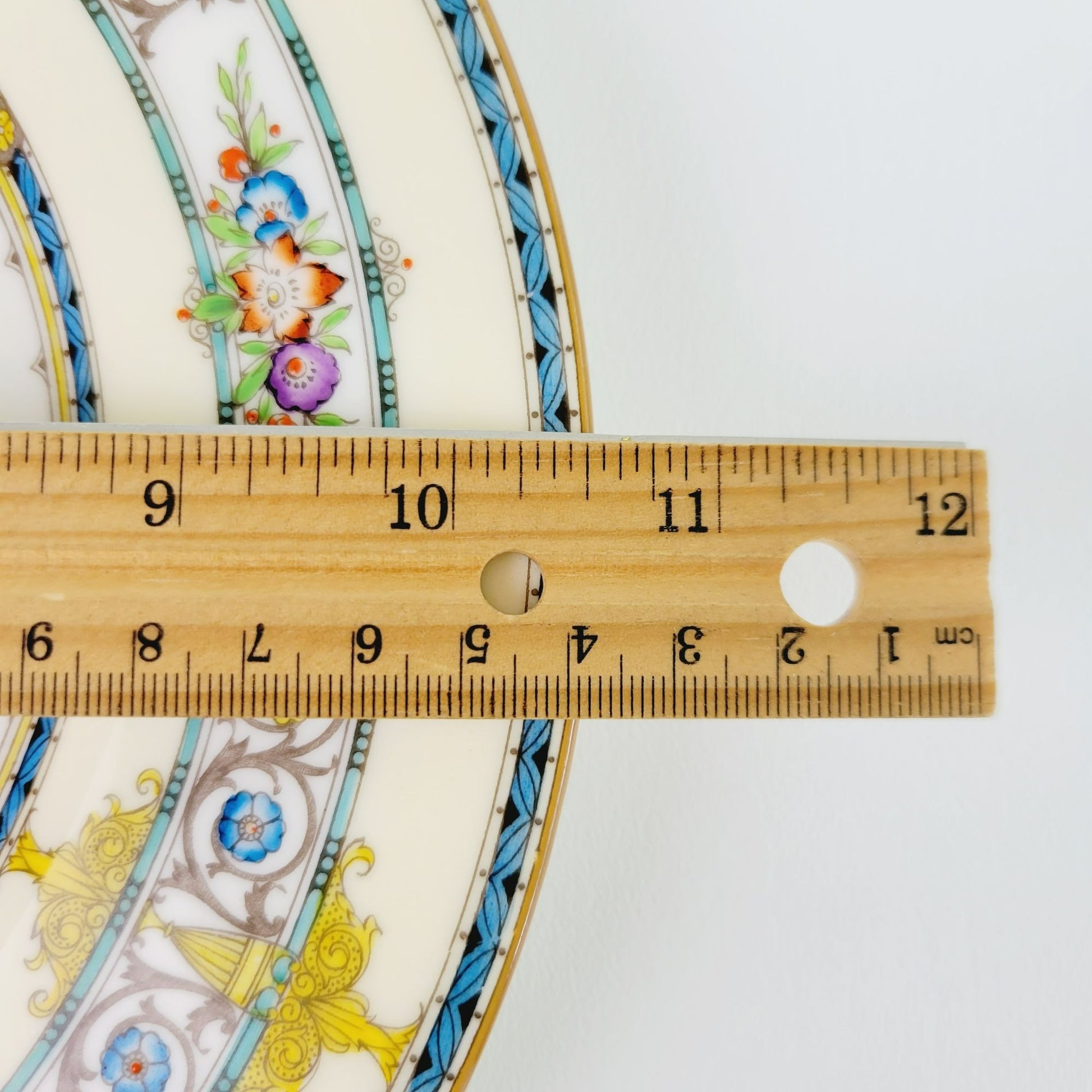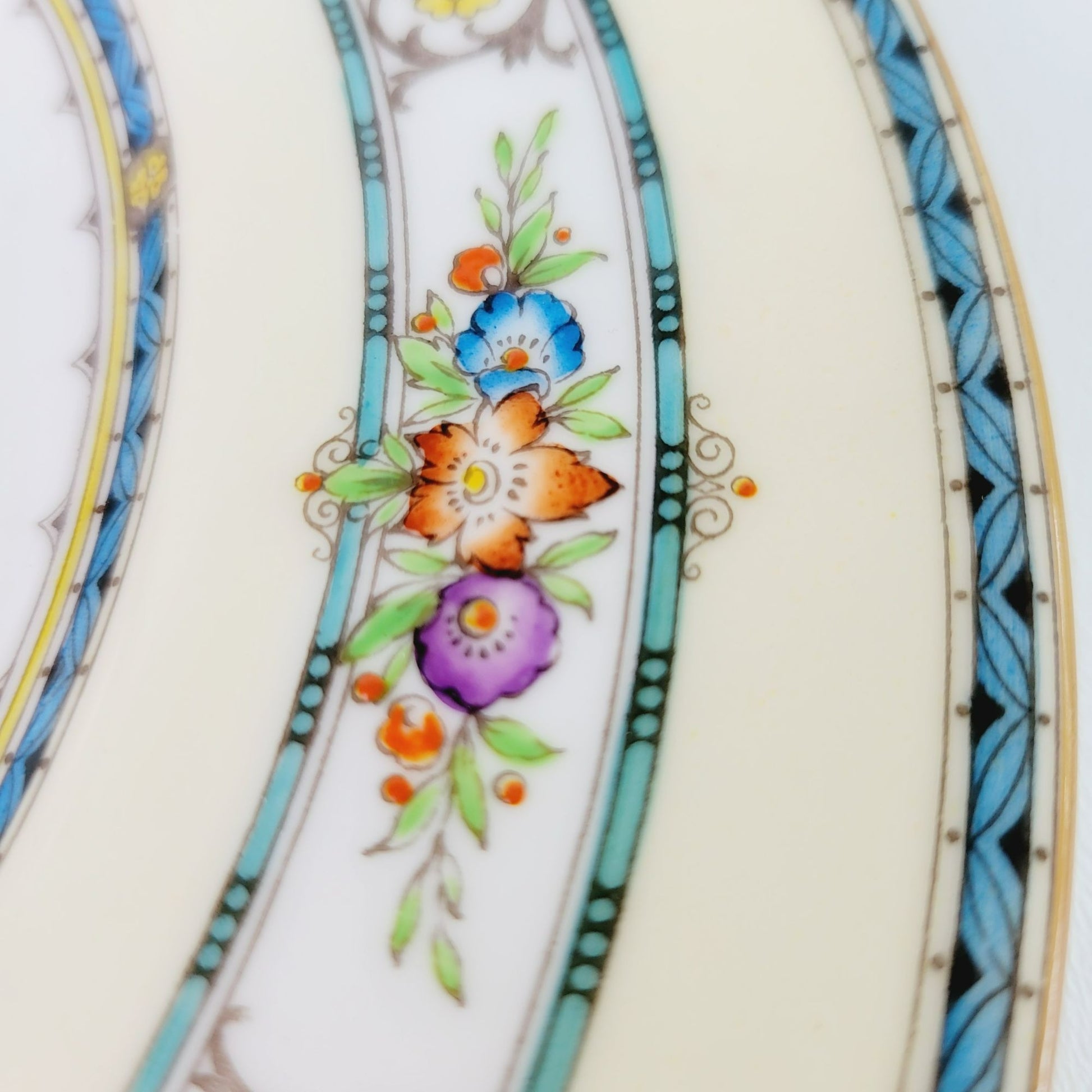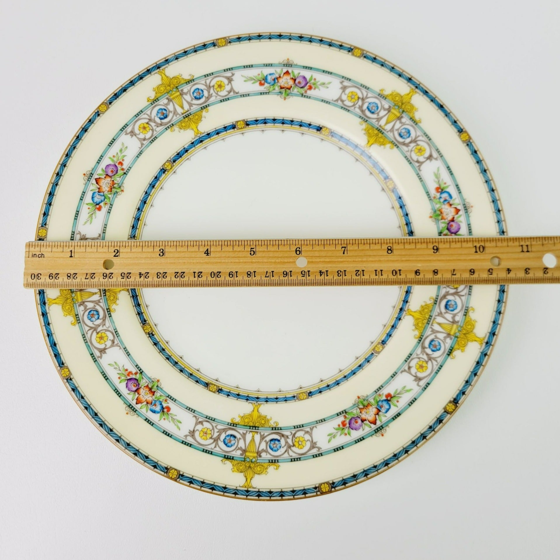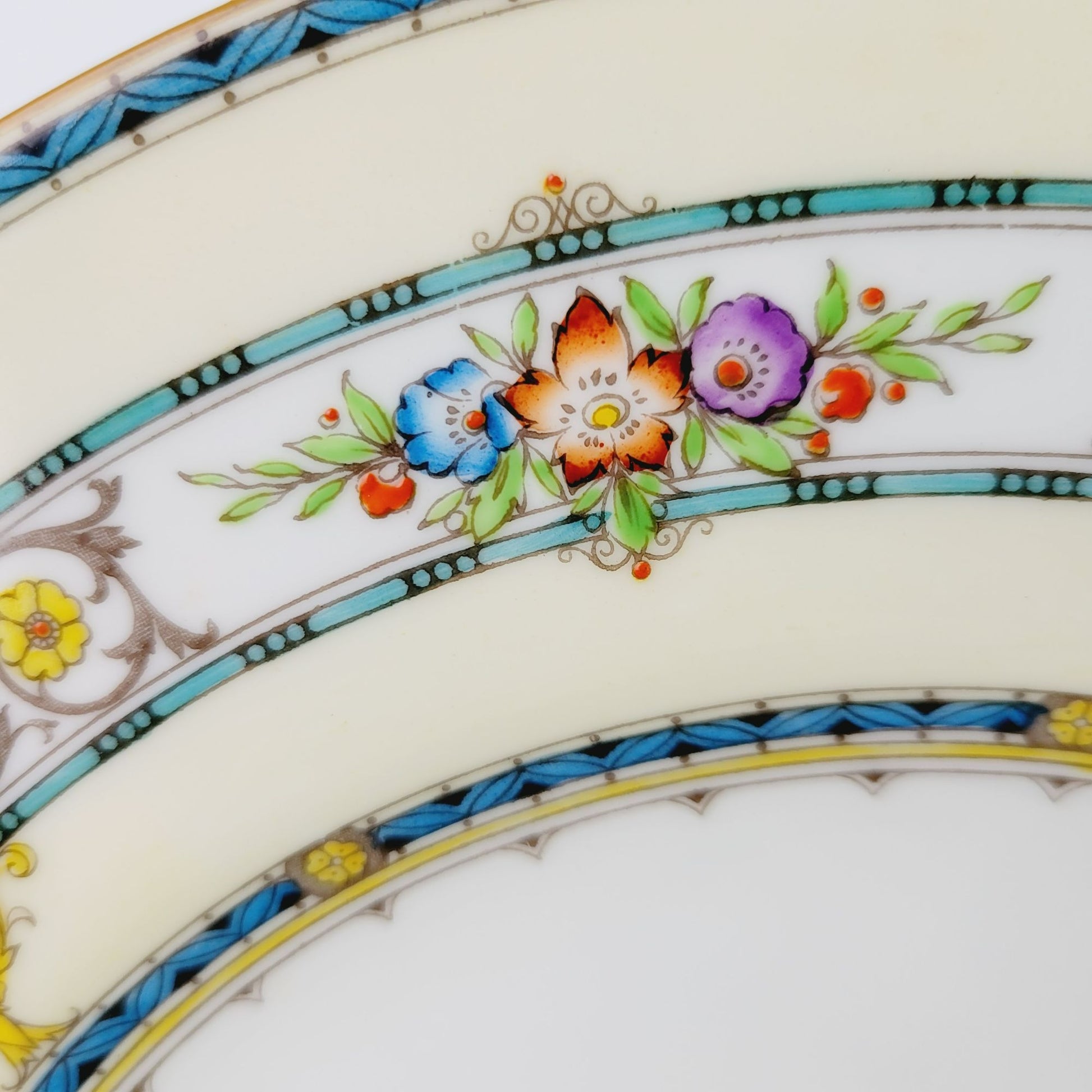 • Design: Aqua Band, Yellow Urns & Scrolls, Multicolored Flowers